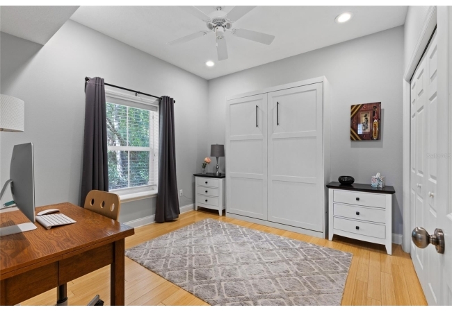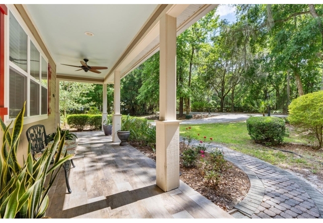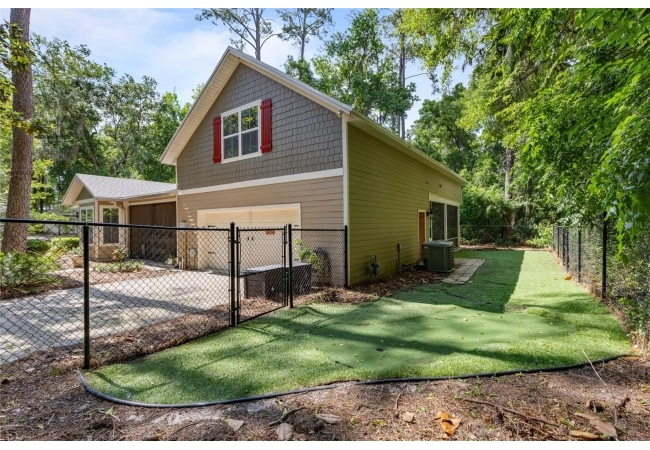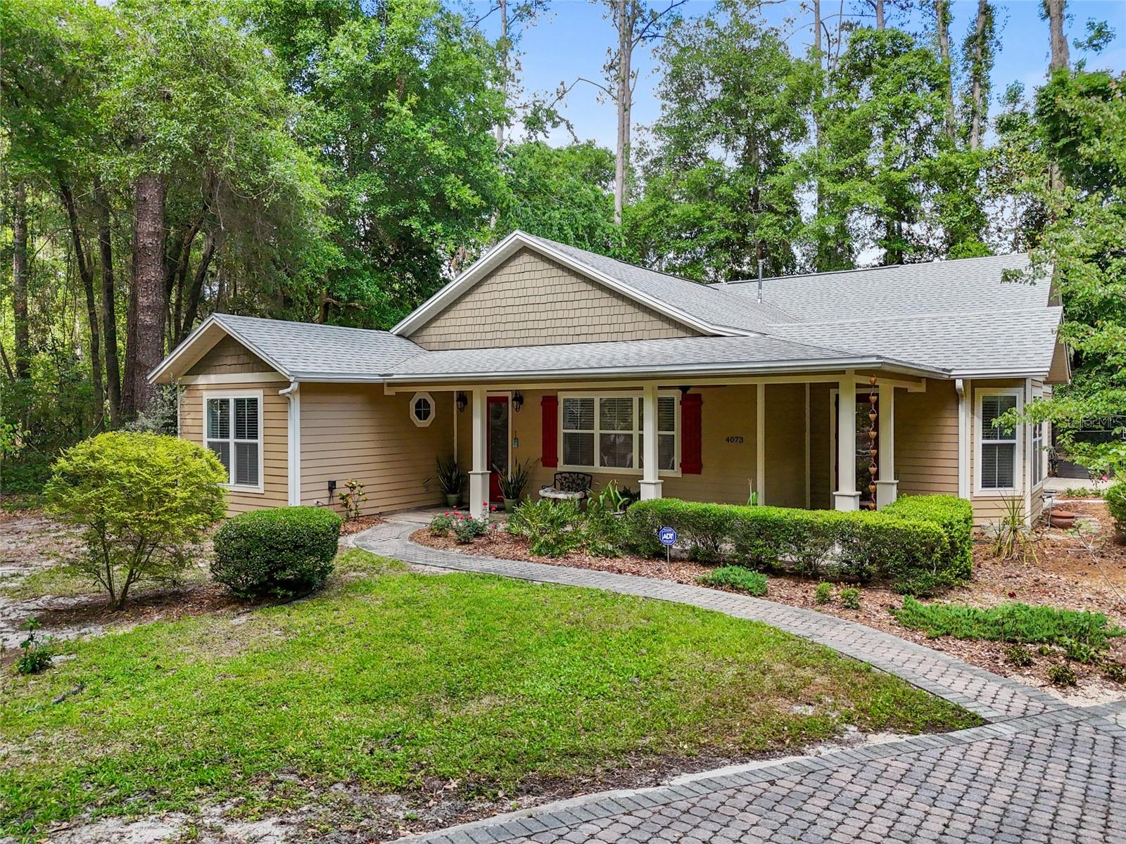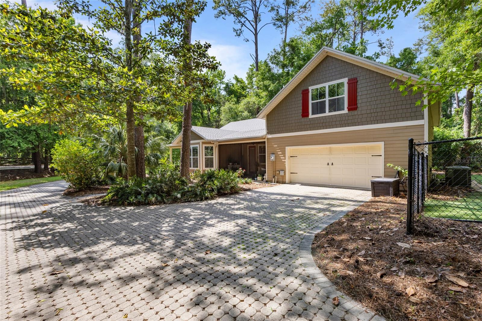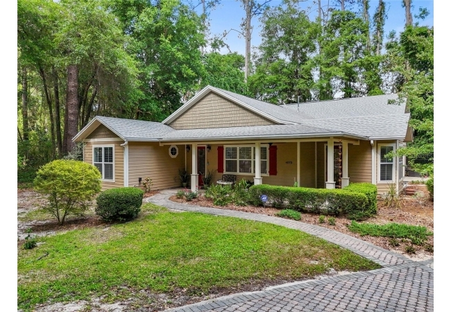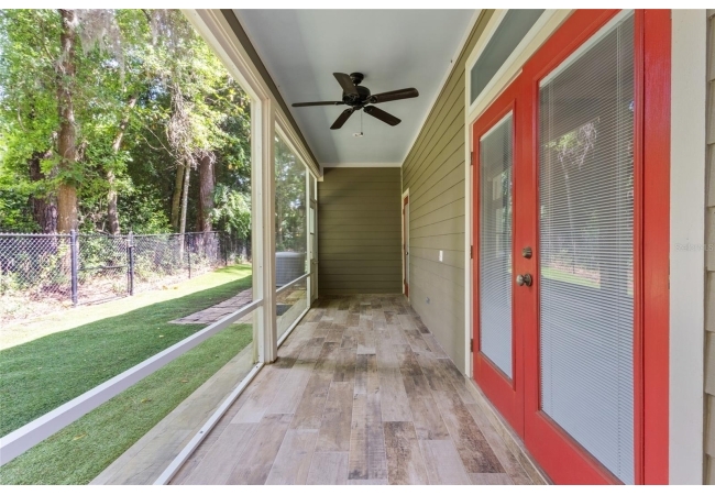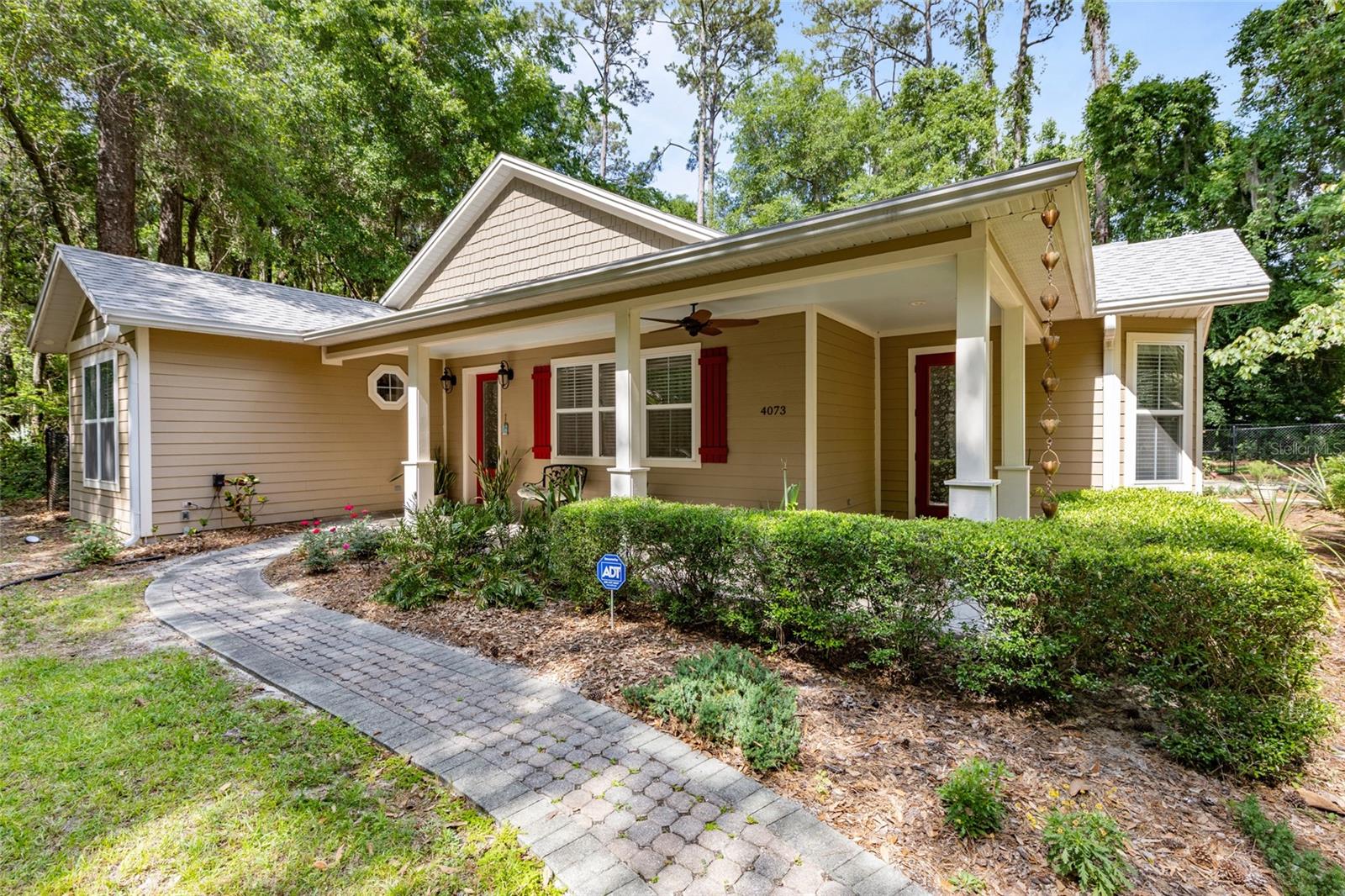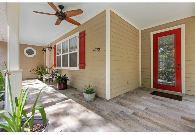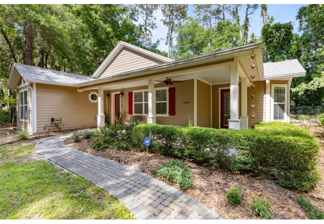 Huge price reduction! Tesla car charger included!! Come see this gorgeously designed Green-Certified home in the sought-after Madera community—just 2 miles to UF, Shands, and the VA! Built to Florida Green Coalition Building Standards with a cistern under the side yard for added flood protection. This spacious 4BR/3BA home features an open great room with sound system, French doors, Corian countertops, breakfast bar, and pull-out shelving. Primary suite offers 2 walk-in closets, screened porch access, and a luxury bath with soaking tub and separate shower. Upstairs includes a large bedroom with full bath and a flex room—ideal as an office or craft space. Recent upgrades: 2024 roof, 2025 fridge/sink/backsplash, 2023 dishwasher, LED lights throughout, new ceiling fans, added Murphy bed, and fresh paint inside and out. Enjoy the screened lanai, large yard with fig and maple trees. All appliances, curtain rods/drapes, TV, Murphy bed, and extra storage cabinets included. This home has been meticulously maintained and is definitely move-in ready—schedule your showing today! Ask for a full list of upgrades!