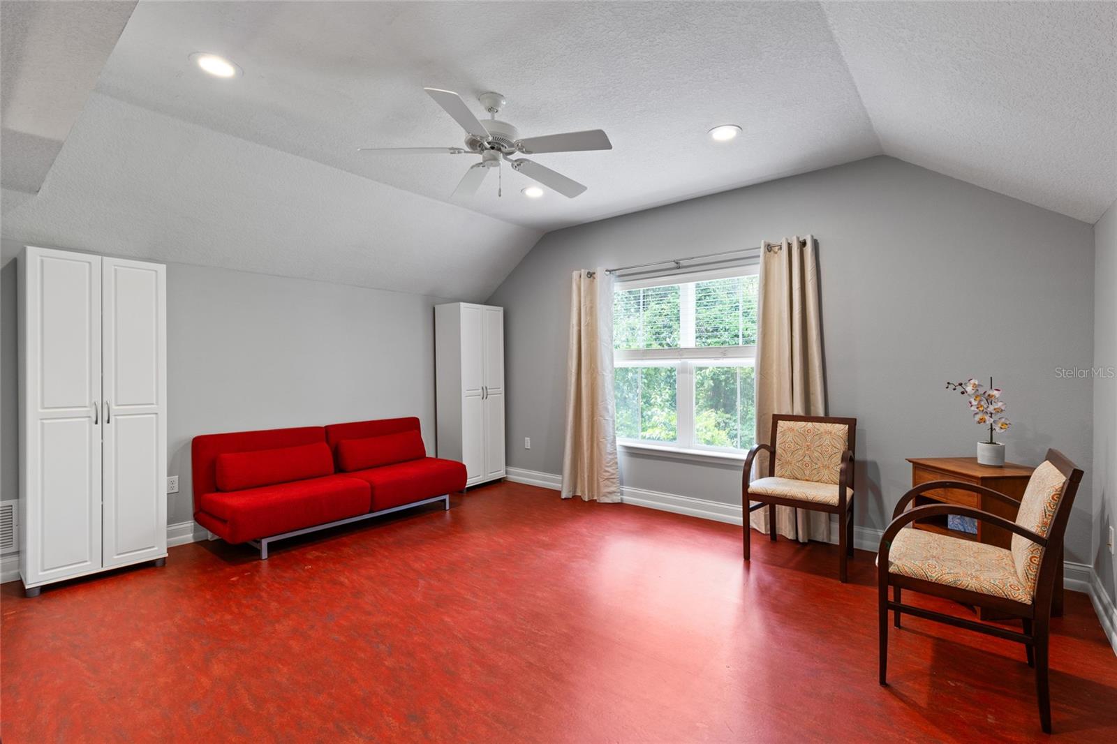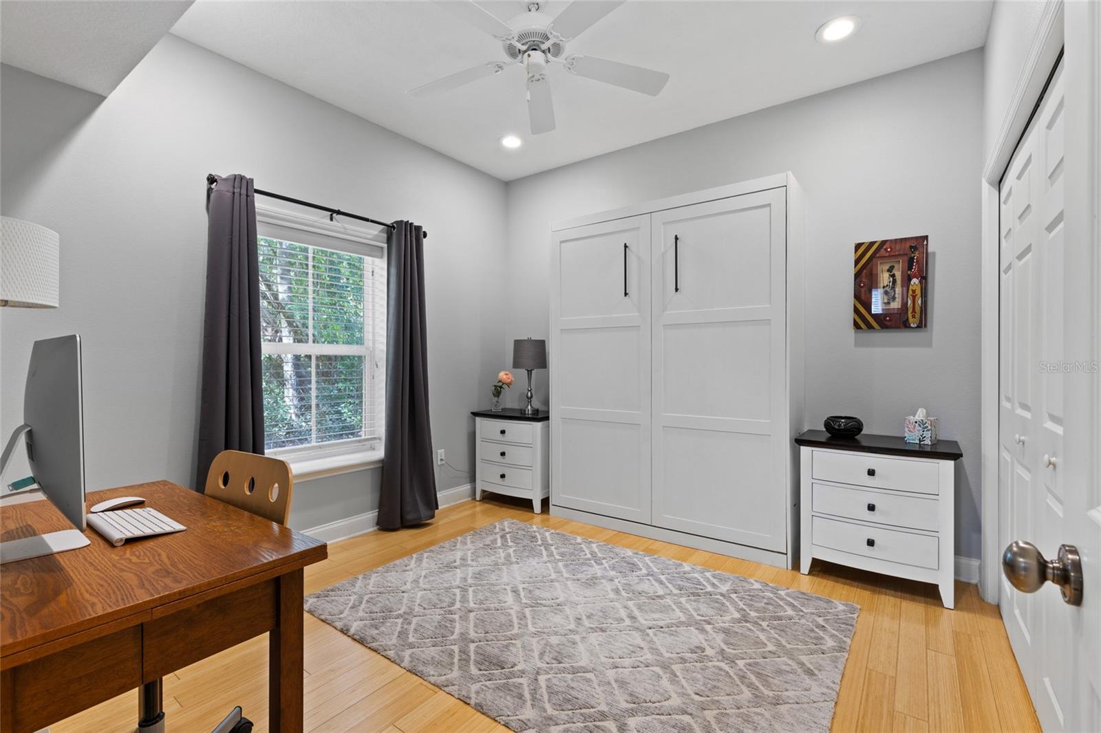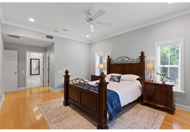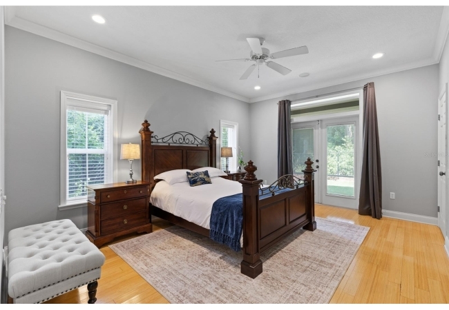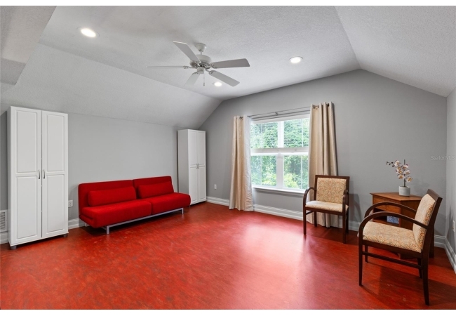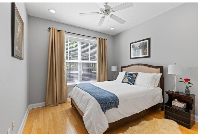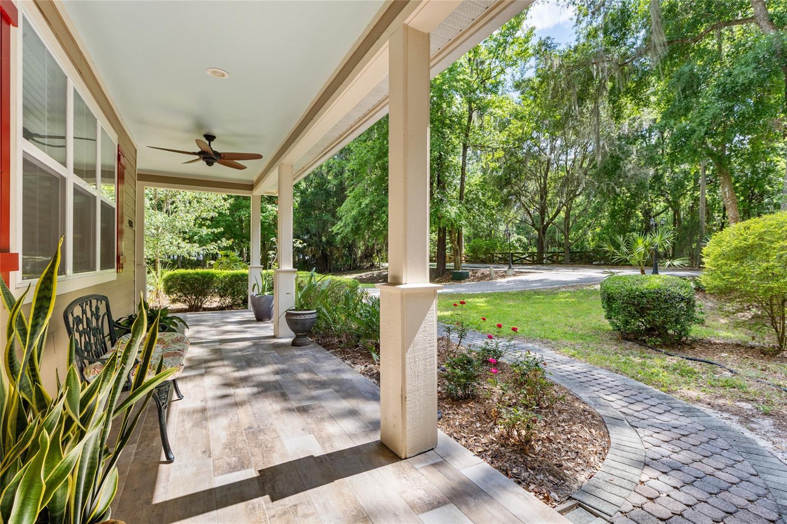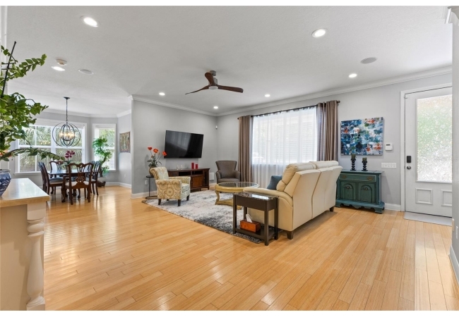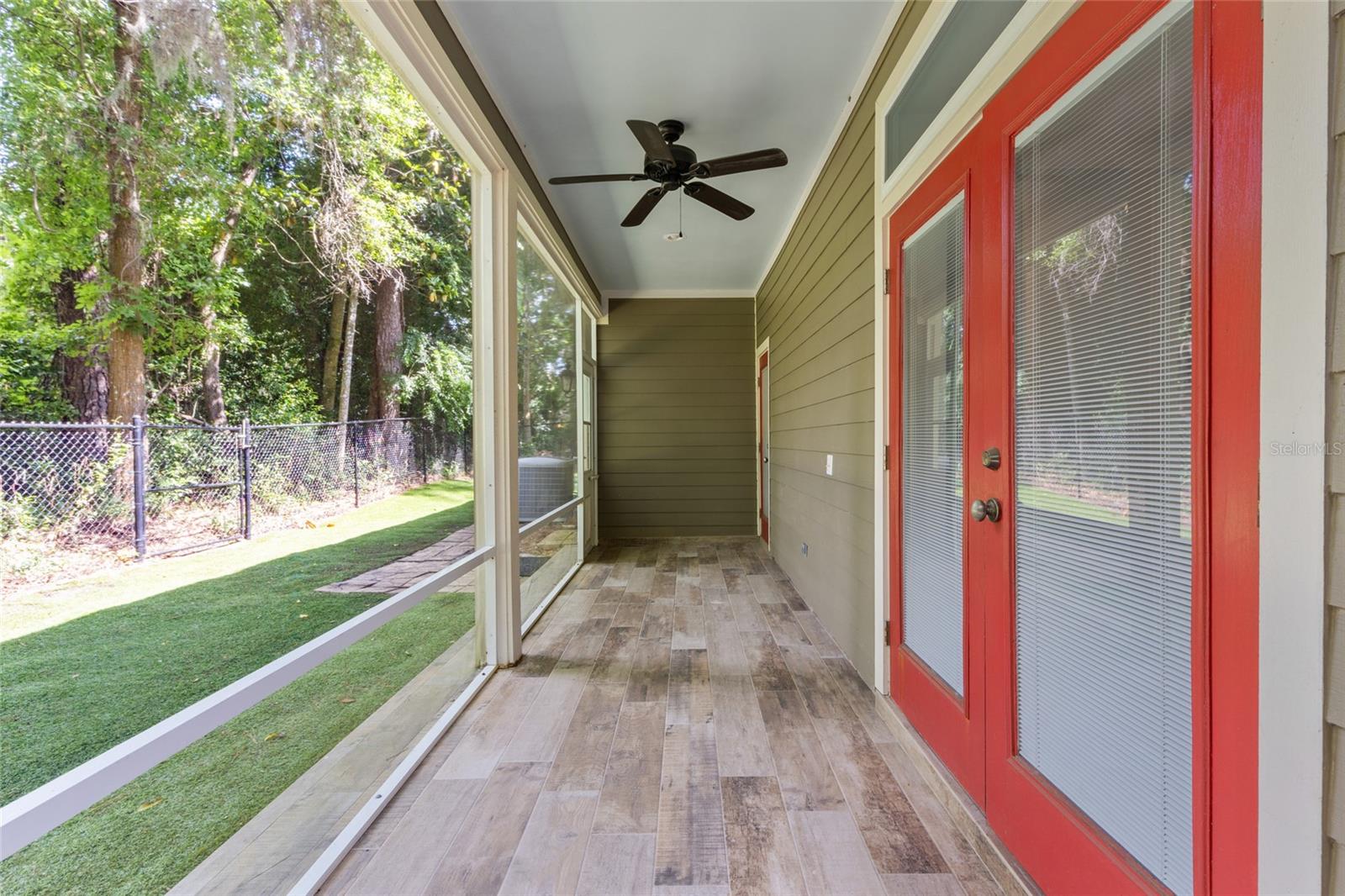 Huge price reduction! Tesla car charger included!! Come see this gorgeously designed Green-Certified home in the sought-after Madera community—just 2 miles to UF, Shands, and the VA! Built to Florida Green Coalition Building Standards with a cistern under the side yard for added flood protection. This spacious 4BR/3BA home features an open great room with sound system, French doors, Corian countertops, breakfast bar, and pull-out shelving. Primary suite offers 2 walk-in closets, screened porch access, and a luxury bath with soaking tub and separate shower. Upstairs includes a large bedroom with full bath and a flex room—ideal as an office or craft space. Recent upgrades: 2024 roof, 2025 fridge/sink/backsplash, 2023 dishwasher, LED lights throughout, new ceiling fans, added Murphy bed, and fresh paint inside and out. Enjoy the screened lanai, large yard with fig and maple trees. All appliances, curtain rods/drapes, TV, Murphy bed, and extra storage cabinets included. This home has been meticulously maintained and is definitely move-in ready—schedule your showing today! Ask for a full list of upgrades!