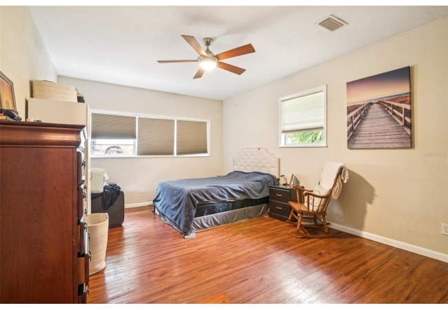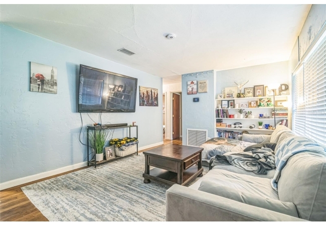 • Spacious Layout: This 4-bedroom, 2-bathroom home features durable wood flooring throughout the living spaces, providing a warm and inviting atmosphere.