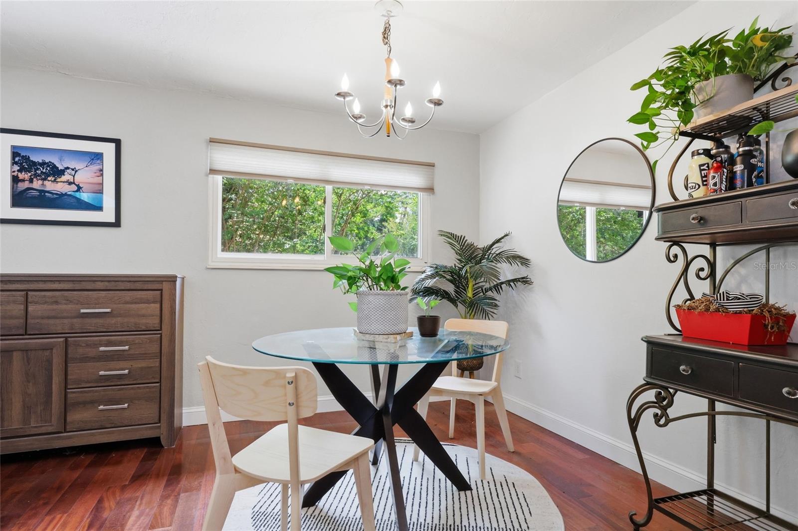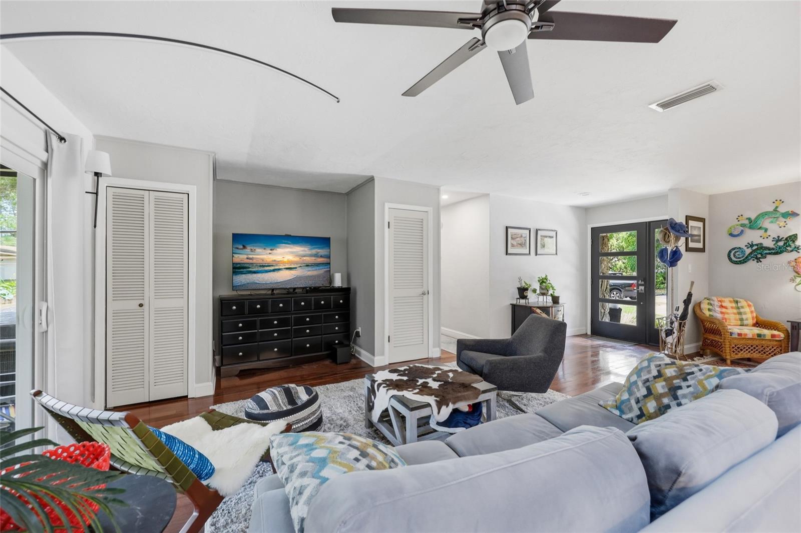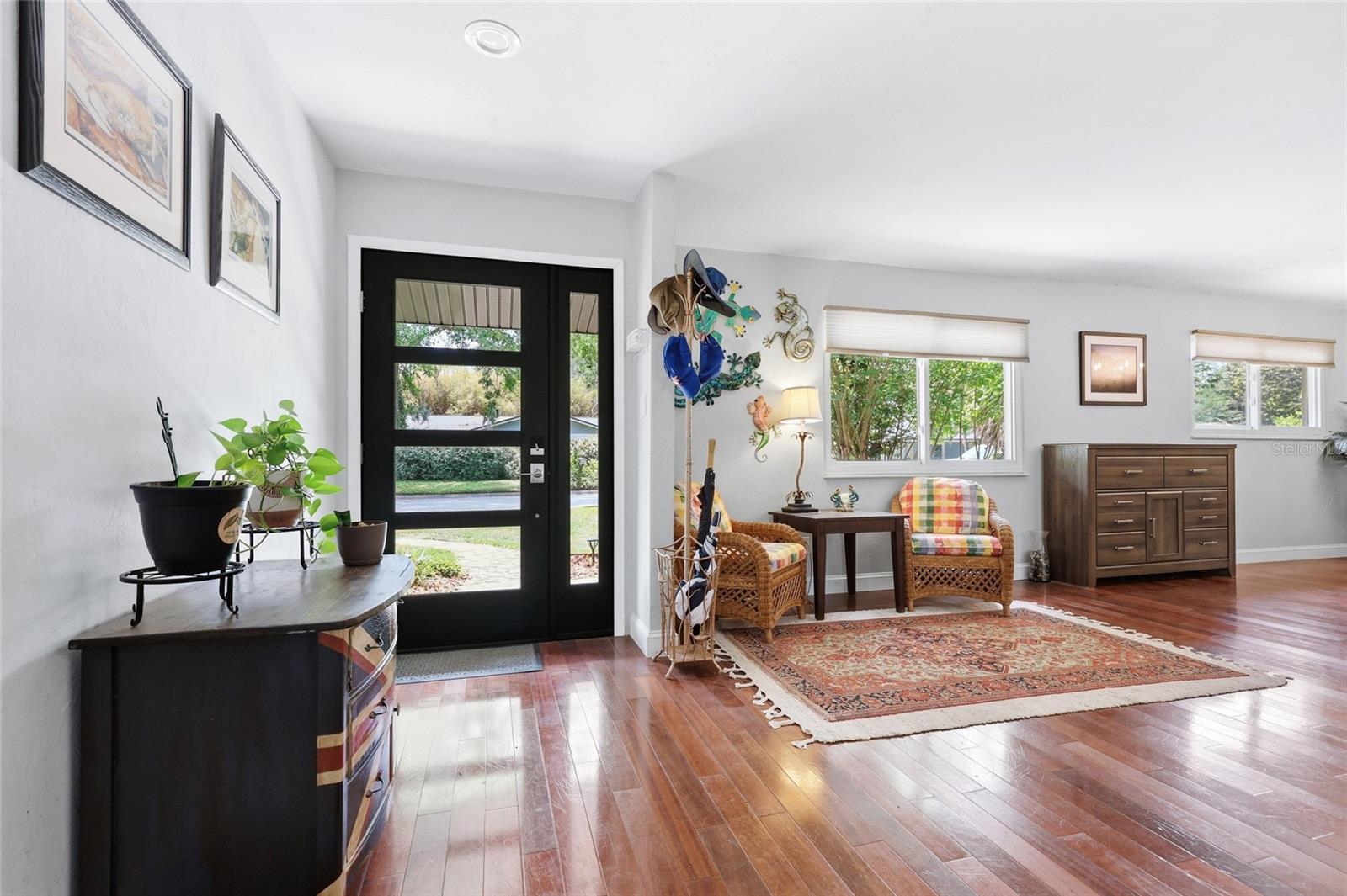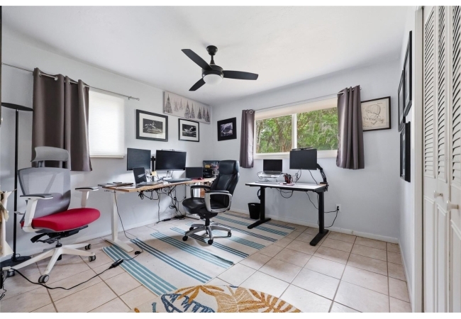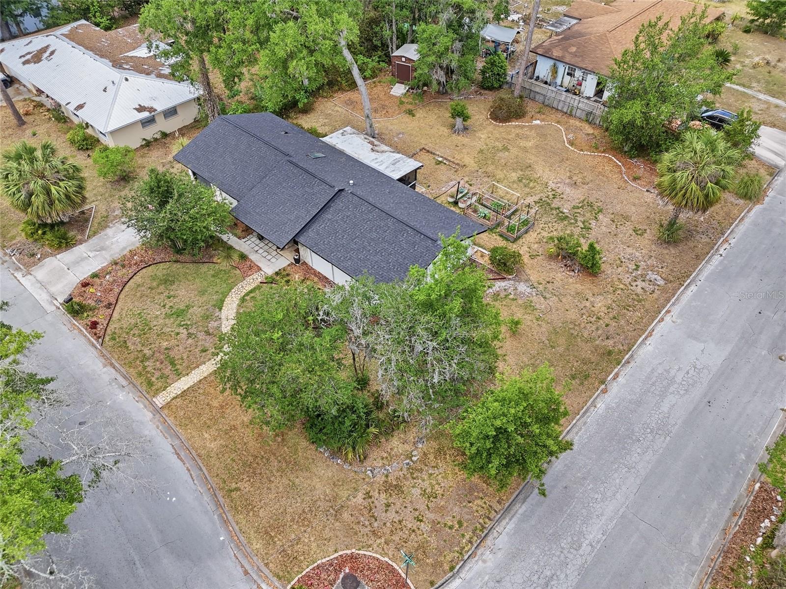 Character and modern updates define this 3-bed, 2-bath home situated on a sprawling 0.34-acre corner lot just 3 miles from the University of Florida! The 1,498 sq ft residence stands out for its durable stucco and stone exterior, a roof installed in 2023, and high-efficiency double-pane windows that refresh the traditional ranch profile. The front lawn and established garden beds frame the picturesque walkway that leads to a beautiful front door offering timeless curb appeal. Once inside, you are immediately greeted by an expansive open-concept great room where rich engineered hardwood floors stretch from the entrance into the common areas and down the hallway. This central hub flows into a modern farmhouse eat-in kitchen that includes an apron-front sink, gas stove with artisan backsplash, oversized breakfast bar, industrial-chic lighting, and a skylight bathing the space in natural light. Beyond the social center of the home, the private hallway leads to the sleeping quarters where unique bespoke bedroom doors add a touch of handcrafted elegance, and the guest bathroom features an updated vanity and tub-shower combination. The primary suite boasts an ensuite with a walk-in shower for personal comfort. Sliding glass doors off the great room open to a spacious screened porch, perfect for enjoying the Florida breeze before stepping out to the large, partially fenced backyard which includes a storage shed and plenty of room for gardening. Practicality is rounded out by a one-car garage that houses the laundry area and efficient natural gas systems. Tucked within the established Palm View Estates, this property places you a block from city transit and a short stroll from the nature trails at Westside Park and the boutique shops of Millhopper. Call today to secure your private tour of this one-of-a-kind Gainesville property!