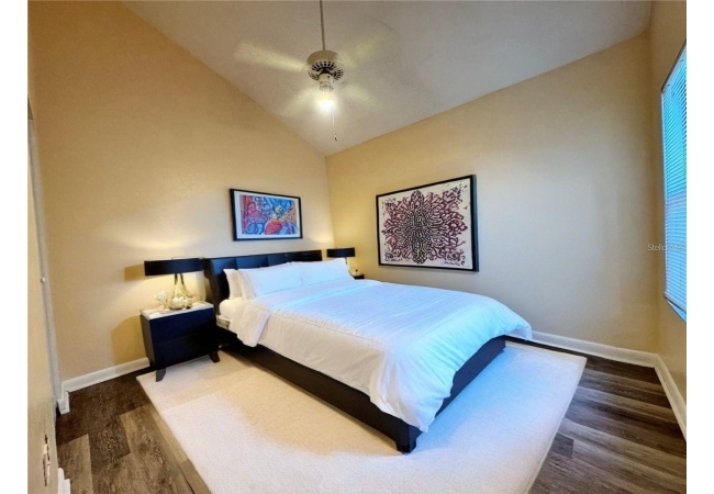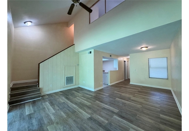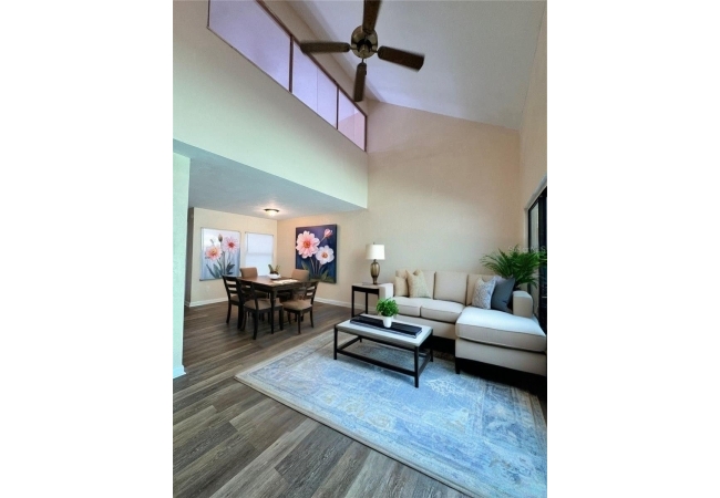 One or more photo(s) has been virtually staged. Updated 2BR/2BA end-unit condo in Greenleaf. This well-maintained condo features an open floor plan with vaulted ceilings, tile and luxury laminate flooring throughout (no carpet), and a partially fenced, private backyard patio. The kitchen includes ample cabinetry, pantry with lots of additional shelving, water filtration system under the kitchen sink and a breakfast bar overlooking the living and dining areas. Downstairs is a hall bath and a spacious bedroom with generous closet space; the primary suite(upstairs) offers an en-suite bath, double closets and an additional bonus room perfect for walk in closet, nursery, office and more. The living room features ceilings that are 2 story high and a full wall of sliding glass windows that leads you out to your covered back deck.