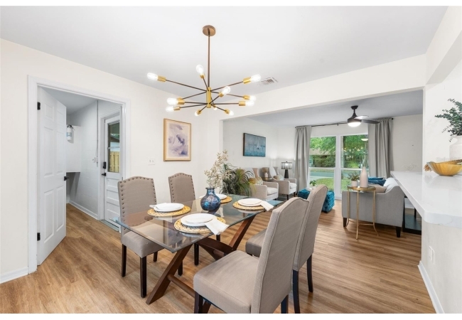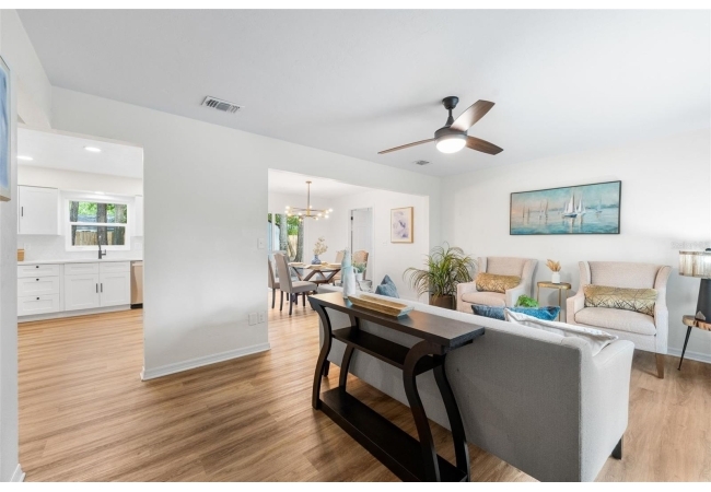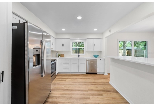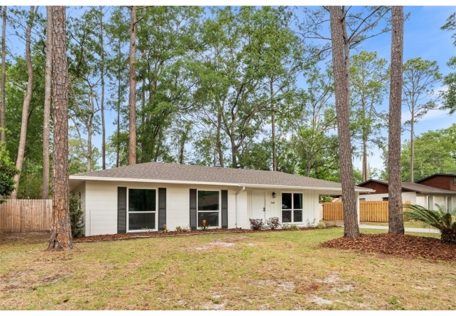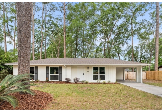 Fully remodeled in the last few years, this move-in ready 3 bedroom, 2 bathroom home in Northwest Gainesville showcases modern upgrades, timeless design, and an unbeatable location near top schools, shopping, and major employers including the University of Florida, UF Health, and the Malcolm Randall Veterans Affairs Medical Center. Zoned for and walk to Norton Elementary and ideally positioned for easy commuting, this home features NEW windows, 2024 HVAC, newer water heater, and a 2022 roof for peace of mind. Natural light pours through oversized picture windows, highlighting luxury vinyl plank flooring throughout with no carpet. The fully updated kitchen is designed for both function and style with quartz countertops, a large island, stainless steel appliances, designer herringbone laid backsplash, and a window overlooking the fully and newly fenced, spacious backyard. Both bathrooms have been thoughtfully renovated with designer tile, shower niche, premium fixtures, and modern vanities. Additional highlights include an interior laundry room with built-ins, washer and dryer included, and a storage shed that conveys as is. No HOA. Schedule your private showing today.