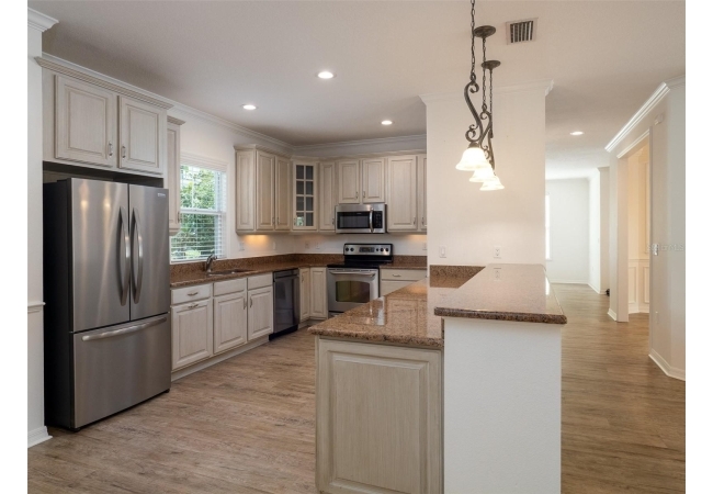 Multiple outdoor patios and privacy fencing provide even more space to unwind or entertain, allowing you to enjoy the beautiful Florida weather year-round. Just steps from your front door, enjoy access to neighborhood amenities including tennis courts, athletic fields, a community pool, and scenic paths. ~