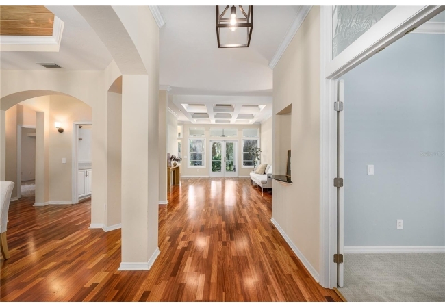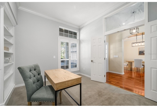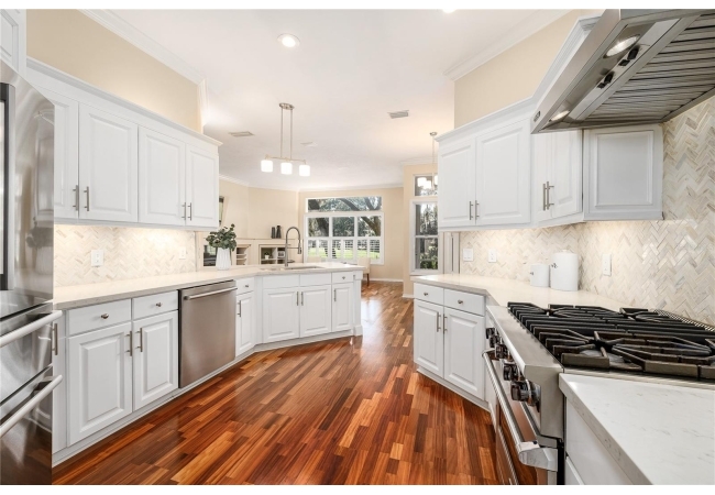 Beautiful Golf Course Home in Haile Plantation’s Bennet’s Garden — Prime Location & Stunning Views! Welcome to this elegant 3-bedroom, 2.5-bathroom home featuring a dedicated study and an expansive bonus room, perfectly situated on one of the most desirable lots in Haile Plantation’s Bennet’s Garden. Overlooking the 12 & 13th holes of Hawkstone Country Club, this home captures some of the best sunset views in the community as the light filters through the majestic oak trees. Step inside to find a home filled with character and thoughtful upgrades. Trim details such as crown molding, chair rail, and a coffered ceiling add timeless charm throughout. A formal living room and formal dining room provide wonderful spaces for entertaining, while the updated kitchen shines with white cabinetry, quartz countertops, stainless steel upgraded appliances, and beautiful designer finishes. The spacious primary suite offers a peaceful retreat with decorator colors and fixtures, a large walk-in closet with solid shelving and built-ins, a soaking tub, and a separate shower. Two additional guest bedrooms share a convenient Jack-and-Jill bathroom, with each bedroom enjoying its own private sink and vanity. A generous study provides flexible space for work or hobbies, and the huge bonus room offers endless possibilities—playroom, media room, fitness area, or additional living space. Outside, the premium golf course lot offers unmatched backyard views and serenity. Just one block from the shops and restaurants of Haile Village Center and minutes from Publix Market Square, the location is truly exceptional. Haile Plantation is a golf-cart-friendly neighborhood, and residents have the option to join Hawkstone Country Club to enjoy golf, tennis, pickleball, the pool, and clubhouse amenities. Bennett’s Garden HOA includes lawn care, seasonal bark, power washing, and roof/gutter cleaning, offering low-maintenance living in one of Gainesville’s most beloved communities.