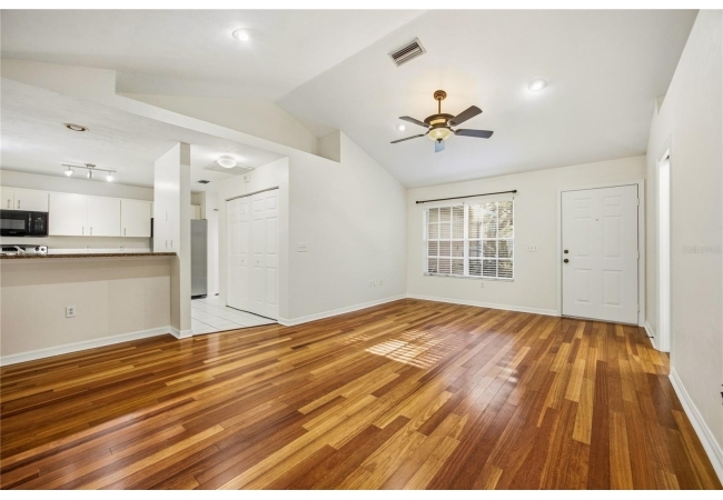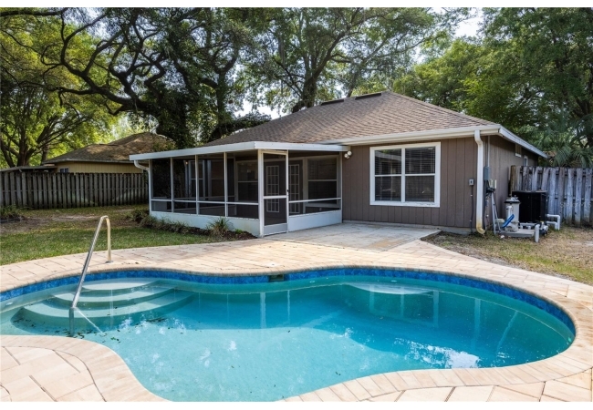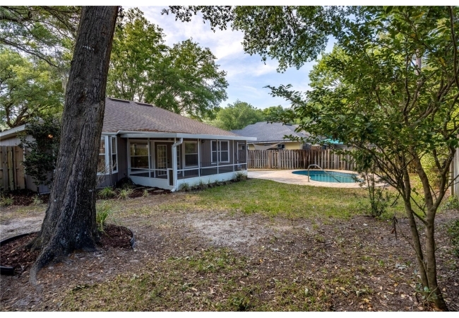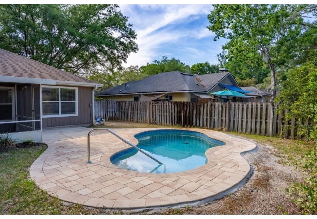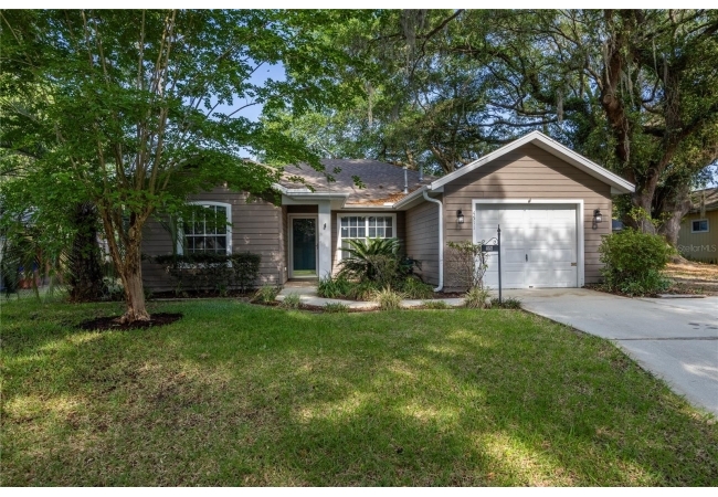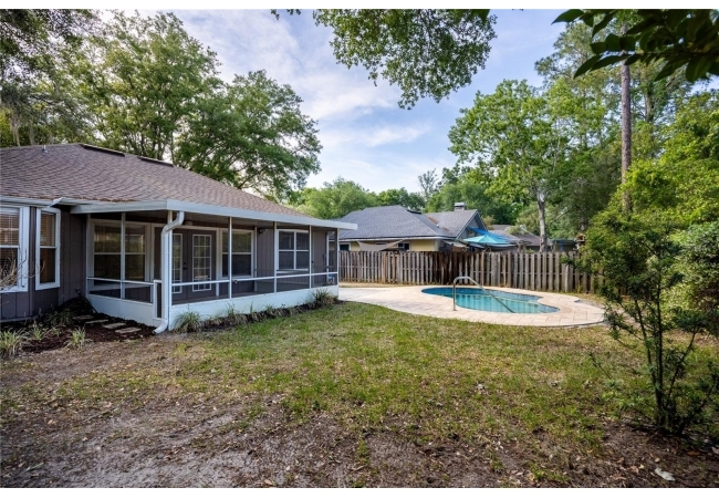Looking for that perfect mix of move-in ready combined with a great NW Gainesville location? Welcome to Capri. This 2 bedroom, 2 bathroom pool home was built in 1996 and has 1,268 heated and cooled square feet. Located on a quiet cul-de-sac you will love the neighbors who frequently have get togethers and dinners. Capri was developed by Phil Emmer and the neighborhood has a large clubhouse, community pool, playground and sports courts. The location is just 4 miles to the University of Florida, Santa Fe College or downtown Gainesville. Walk to nearby trails, bike paths and area shops and restaurants. Low monthly HOA of $94. The home has many features you will love including vaulted ceiling, wood floors, open floor plan, split bedrooms and fresh interior paint. The updates include roof in 2016, HVAC in 2024, pool in 2024 and interior paint in 2026. From the covered front entry, you enter the open Great Room with high ceilings, Brazilian oak pre-engineered wood floors and new interior paint. To the left of the front door is the guest bathroom. This has updated tile, large vanity and a tub/shower. To the left of the guest bathroom is the guest bedroom. It has a double closet, vaulted ceiling and wood floors. From the front door, through the Great Room, to your right is the kitchen. Heading into the kitchen is a laundry closet with a washer and dryer and extra shelving for storage. The open kitchen has a breakfast bar, pantry, ample room for storage and a dining area overlooking the backyard. To the right of the kitchen is the one car garage with shelving for storage and an automatic garage door opener. Off the other end of the kitchen/dining area is the Florida Room with cherry wood floors and a set of French doors leading to the covered, screened porch. Step out of the porch onto the paver patio surrounding the in-ground, heated pool. The yard is fenced and gated and includes irrigation, landscaping and Live Oaks. Total acreage is .17. Coming back into the house, through the Florida Room to your right is the Primary Suite. This room has fresh interior paint, wood floors and tray ceiling with a large window overlooking the pool. The en suite bathroom was updated with new vanity, fixtures and lighting. There is a large shower and walk-in closet. Zoned for Norton Elementary, Westwood Middle and Gainesville High Schools. A great home in an ideal, NW Gainesville location.