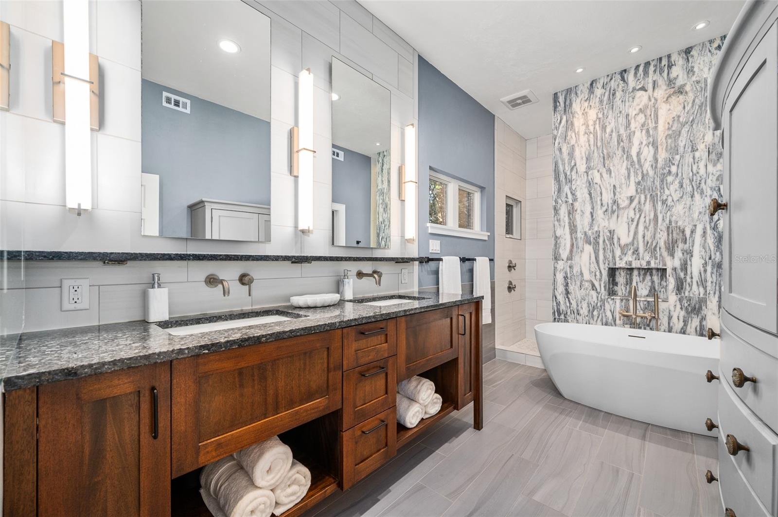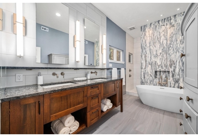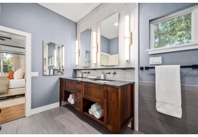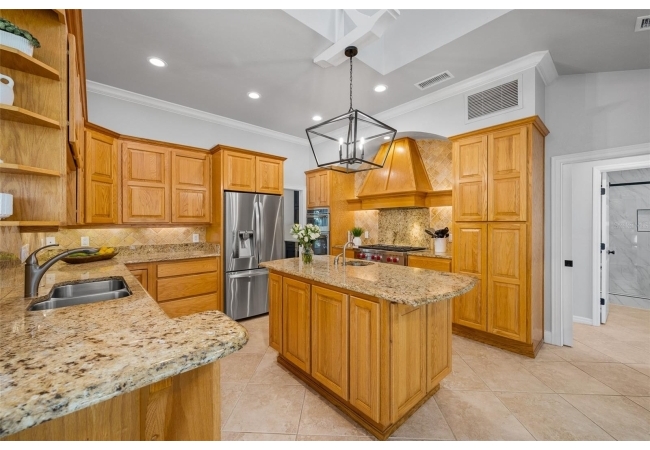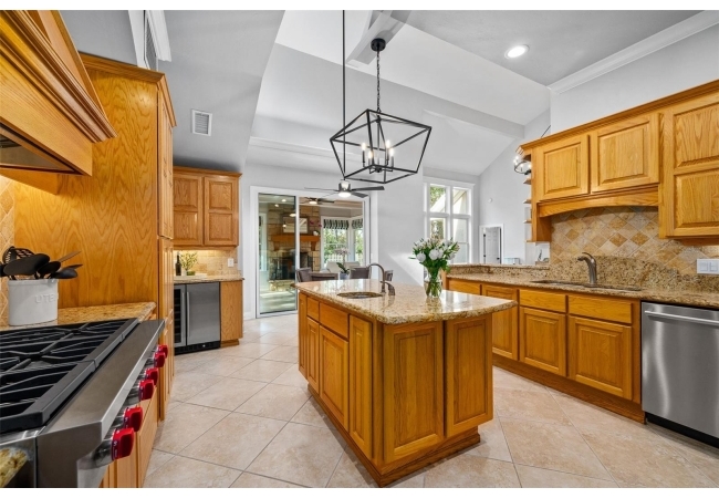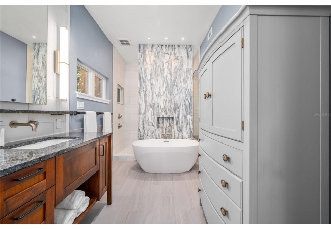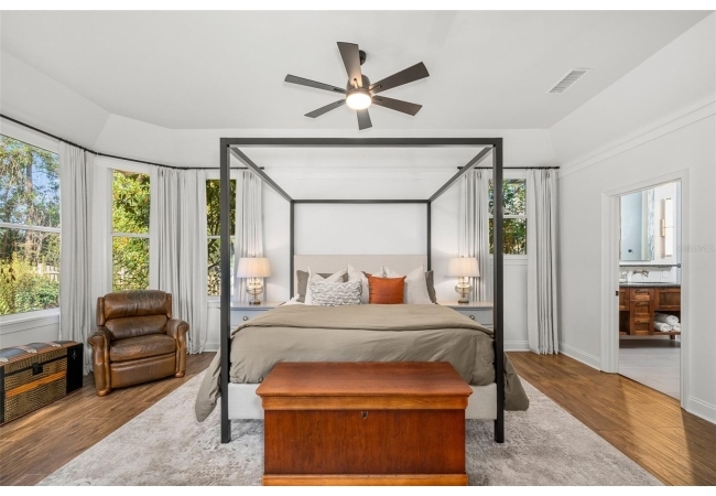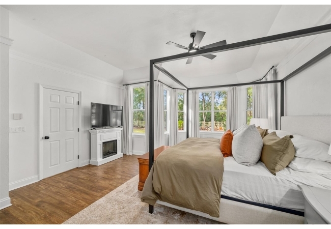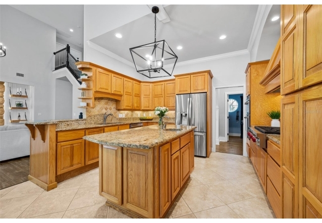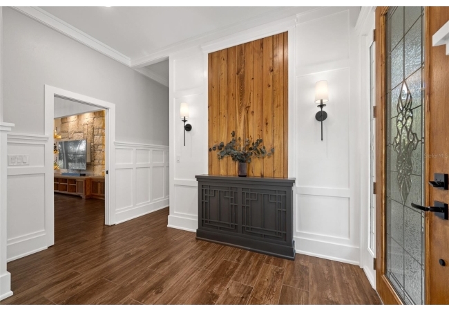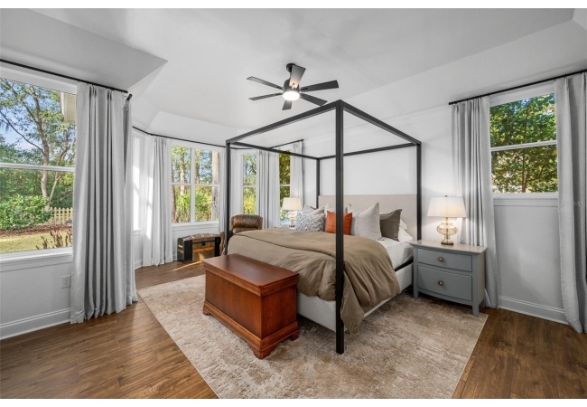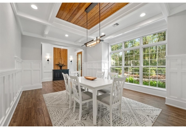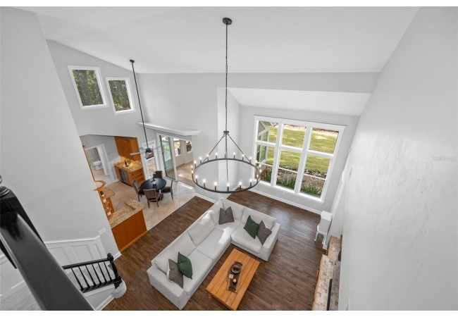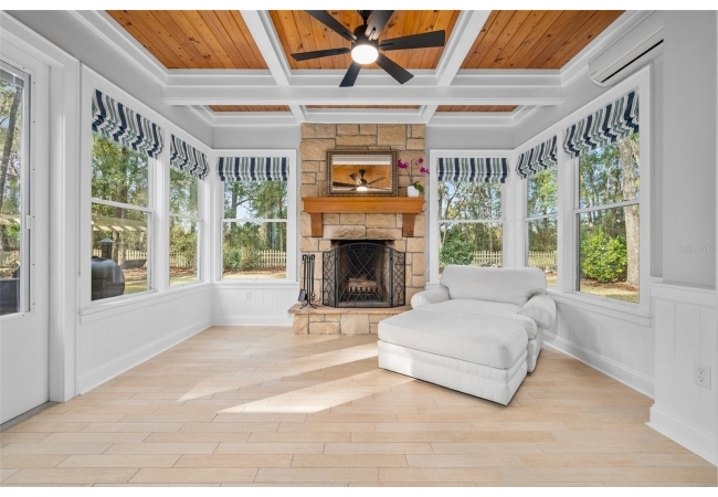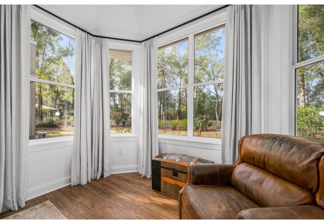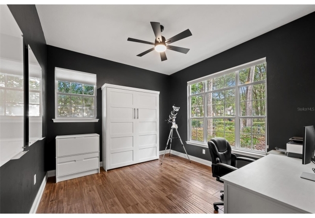 You'll love coming home to this completely renovated two-story luxury home situated on a premium lot in Haile Plantation. Exceptional curb appeal and a brick paver pathway leads to this stately home with a gorgeous leaded-glass front door. Inside, the elegant formal dining room sits to the left, featuring classic wainscoting and a stunning chandelier—perfect for entertaining. Beyond the dining room, the expansive family room impresses with cathedral ceilings, a dramatic lighted stone entertainment wall, and a gorgeous oversized chandelier that anchors the space. The chef’s kitchen is truly the heart of the home, thoughtfully designed with stainless steel appliances including a Wolf six-burner gas cooktop, a wall oven and microwave, granite countertops, custom wood cabinetry, a wine refrigerator, and a wood vent hood. A large island with a prep sink provides additional workspace. The kitchen overlooks the breakfast nook and the sun-filled Florida room, which features a wood-burning fireplace and a coffered ceiling, all overlooking the newly landscaped, expansive backyard. Located between the dining room and kitchen is an incredible butler's pantry with a built-in oven, granite countertop, glass door cabinetry and a large walk-in pantry with custom shelving. Just off the kitchen is a well appointed full bath ideal for pool or outdoor access.The large laundry/mud room is complete with a second refrigerator, a sink, lots of cabinets and a window. The primary suite is conveniently located on the main level and offers a large walk-in closet and a beautifully renovated, spa-like en suite bath with dual vanities, a free standing soaking tub, and an exceptional walk-in shower with floor to ceiling tile and multiple shower heads. Also on the main floor is a spacious guest bedroom with a Murphy bed, a fully renovated hall bathroom with a walk-in shower. Upstairs, you’ll find a generous flex space, two additional bedrooms, and a full bathroom with double sinks and a tub/shower combination. A large storage/bonus room adds versatility, and one of the upstairs bedrooms is plumbed for an additional bathroom. Step outside to a private, low-maintenance, fenced backyard featuring a hot tub, a charming gazebo with swings, and a fire pit—perfect for relaxing or entertaining. The Haile Plantation community offers miles of walking trails, parks, playgrounds, basketball, a Village Center with shops and restaurants and the Hawkstone Country Club. The Hawkstone Country Club (membership required) offers dining, golf, tennis, pickleball, a gym and two pools.