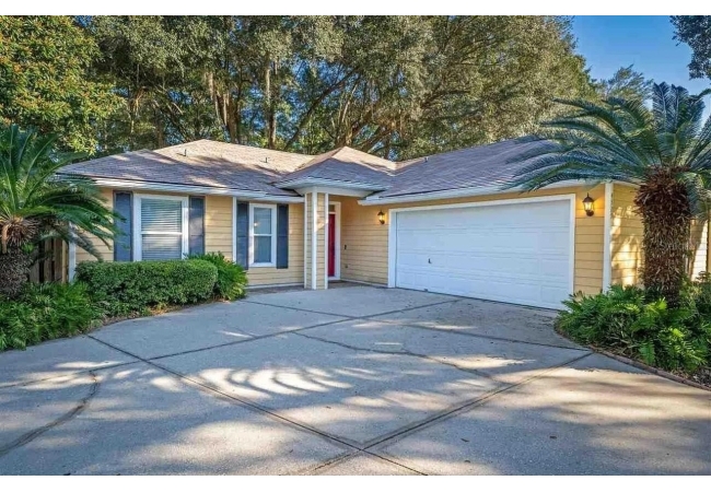 Welcome to this 3-bedroom, 2-bath home with a dedicated office and Florida Room, tucked away at the end of a quiet cul-de-sac in the highly desirable NW Gainesville community of Capri. This inviting home features a desirable split floor plan and abundant natural light throughout, with brand-new carpet in all three bedrooms and a roof replaced in 2019. Situated on a 0.27-acre lot, the property offers a large, fully fenced backyard ideal for privacy and outdoor enjoyment. The spacious primary suite is a true retreat, highlighted by an elegant tray ceiling and a generous en-suite bath with a walk-in shower. Two guest bedrooms provide comfort and flexibility, while the separate office/study is perfect for working from home or a quiet reading space. At the heart of the home, the kitchen offers ample counter space and storage and flows seamlessly into the dining area and family room—ideal for everyday living and entertaining. A large Florida Room overlooks the private backyard, creating a serene setting for morning coffee, relaxation, or gatherings. Additional features include a laundry/utility room and a two-car garage with plenty of storage. Residents of Capri enjoy a low HOA fee that includes access to the 9,000-square-foot Club Capri resort-style clubhouse, featuring a club director, two swimming pools, BBQ areas, and an active community lifestyle.
