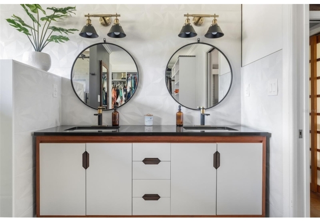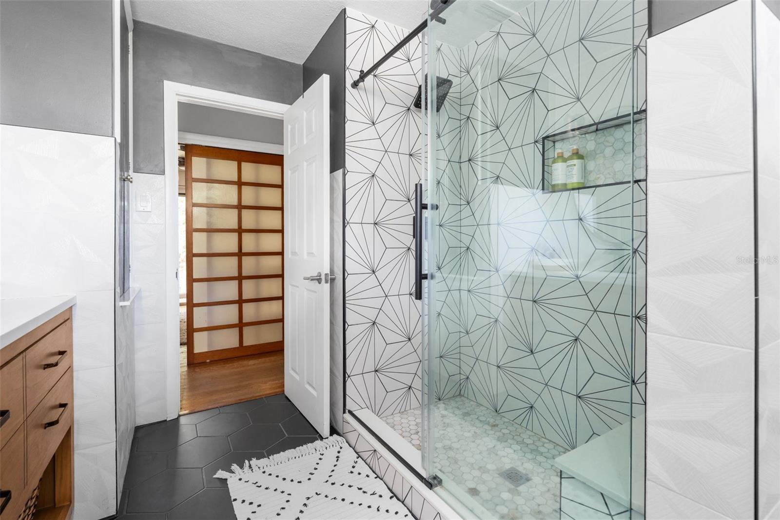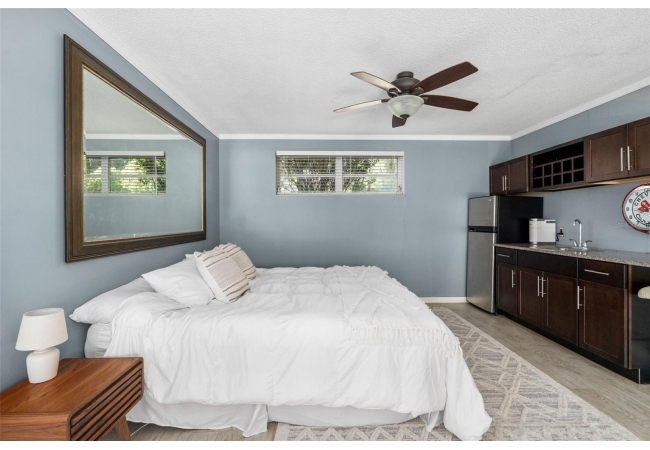 Upstairs, the living quarters include a spacious home office, three guest bedrooms with elegant Japanese screen doors, a fully renovated guest bath with dual vanities, and a luxurious primary suite with a reimagined spa-like ensuite bath and walk-in closet.