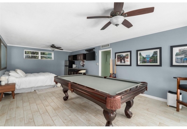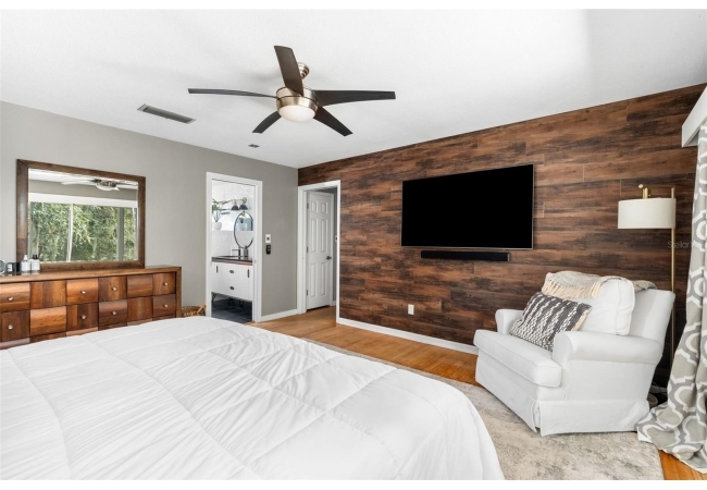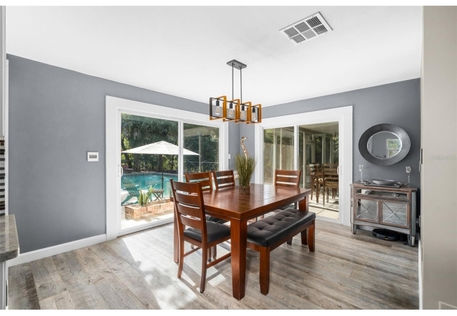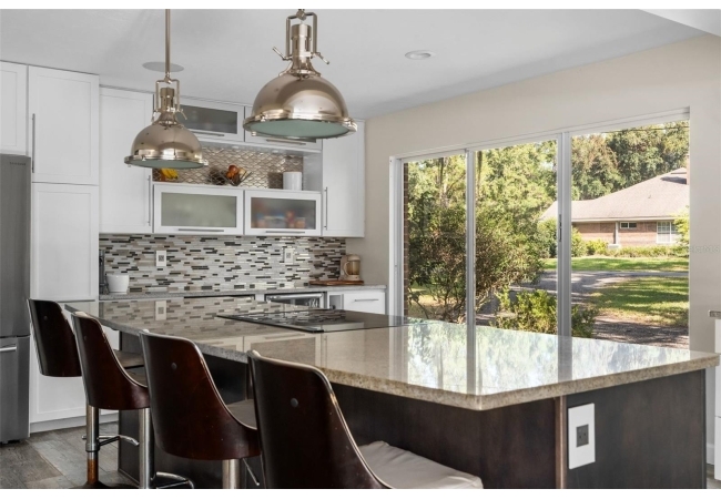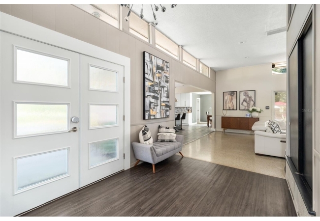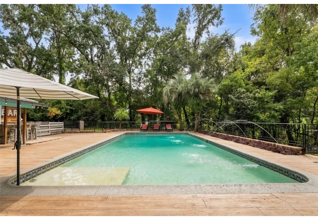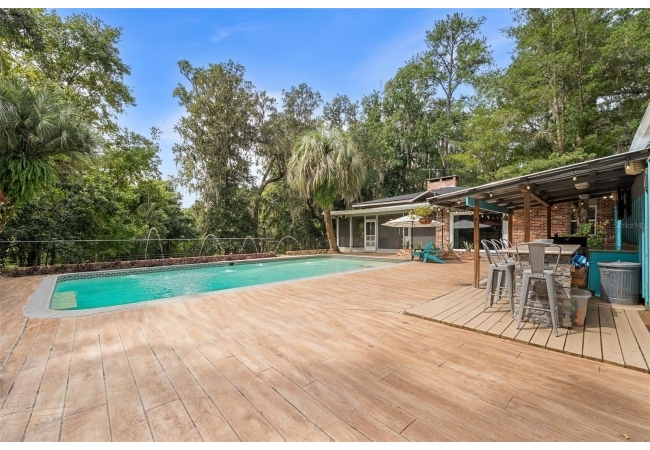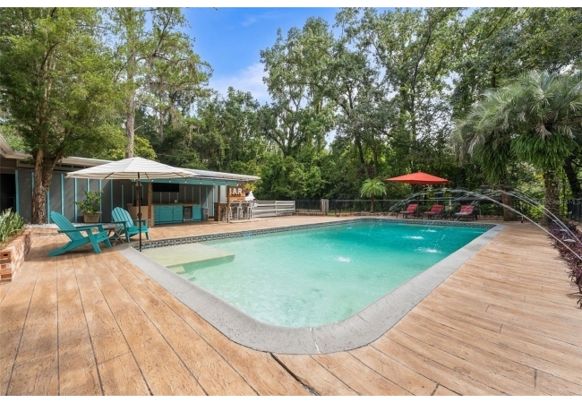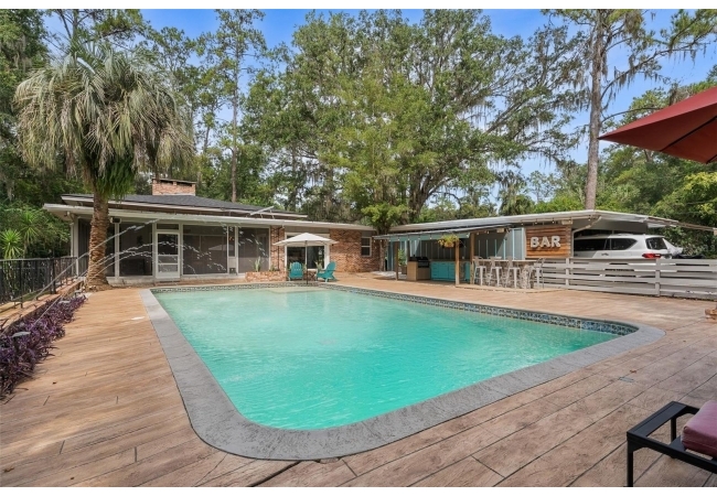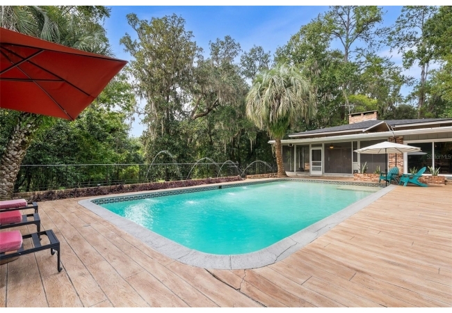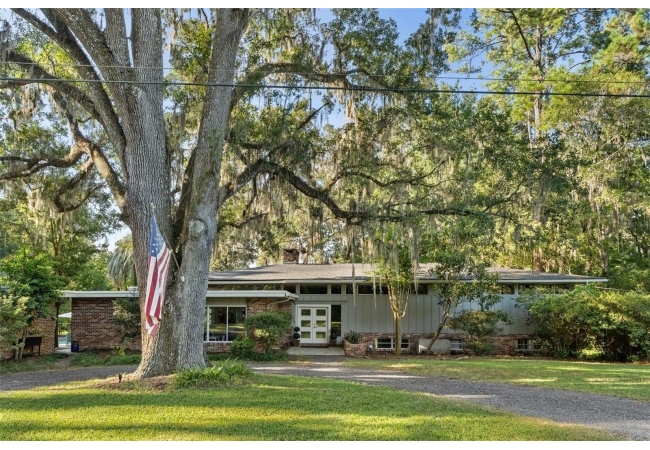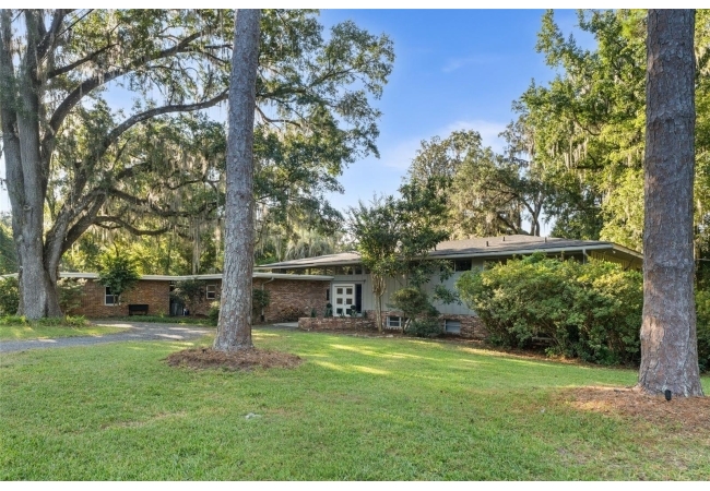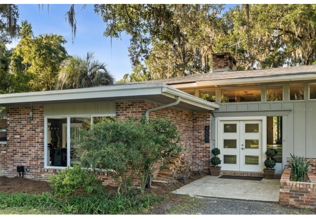 Tucked away at the end of a private street, this beautifully updated mid-century modern pool home offers nearly 4,000 square feet of stylish living space, all set on a stunning one-acre lakefront lot in the heart of Gainesville.