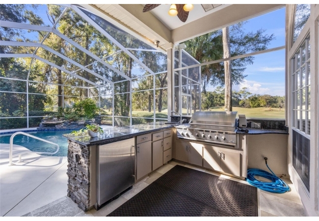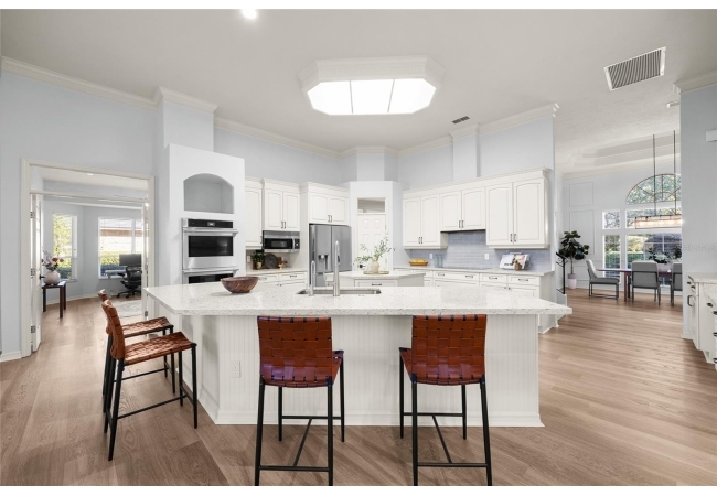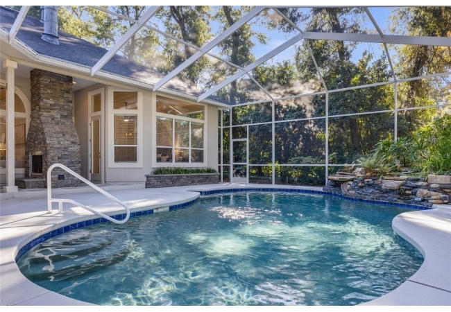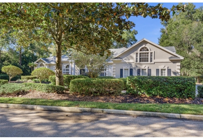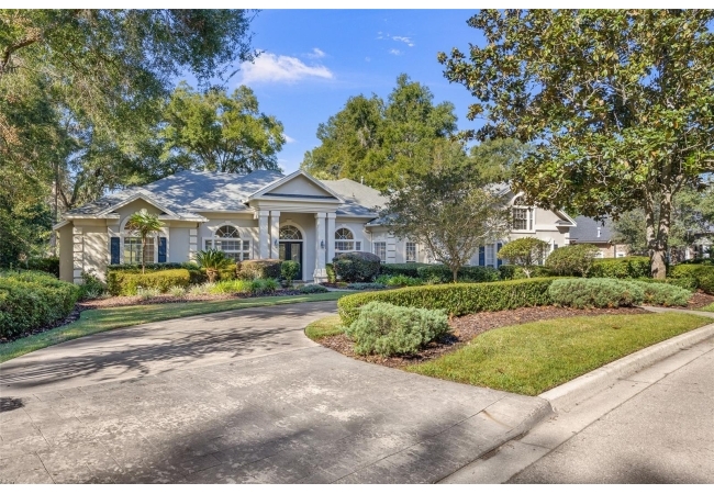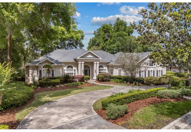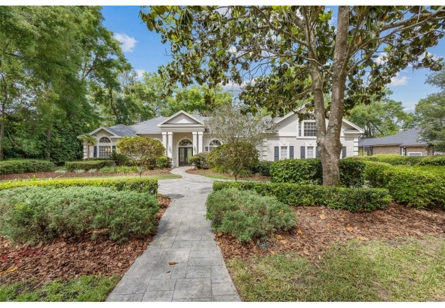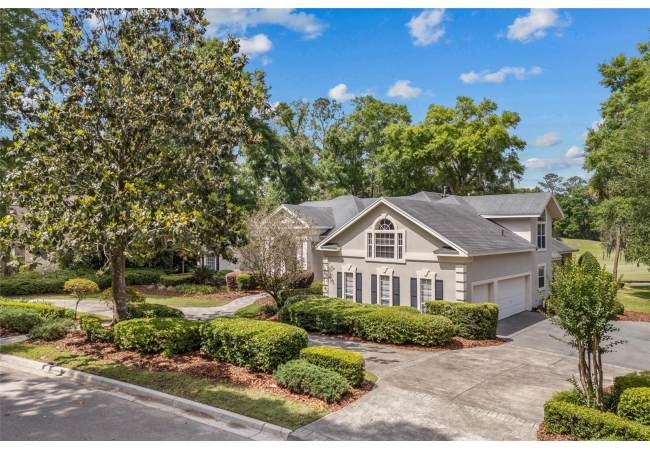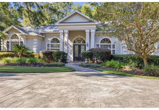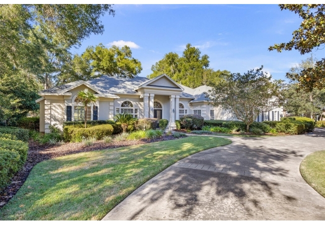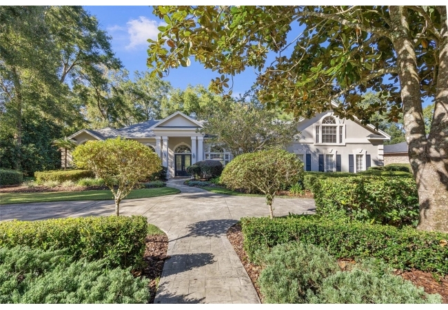 Welcome home to your beautifully updated Haile Plantation India Station estate, set on one of the most desirable golf course lots in Hawkstone Country Club, with sweeping views of the signature 10th hole. This stately home offers over 4,900 square feet of thoughtfully designed living space, blending refined finishes with comfort and functionality. As you arrive, a circular driveway framed by lush landscaping creates a gracious first impression, while the oversized 3 car garage with a built in workshop adds both convenience and storage. Step inside to soaring ceilings, abundant natural light, and brand new luxury vinyl plank flooring that flows throughout the main level. Off the entry, you'll find a grand home office with French doors, a formal dining room, and a secondary living area, perfect for entertaining or creating a quiet retreat. The home features a 4 way split floor plan, ensuring privacy and space for everyone. The heart of the home is the updated kitchen, where new quartz counters, a designer backsplash, and all new stainless steel appliances make a bold, modern statement. The kitchen opens to the family room and casual dining area, all of which are flooded with natural light and framed by stunning panoramic views of the golf course. Whether you're starting your morning with a cup of coffee or winding down in the evening, the view from this space is simply unmatched. All 4.5 bathrooms have been recently renovated with a cohesive, stylish design that feels timeless yet current. Frameless glass shower enclosures, beautiful tilework, and sleek quartz countertops create a polished, spa like feel throughout. Step outside to your private outdoor oasis, featuring a resort style pool with waterfall, a granite summer kitchen, a cozy outdoor fireplace, and expansive covered patio space, all with sweeping views of the fairway. With 4 main bedrooms and 4.5 baths, the home offers incredible flexibility. Two of the spacious bedrooms are separated by a flex room perfect for an ideal bonus living space, study retreat, or playroom. The upstairs bonus room has been reimagined as a true multi purpose space with endless possibilities, perfectly complemented by the updated full bath and new wet bar with refrigerator. Whether you envision a game room, private guest suite, fitness studio, hobby room, or teen retreat, this space is ready to accommodate your lifestyle. The spacious primary suite is tucked away on the main floor and offers tranquil golf course views, a luxurious updated en suite bath with quartz counters and enlarged zero entry shower, stand alone soaking tub, separated vanities, toilet closet and dual walk in closets. Beyond the home, residents enjoy all the perks of Haile Plantation, one of Gainesville’s most sought after communities. Stroll or bike along miles of shaded walking trails that wind through lush surroundings, or head to the charming Haile Village Center for coffee, dining, boutiques, and community events including the Saturday morning farmers market. With easy access to UF Health Shands, HCA Florida North Florida Hospital, Butler Plaza, Celebration Pointe, and I 75, the location offers unmatched convenience while preserving a peaceful, neighborhood feel.