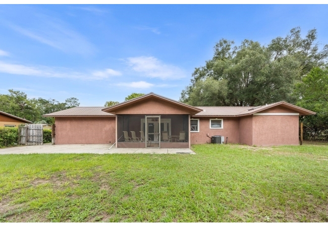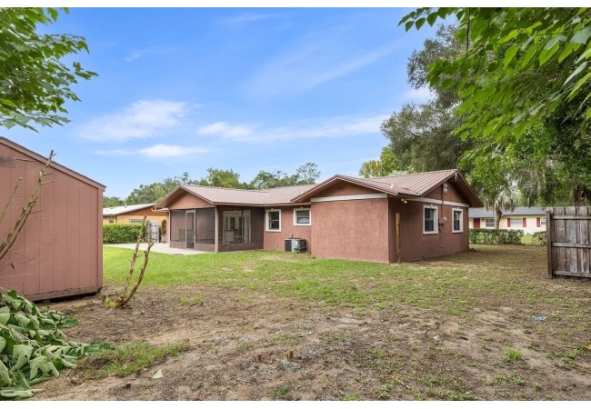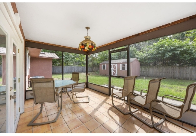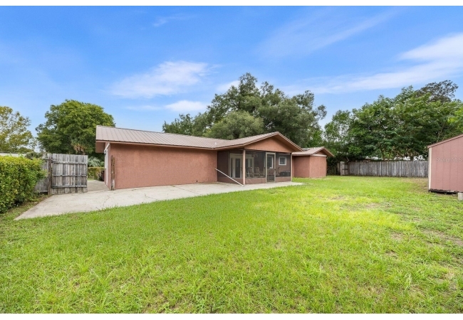 You’ll love the convenience — close to schools, University of Florida, and major hospitals. The versatile layout offers amazing possibilities! Featuring 3 bedrooms, 2 baths, a den/office/flex room (which was the original living room), plus a spacious great room addition that could potentially be enclosed for a private in-law suite/guest suite or rental. This area already includes its own entrance, a walk-in closet that is next to the laundry room. (There's enough space to keep the laundry room separate and shared by both spaces). Freshly painted in parts and professionally cleaned, this home is move-in ready. The updated kitchen has newer cabinetry and granite countertops, while the hall bath features a modern vanity. You’ll find tile floors in the kitchen and flex areas and laminate floors in the great room. From the dining room, go through French doors with side lights and blinds inserts and step out to the huge screened porch for peaceful afternoons, or enjoy the fenced backyard complete with a large storage shed — perfect for tools and hobbies. Great sized yard and plenty of extended concrete pads for parking and extra patios. So much potential, so much value! Call today before this gem is gone.