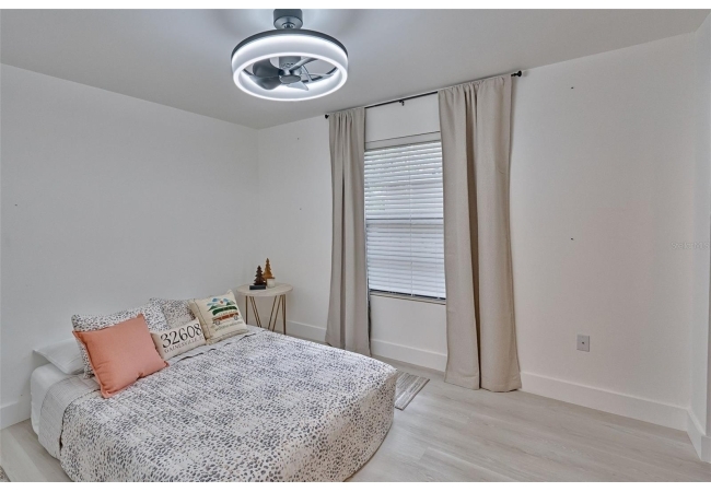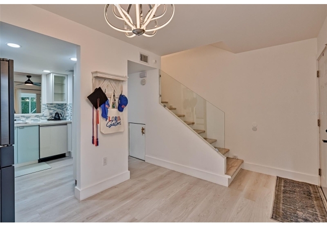 Step into this newly updated house where modern style meets everyday convenience! This remodeled home will delight with modern LED lighting throughout, sleek quartz countertops, fresh luxury vinyl plank flooring, and stainless-steel appliances. Both beautifully updated bathrooms have walk-in showers. Enjoy the private backyard paradise with waterproof composite decking, artificial ivy walls, and a cozy enclosed glass porch that provides the perfect place to escape and relax. With a bright, open feel and tasteful finishes throughout, this home is truly move-in ready. Additional improvements include new AC in 2024, large bedroom and pantry closets, glass staircase railing, craftsman baseboards, Ring Alarm System, and Smart Thermostat. Save money with low maintenance, low utilities, and low HOA fee! Plus, you’re just minutes from shopping/dining at Celebration Pointe, Butler Plaza, top hospitals, and the University of Florida—making it the perfect blend of comfort, style, and location!