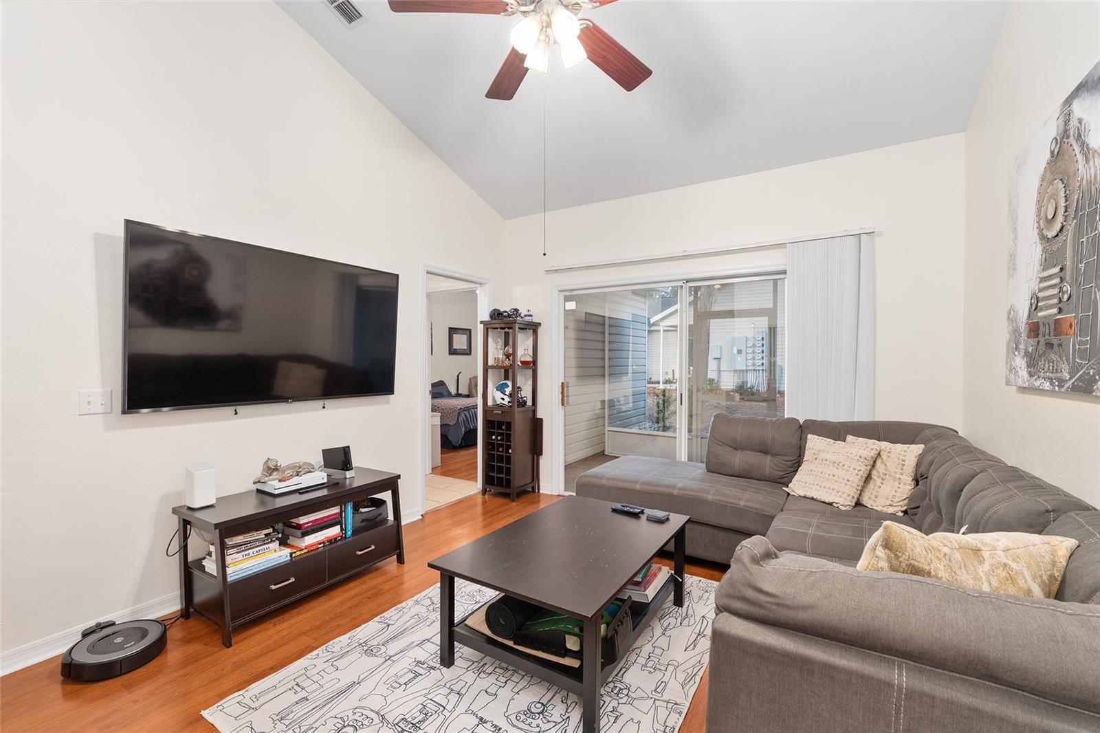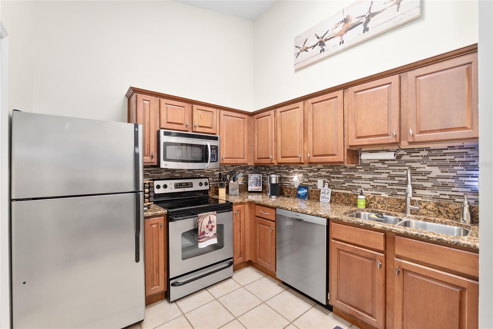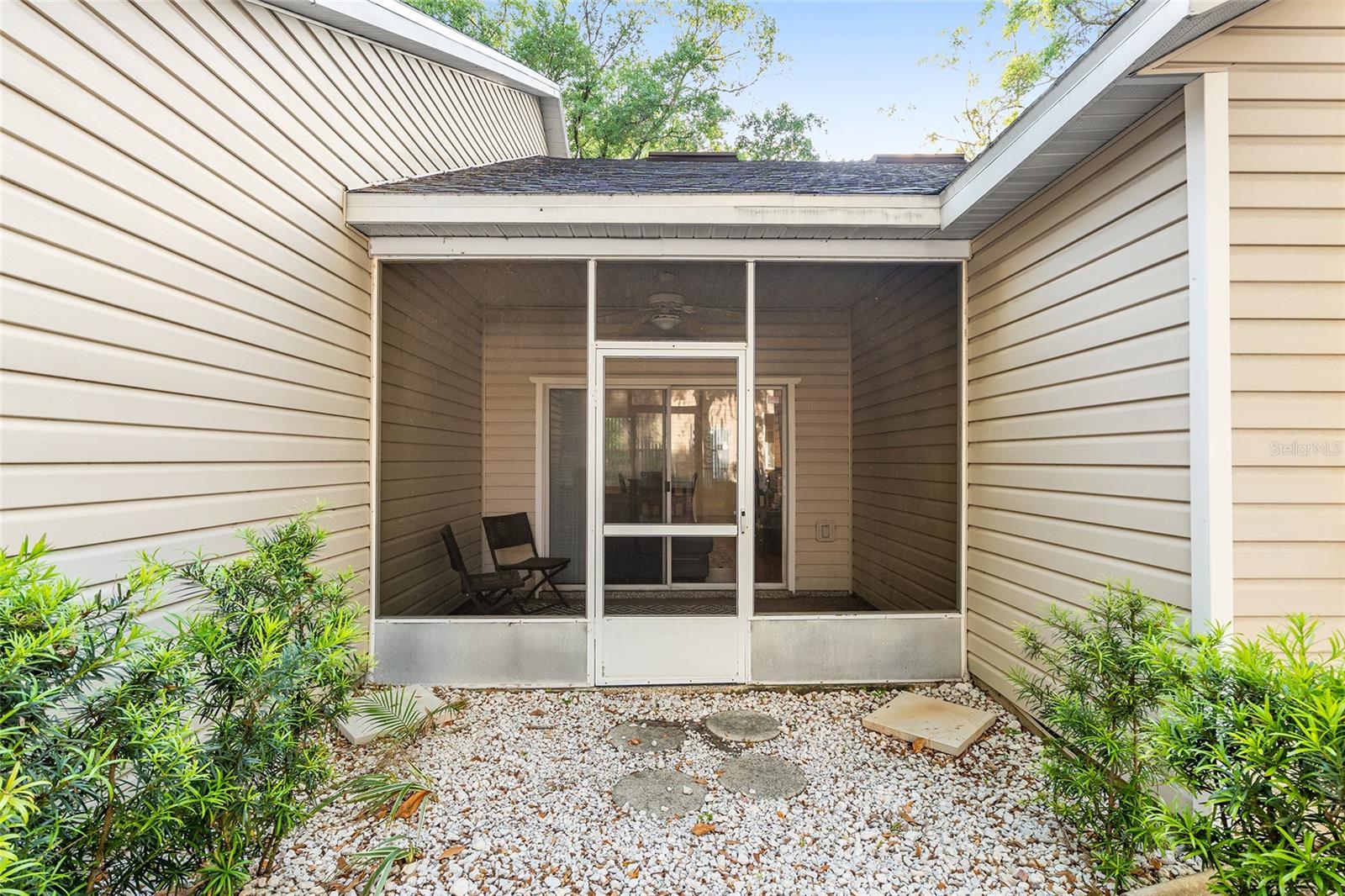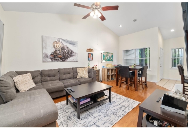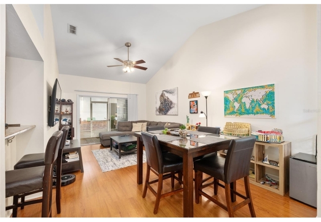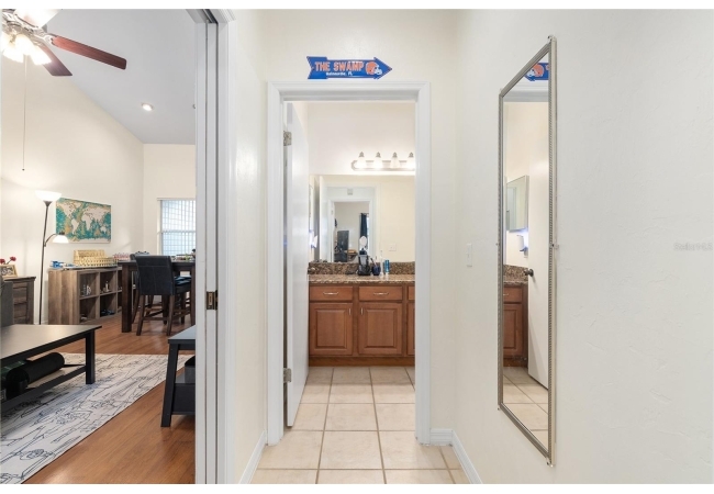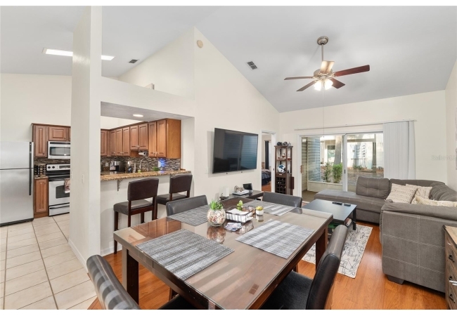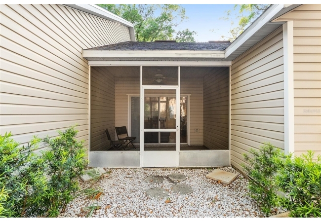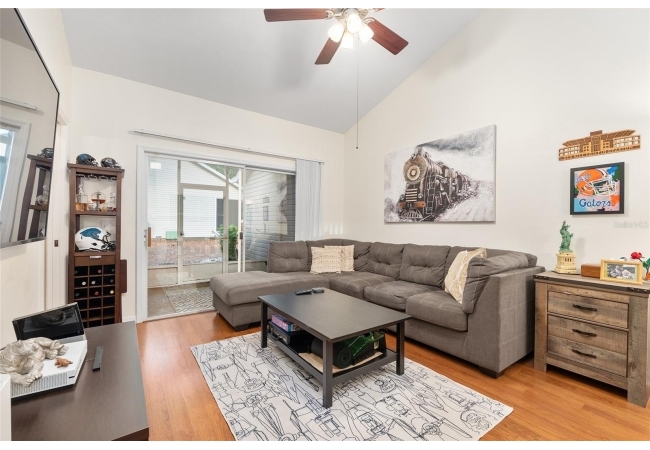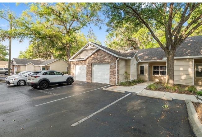 1 bed/1 bath condo with an attached GARAGE in a gated community near UF, UF Health Shands Hospital, I-75, and Celebration Pointe! This well-maintained unit features a spacious living area and separate dining space. The upgraded kitchen includes granite countertops, stainless steel appliances, and wood cabinets, along with a convenient breakfast bar. The generously sized bedroom offers a large walk-in closet. The bathroom features upgraded vanities with granite vanity countertops. Wood-look and tile flooring throughout - NO CARPET! Relax on a private screened-in porch off the living room. Community amenities include gated access, a resort-style pool and hot tub, 24-hour fitness center, clubhouse and business center, tennis and basketball courts. Convenient location with easy access to UF, Shands Hospital, I-75, and Celebration Pointe!