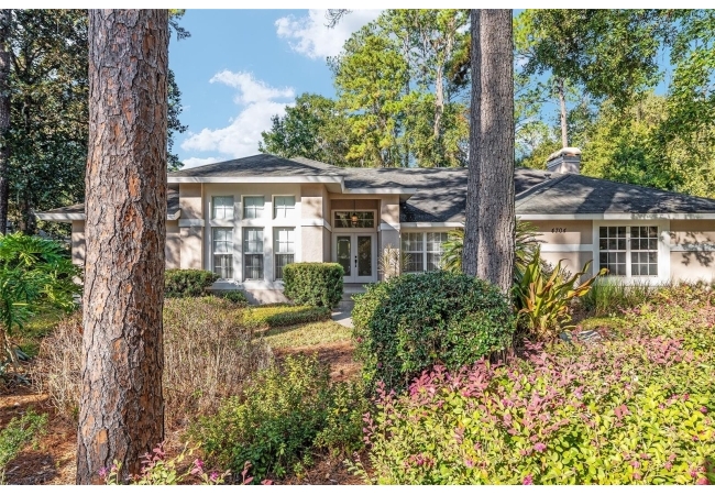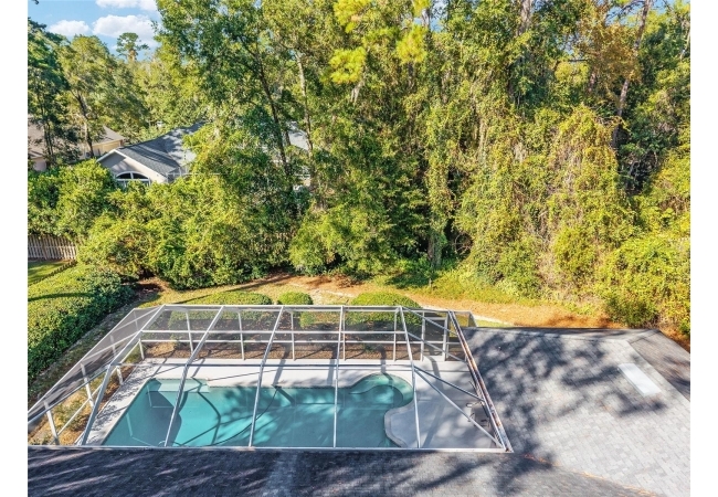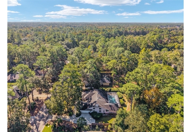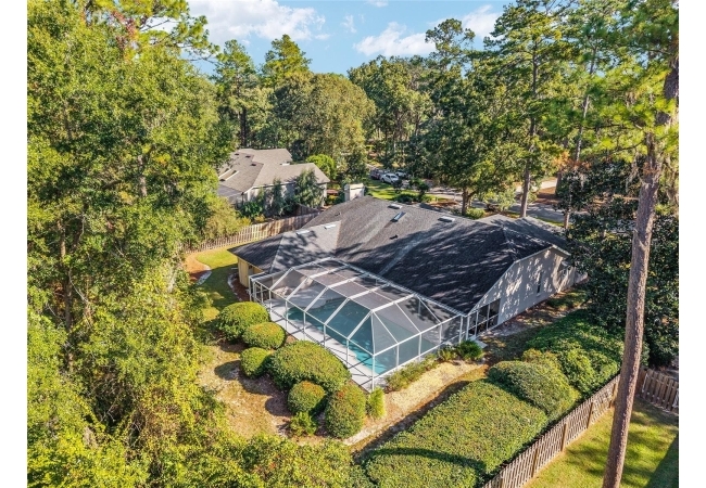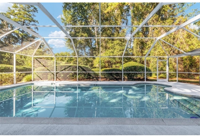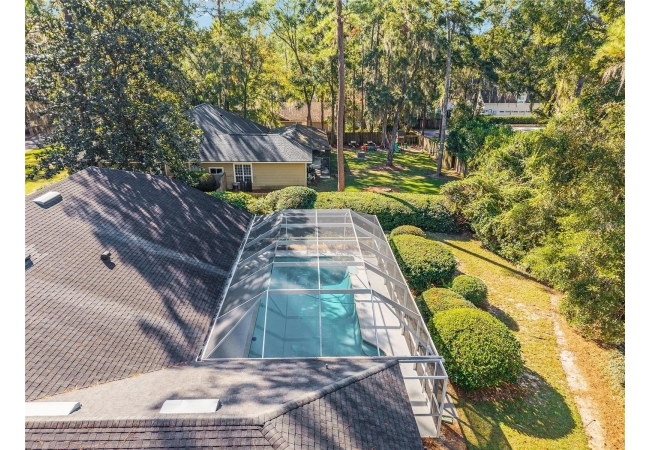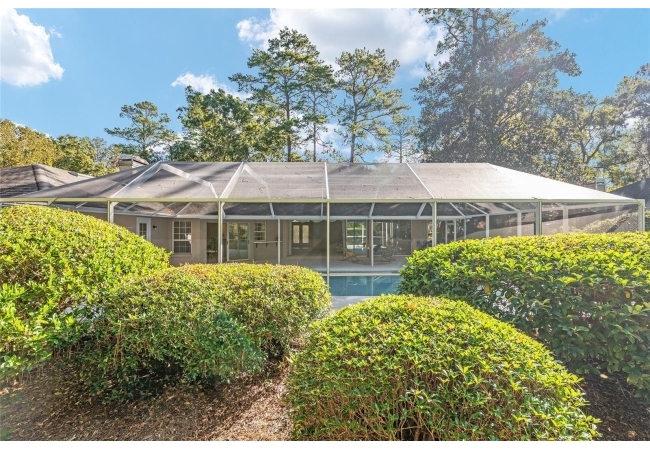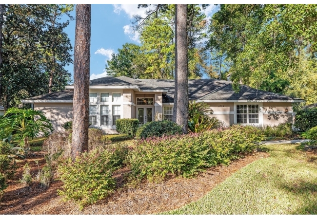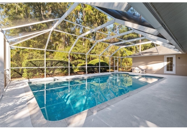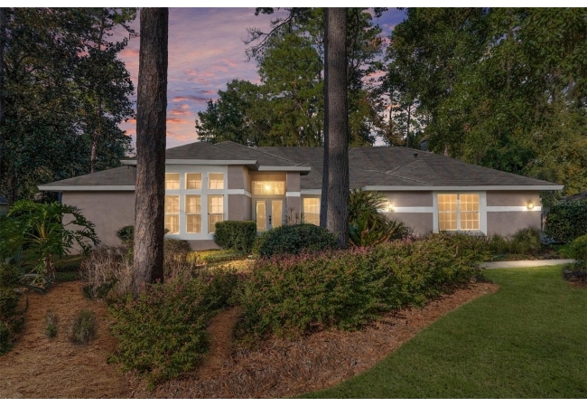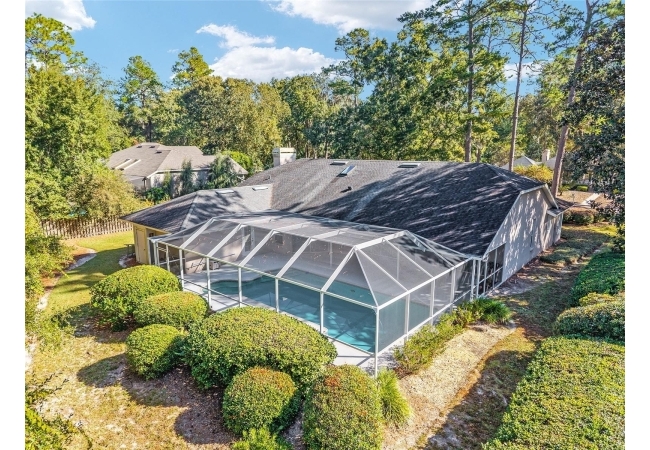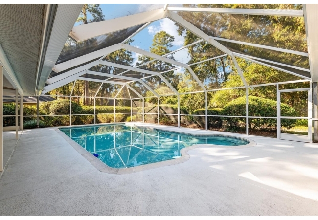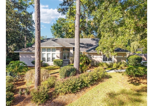 Welcome to Huntington, where tall trees arch over the streets as you drive in, offering you a sense of calm and serenity as you're surrounded by the beauty of nature on the way to your new home. Barry Rutenburg, known nationally for building the best in quality and creating the utmost in luxury, built this fine home with attention to detail to ensure there is space for everything and a place for everyone. As you walk in the door, you are greeted with a large front room with tremendous sliding glass doors which pocket away to reveal a stunning view of the lanai and pool. It is a perfect space for entertaining, or a place to relax and enjoy the outdoors. This home has a rare true 3-way split floor plan which features separate areas for family and/or guests. The owners' suite is very spacious with an additional set of sliding glass doors to the lanai and pool. There are two walk-in closets here, both with mirrored doors. The bathroom is exquisite with a large walk-in shower, and a separate oversized soaking tub to help you unwind. There are also two sinks with lots of counter space, and additional cabinets which provide more counter and storage space. The toilet room is closed off with its' own door for privacy. The second wing of the home has pocket doors and a rear entrance to ensure privacy and easy access to the back section of the home. The third split of the home is a single bedroom with a bathroom that also serves the living spaces of the home. Perfect for the multi-generational family, or a large family who needs space. When it is time for everyone to get together, this home features a large open kitchen with plenty of counter space for the chef, combined with ample counter seating. It is adjacent to the large family room with a wood burning or optional gas fireplace. A kitchen skylight, vaulted family room windows, and 3rd set of sliding glass doors to the pool provide natural light pouring in as far as the eye can see. Outside you'll find mature landscaping that has been meticulously maintained to provide privacy as well as contribute to the elegance of the estate. This home has it all, in a neighborhood close to UF, Santa Fe College, shops, restaurants, parks, medical facilities and so much more. All reasons this Huntington home is a must see!