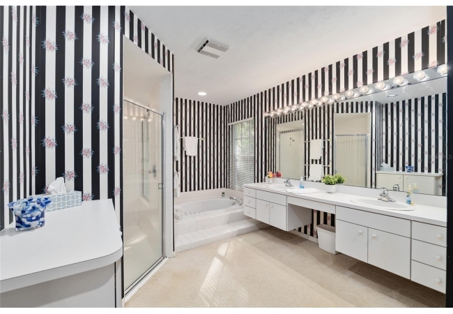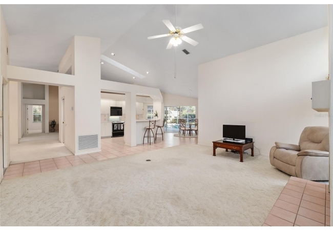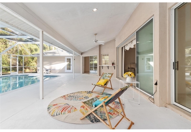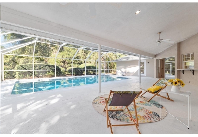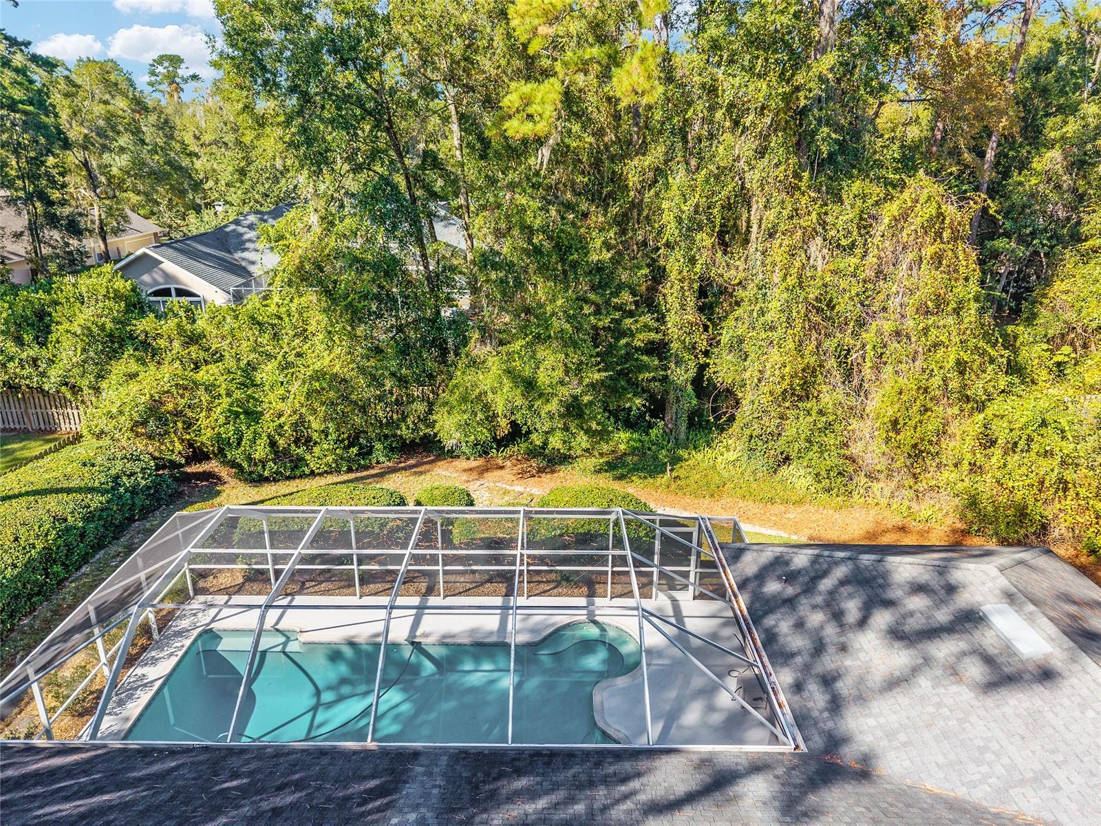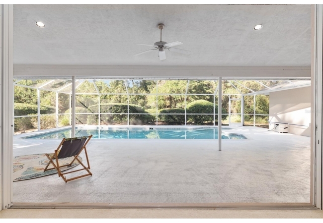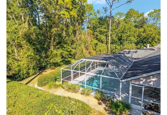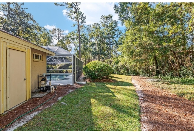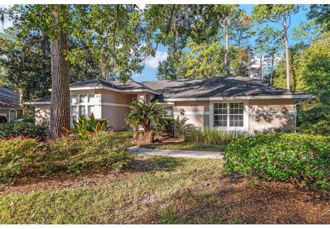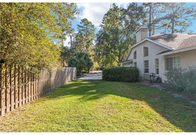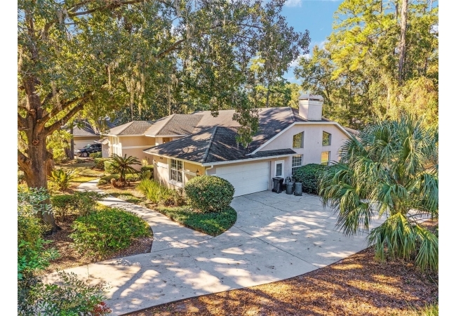 Welcome to Huntington, where tall trees arch over the streets as you drive in, offering you a sense of calm and serenity as you're surrounded by the beauty of nature on the way to your new home. Barry Rutenburg, known nationally for building the best in quality and creating the utmost in luxury, built this fine home with attention to detail to ensure there is space for everything and a place for everyone. As you walk in the door, you are greeted with a large front room with tremendous sliding glass doors which pocket away to reveal a stunning view of the lanai and pool. It is a perfect space for entertaining, or a place to relax and enjoy the outdoors. This home has a rare true 3-way split floor plan which features separate areas for family and/or guests. The owners' suite is very spacious with an additional set of sliding glass doors to the lanai and pool. There are two walk-in closets here, both with mirrored doors. The bathroom is exquisite with a large walk-in shower, and a separate oversized soaking tub to help you unwind. There are also two sinks with lots of counter space, and additional cabinets which provide more counter and storage space. The toilet room is closed off with its' own door for privacy. The second wing of the home has pocket doors and a rear entrance to ensure privacy and easy access to the back section of the home. The third split of the home is a single bedroom with a bathroom that also serves the living spaces of the home. Perfect for the multi-generational family, or a large family who needs space. When it is time for everyone to get together, this home features a large open kitchen with plenty of counter space for the chef, combined with ample counter seating. It is adjacent to the large family room with a wood burning or optional gas fireplace. A kitchen skylight, vaulted family room windows, and 3rd set of sliding glass doors to the pool provide natural light pouring in as far as the eye can see. Outside you'll find mature landscaping that has been meticulously maintained to provide privacy as well as contribute to the elegance of the estate. This home has it all, in a neighborhood close to UF, Santa Fe College, shops, restaurants, parks, medical facilities and so much more. All reasons this Huntington home is a must see!