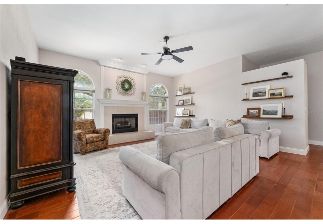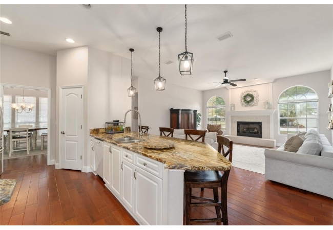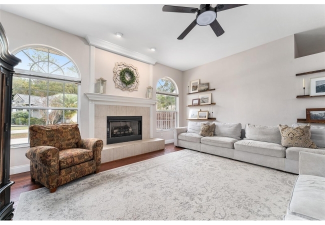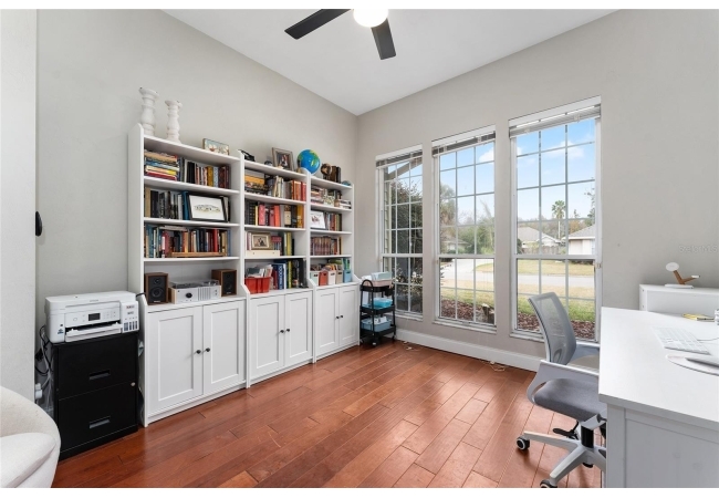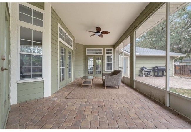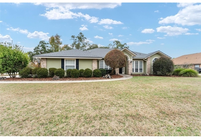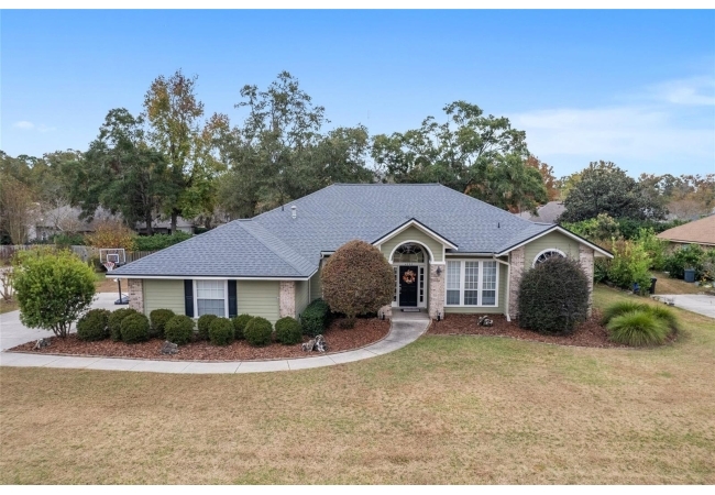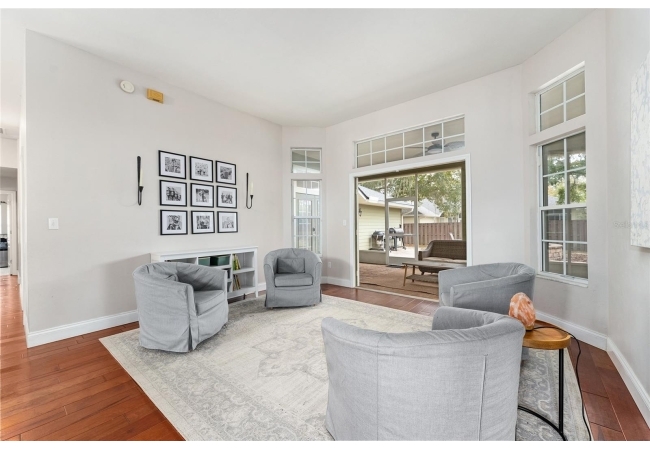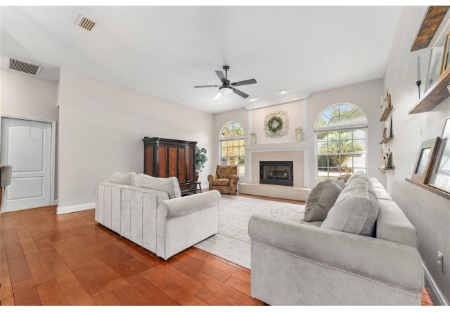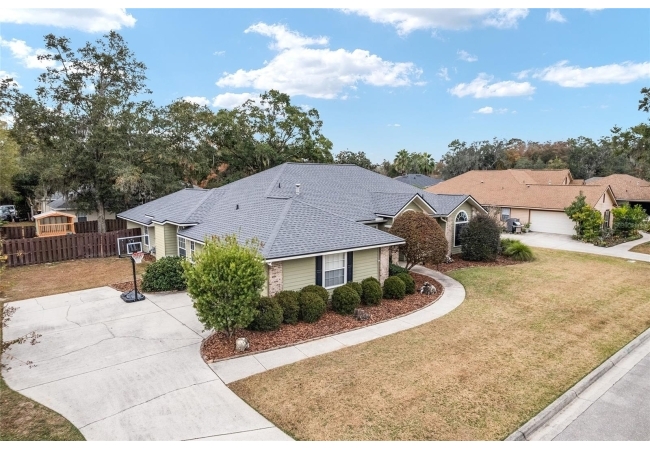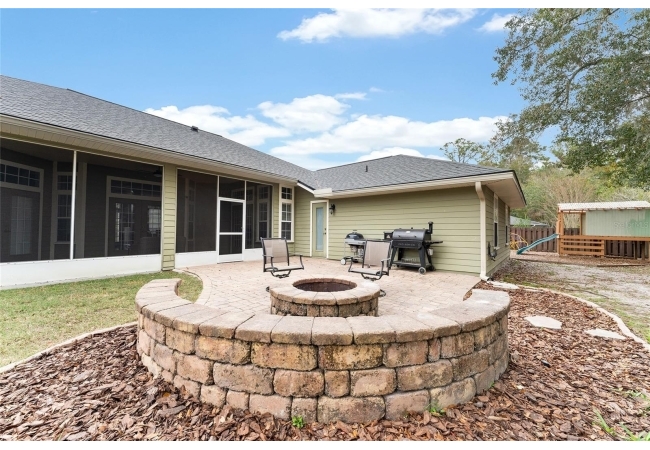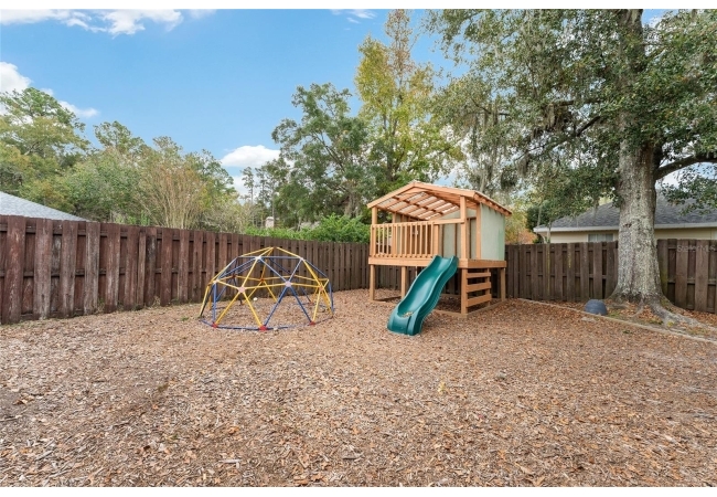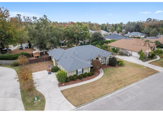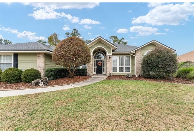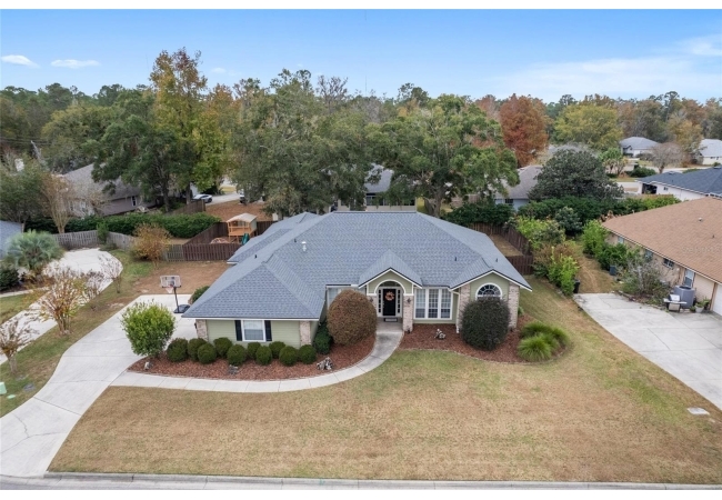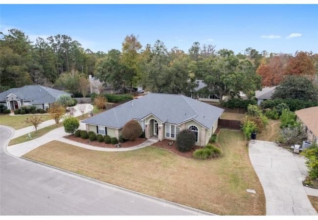 Discover this beautifully updated 4-bedroom, 2.5-bath home with a dedicated office in the desirable Sterling Place community. This move-in-ready home offers modern upgrades, outdoor living and a prime Gainesville location close to top-rated schools, parks, shopping, dining, and major employers. Step inside to find wood flooring throughout—no carpet anywhere—and a spacious family room featuring a gas fireplace. The open layout flows into the kitchen with granite countertops, plenty of cabinetry, stainless steel appliances, a breakfast nook, closet pantry and a separate formal dining room. The owner’s suite is good sized with two custom walk-in closets. The renovated spa-inspired bathroom is a true retreat, showcasing board-and-batten accents, dual vanities, a freestanding soaking tub and a walk-in shower with multiple shower heads, decorative tile and Carrara marble counters. Secondary bedrooms are comfortably sized, and the redesigned guest bath has a new vanity and marble countertops. Enjoy outdoor living with a covered and screened lanai ideal for year-round enjoyment, plus a paver patio with fire pit—the perfect spot to unwind or entertain. Additional highlights include a side-entry two-car garage, full irrigation system, landscape lighting, and a fully fenced backyard. Walking trails near the community. Conveniently located minutes from I-75, US-441, UF/Shands, NFRMC, shopping and restaurants. This home offers the best of Gainesville living.