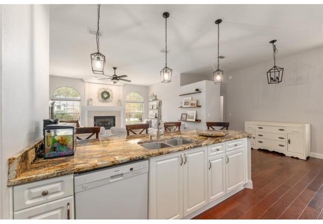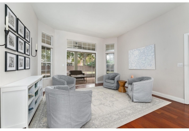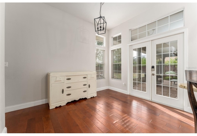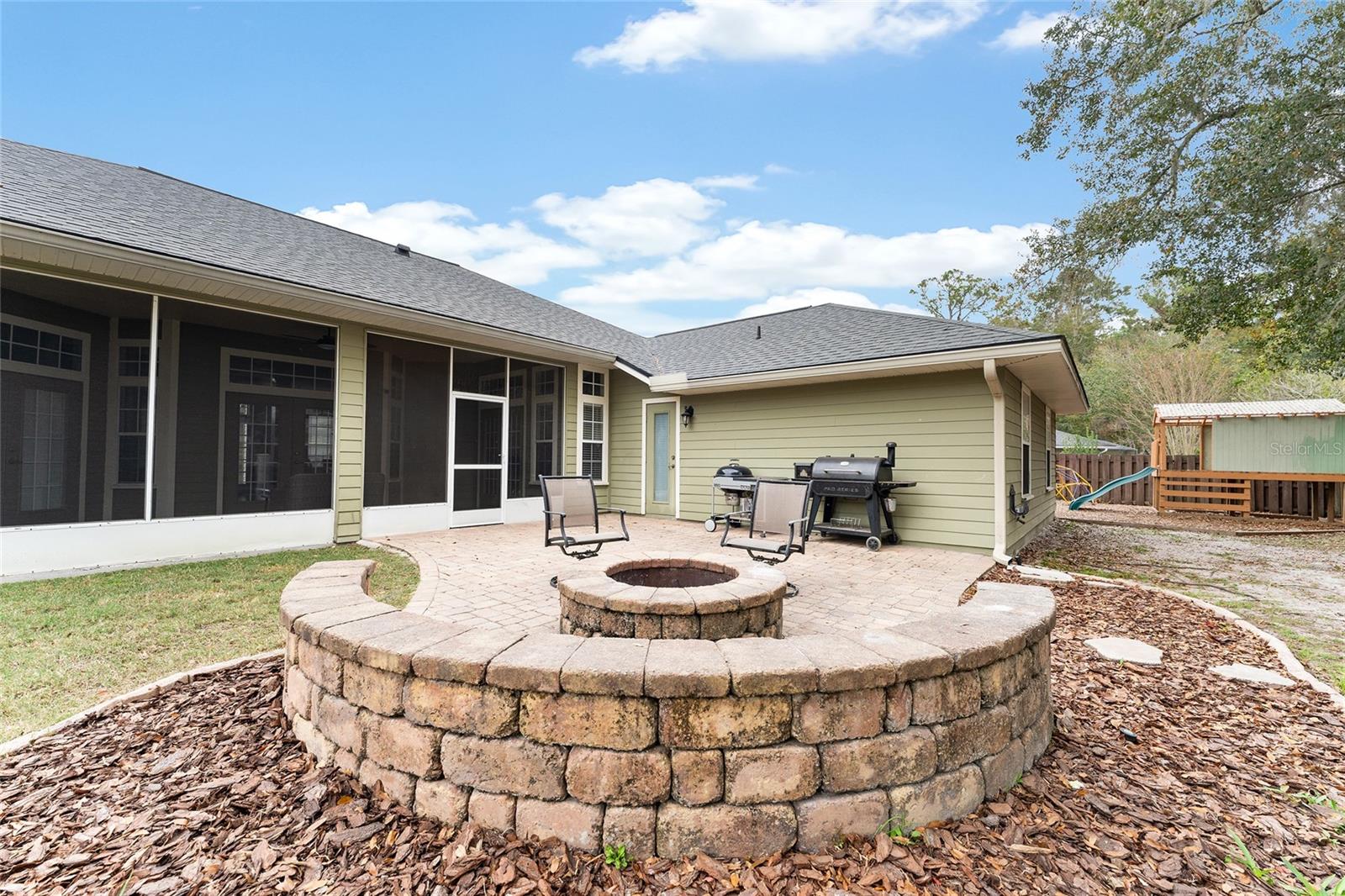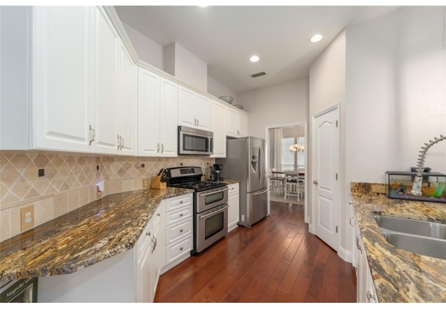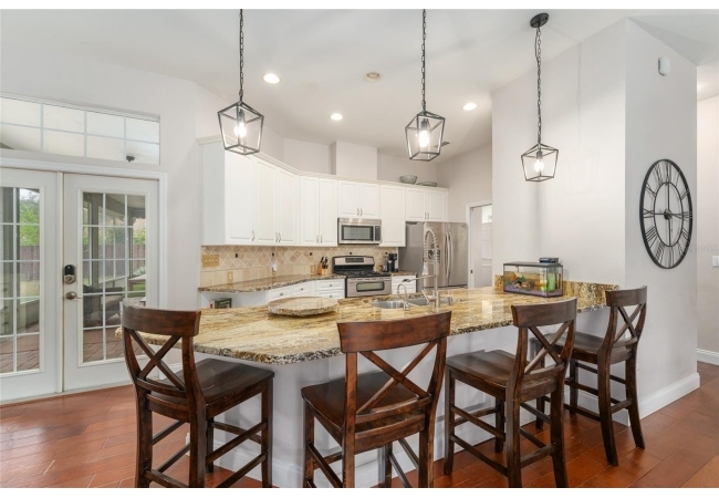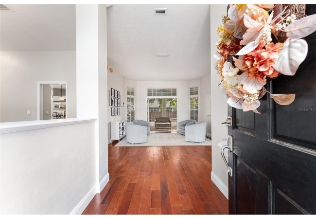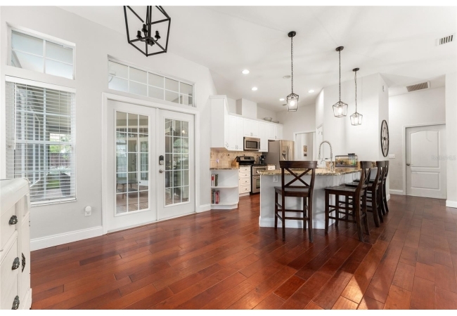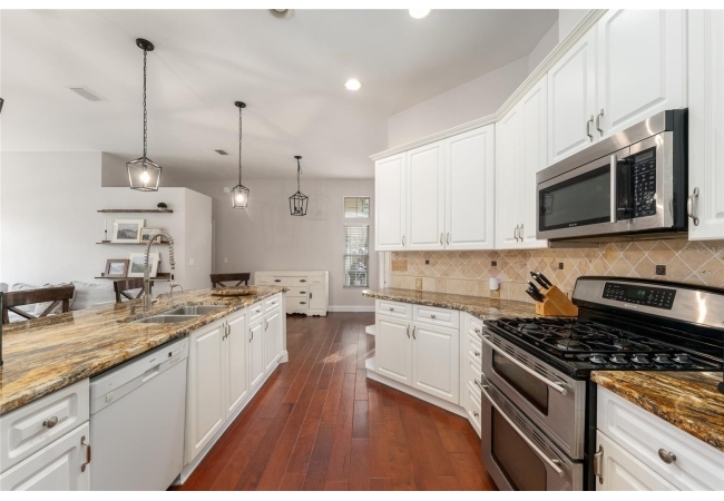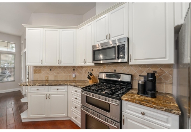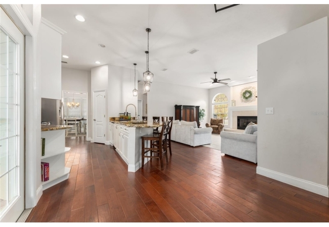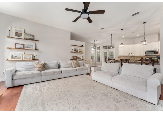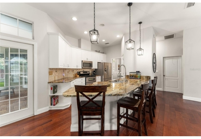 Discover this beautifully updated 4-bedroom, 2.5-bath home with a dedicated office in the desirable Sterling Place community. This move-in-ready home offers modern upgrades, outdoor living and a prime Gainesville location close to top-rated schools, parks, shopping, dining, and major employers. Step inside to find wood flooring throughout—no carpet anywhere—and a spacious family room featuring a gas fireplace. The open layout flows into the kitchen with granite countertops, plenty of cabinetry, stainless steel appliances, a breakfast nook, closet pantry and a separate formal dining room. The owner’s suite is good sized with two custom walk-in closets. The renovated spa-inspired bathroom is a true retreat, showcasing board-and-batten accents, dual vanities, a freestanding soaking tub and a walk-in shower with multiple shower heads, decorative tile and Carrara marble counters. Secondary bedrooms are comfortably sized, and the redesigned guest bath has a new vanity and marble countertops. Enjoy outdoor living with a covered and screened lanai ideal for year-round enjoyment, plus a paver patio with fire pit—the perfect spot to unwind or entertain. Additional highlights include a side-entry two-car garage, full irrigation system, landscape lighting, and a fully fenced backyard. Walking trails near the community. Conveniently located minutes from I-75, US-441, UF/Shands, NFRMC, shopping and restaurants. This home offers the best of Gainesville living.