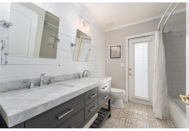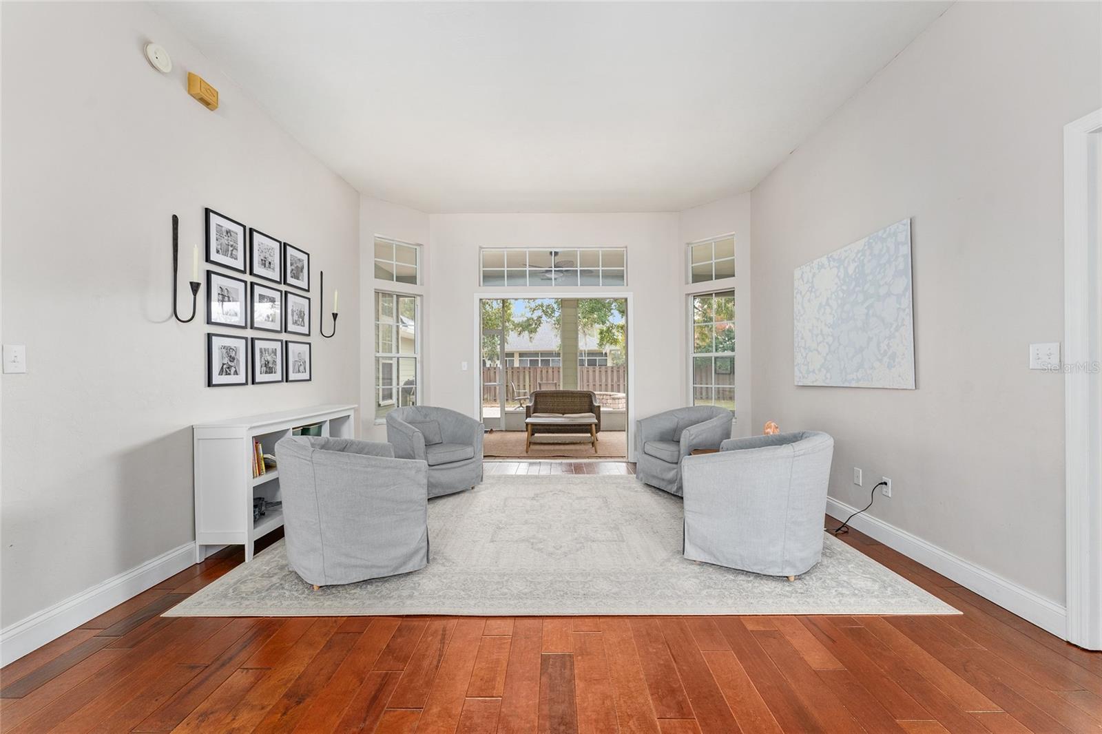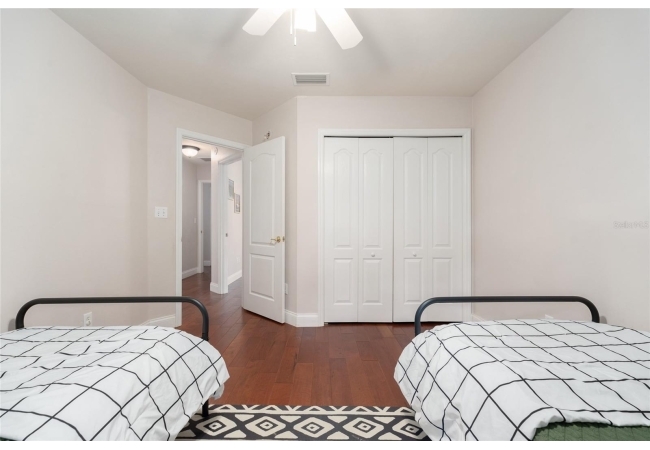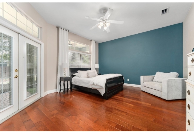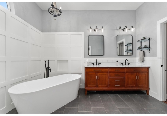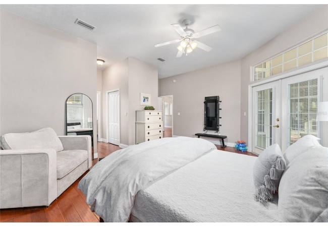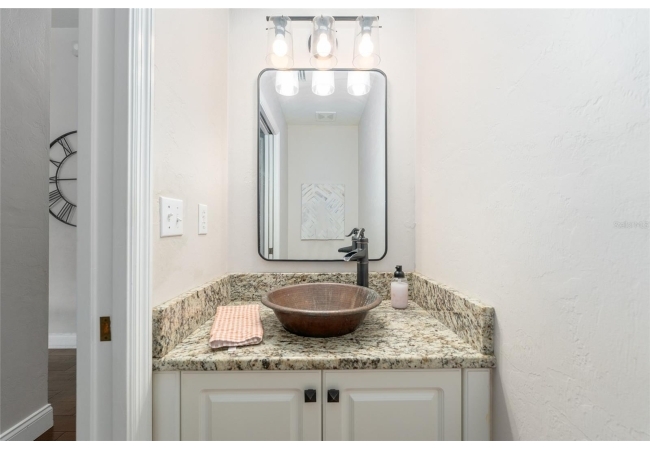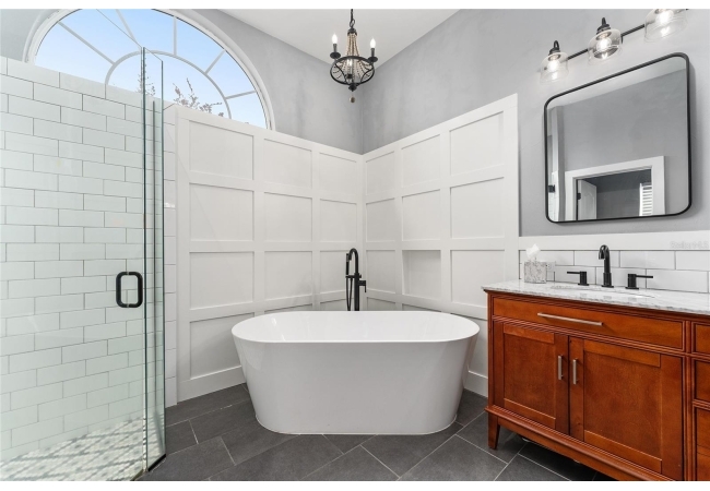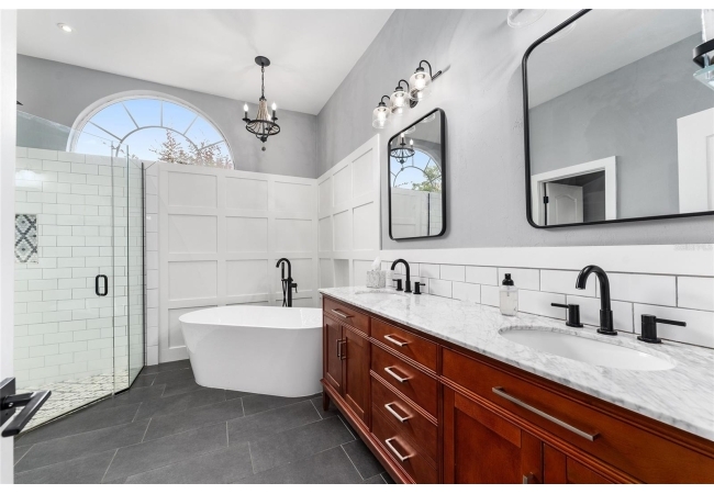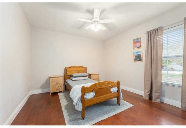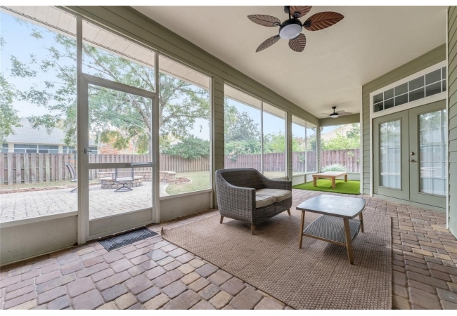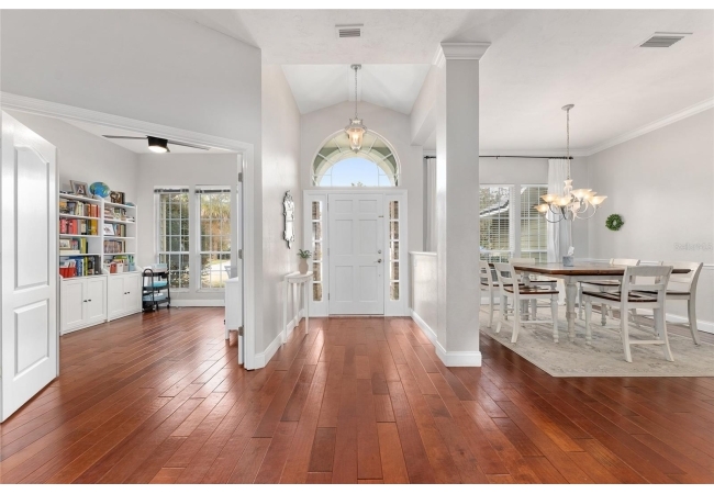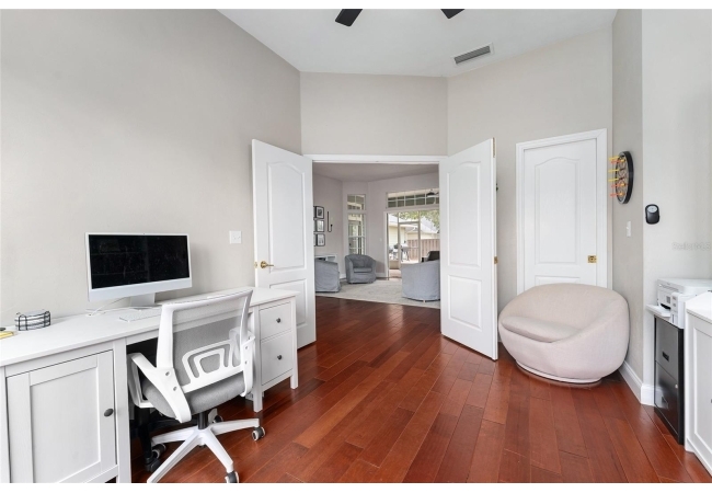 Discover this beautifully updated 4-bedroom, 2.5-bath home with a dedicated office in the desirable Sterling Place community. This move-in-ready home offers modern upgrades, outdoor living and a prime Gainesville location close to top-rated schools, parks, shopping, dining, and major employers. Step inside to find wood flooring throughout—no carpet anywhere—and a spacious family room featuring a gas fireplace. The open layout flows into the kitchen with granite countertops, plenty of cabinetry, stainless steel appliances, a breakfast nook, closet pantry and a separate formal dining room. The owner’s suite is good sized with two custom walk-in closets. The renovated spa-inspired bathroom is a true retreat, showcasing board-and-batten accents, dual vanities, a freestanding soaking tub and a walk-in shower with multiple shower heads, decorative tile and Carrara marble counters. Secondary bedrooms are comfortably sized, and the redesigned guest bath has a new vanity and marble countertops. Enjoy outdoor living with a covered and screened lanai ideal for year-round enjoyment, plus a paver patio with fire pit—the perfect spot to unwind or entertain. Additional highlights include a side-entry two-car garage, full irrigation system, landscape lighting, and a fully fenced backyard. Walking trails near the community. Conveniently located minutes from I-75, US-441, UF/Shands, NFRMC, shopping and restaurants. This home offers the best of Gainesville living.