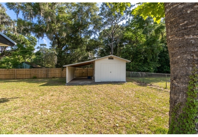 But wait, there’s more! Imagine transforming the freshly painted concrete block shed, with a new roof in 2025 and electricity, into your ultimate sanctuary. Whether it’s your dream home office, creative workshop, or a personal retreat like a man cave, she shed, or hobby haven, this space is a blank canvas for your imagination. Fresh exterior paint in 2025, adding vibrant newness to the residence.