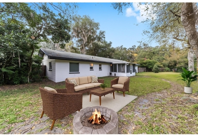 One or more photo(s) has been virtually staged. Welcome to this beautifully updated concrete block home perfectly situated on a gorgeous, wooded lot just minutes from UF, Shands, the VA, and downtown Gainesville! This 3-bedroom, 2-bath residence offers comfort, character, and convenience—located only 3.5 miles from UF/Shands and 3.2 miles from Publix and local dining. Inside, you’ll find a spacious family room, a large dining area open to the kitchen, and beautiful granite countertops with stainless steel appliances. A new, inside laundry room has also been added complete with washer and dryer. The home has been freshly painted and features new front gutters, new interior lighting, new ceiling fans, a new electric panel, new tankless water heater, new foam insulation in attic to provide for better utility bills and more storage, new tile flooring throughout and has been re-plumbed.