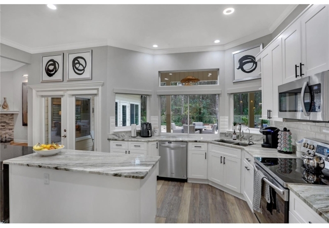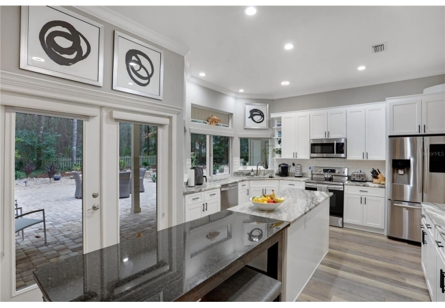 Discover refined elegance in this completely updated five-bedroom, three-and-a-half-bath home, ideally located on a private cul-de-sac in the Haile Plantation Spalding Place neighborhood. Backing up to a preservation area, this residence offers exceptional privacy and picturesque natural views.