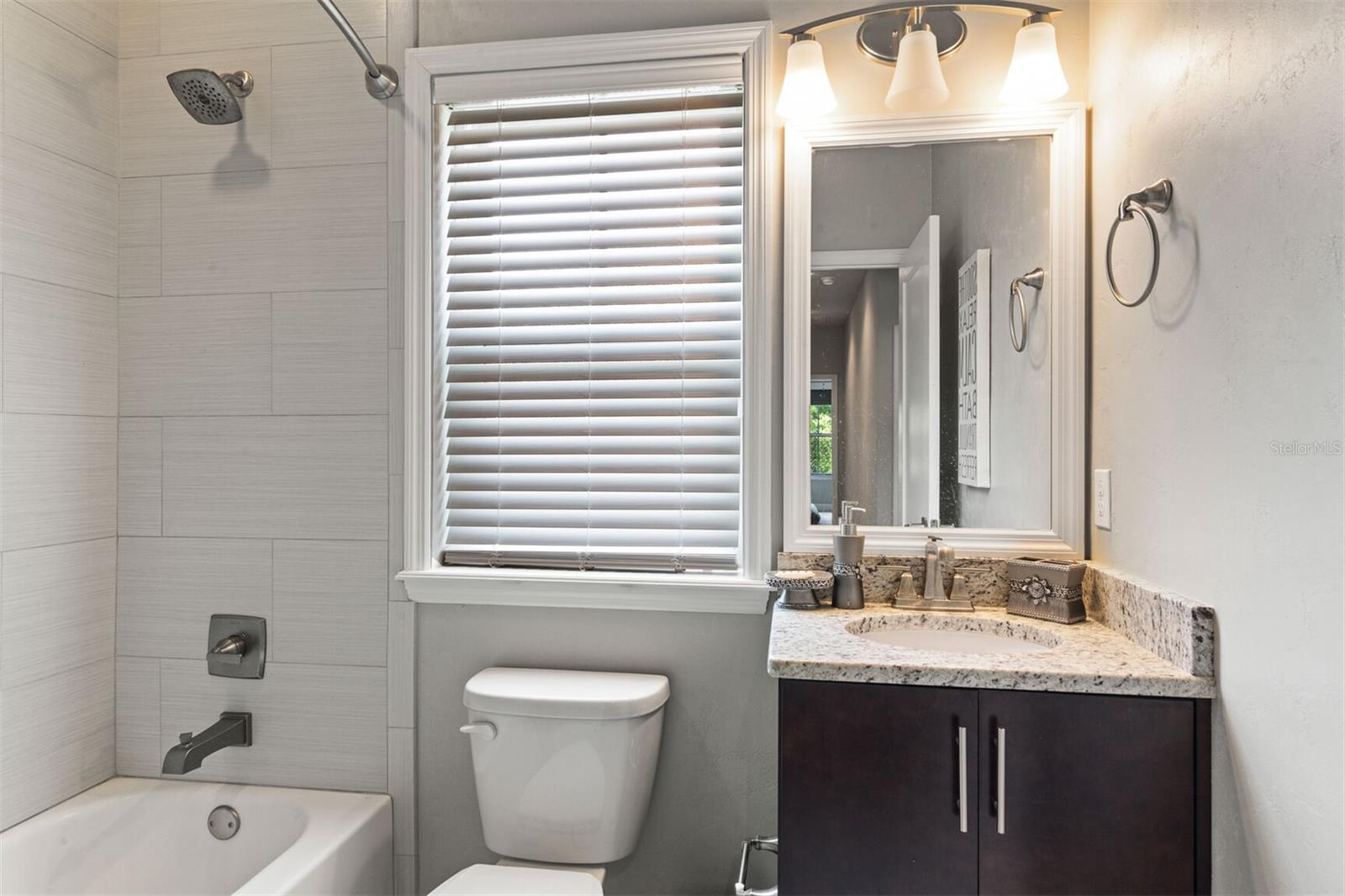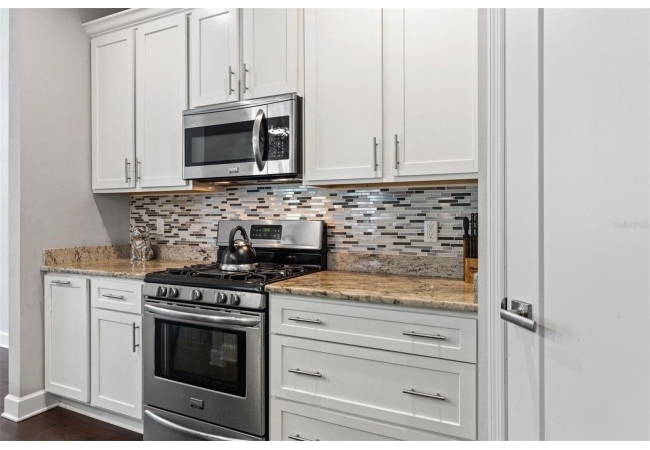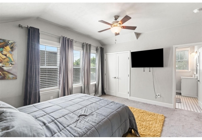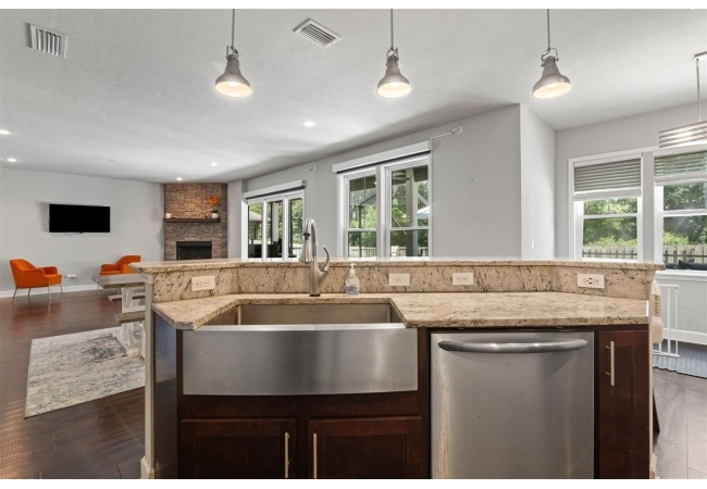 Upstairs, you’ll find two guest bedrooms and two owner’s suites with private bathrooms, as well as a generously sized laundry area with a sink for added convenience. The home is filled with custom features, including stainless steel appliances, a gas stove, stylish light fixtures, remote-controlled privacy curtains in the living area, a frameless glass shower, beautiful tile work in the bathrooms, engineered hardwood flooring in the main living areas, granite countertops in the kitchen and bathrooms, and 9-foot ceilings on both floors.