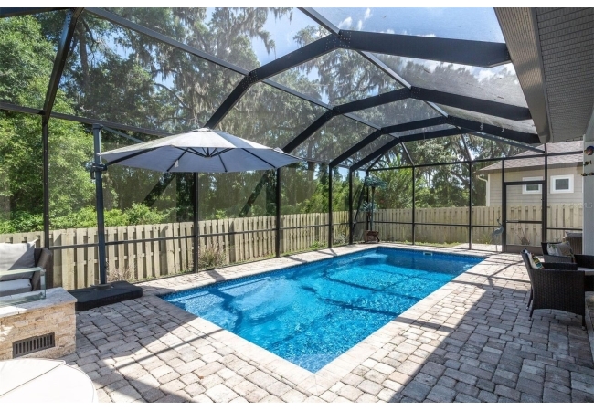 Step outside to your private backyard oasis. The screened-in pool area includes a large covered lanai, a paver patio, and a fully fenced yard—perfect for entertaining guests or simply relaxing in comfort and privacy. Enjoy Florida living all year round!