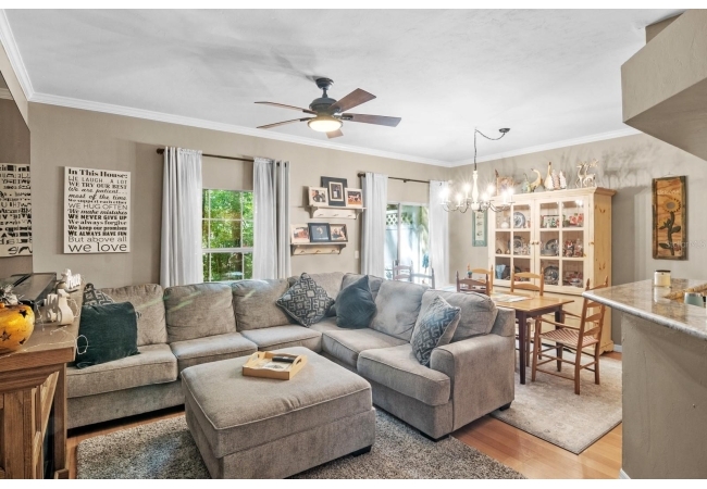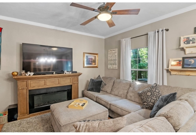 Discover comfort and convenience in this well-maintained 3-bedroom, 2.5-bath townhome located in the sought-after Monticello at Mill Pond community—just minutes from the University of Florida, Ben Hill Griffin Stadium, and UF Health. The kitchen features sleek granite countertops, modern stainless steel appliances, and classic white cabinetry. Throughout the home, you’ll find soft, neutral tones from a fresh repaint in 2024, updated lighting, and detailed crown molding. This home also features a 2025 installed roof, a 2023 AC unit, a 2024 hot water heater, and a 2023 primary bathroom shower upgrade. Each bedroom is generously sized, filled with natural light, and offers plenty of room to relax or work from home. Enjoy the attached 1-car garage with extra storage, a dedicated driveway space, and ample guest parking. The rear patio opens to a quiet green space—ideal for unwinding or entertaining. Residents have access to a well-kept community pool and are just moments away from shopping, dining, and recreational options. This is a standout opportunity in one of Gainesville’s most accessible neighborhoods.