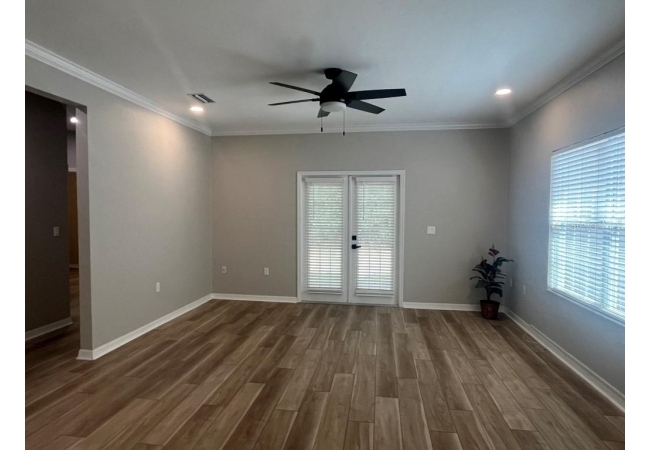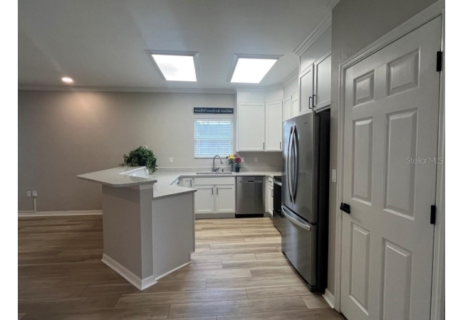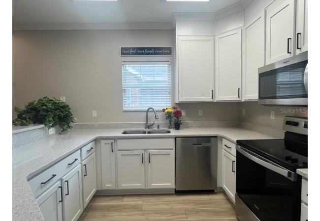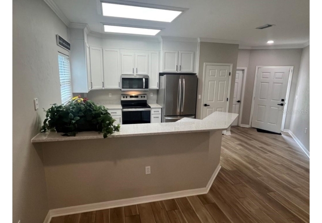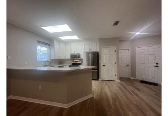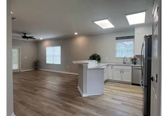 Enjoy one of Gainesville’s most sort after communities Blues Creek located at the Gardens. Take comfort with maintenance-free living in this beautiful, 2-bedroom, 2-bath single-family home on a tree lined street, filled with natural light, character that feels instantly welcoming. The bedrooms are ideally split for added privacy. With a seamless open floor plan and easy flow, the entryway leads to a light and bright kitchen, complete with a full set of new appliances (2024), including a new garbage disposal. The “fully” remodeled kitchen (2024) with all wood white shaker cabinets features a picture window over the sink, pantry, solid surface countertops, a peninsula island with seating, and a spacious pantry, all overlooking the dining area and large living room making it a dream for easily hosting friends and family on special occasions. Off the living room with crown molding, garden doors open to a covered porch, perfect for relaxing with a good book or beverage while watching the sun set. Additional highlights include a two-car garage with pull-down attic storage is where the laundry is located, hard-surface flooring throughout with new luxury vinyl plank flooring in the main living areas and bedrooms. The primary suite is highlighted by a classic bay window, a large walk-in closet with shelving, and an ensuite with double sinks and newly installed shower (2024) and the HVAC is only 8yrs old. At the other end of the hall is a guest bedroom and full guest bath. The rear covered porch is a perfect spot to relax and unwind. Zoned for schools: Talbot Elementary, Ft. Clarke Middle and Gainesville High. Enjoy a truly low-maintenance lifestyle where the HOA fees cover all lawn care, exterior maintenance, including the siding and roof (3yrs). Nestled in a lovely, well-kept walkable community with an array of amenities, including a pool, tennis courts, a clubhouse for hosting events, and direct access to scenic nature trails for hiking and biking. IQ Fiber AT&T internet is available. Blues Creek is located just minutes from Publix, Fresh Market, Starbucks, and popular dining spots along NW 43rd Street and Millhopper Road. Plus, you’re only a short drive to the University of Florida, Santa Fe College UF, VA, NFR and Shands hospitals. Whether you are a for first-time buyer, downsizing or just looking for a home with charm, comfort, with a premier Gainesville address this is the one, so don’t wait. Call today for your private viewing!