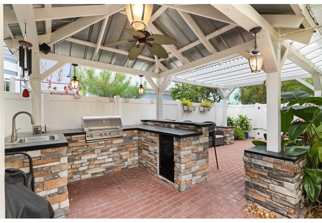This charming 4-bedroom, 2.5-bath home is located in the quiet community of Hillcrest, a centrally located neighborhood known for its Conch-style architecture and low-maintenance living. Here, you’re just steps from Cofrin Park and Gainesville Health & Fitness, and less than three miles from the University of Florida, I-75, medical facilities, and shopping—making it arguably one of the most convenient locations in Gainesville. Love being outdoors but not yard work? This home makes it possible. Enjoy two inviting front porches or unwind on the spacious back patio, complete with a covered pergola featuring a built-in grill, sink, and refrigerator—perfect for outdoor dining and entertaining. Inside, beautiful hardwood floors lead you into a naturally lit living room with a gas fireplace and a generous serving bar that opens to the kitchen. The kitchen features granite countertops, a gas range, stainless steel appliances, and an additional serving bar to the eat-in area—thoughtful details that make hosting easy and enjoyable. The first-floor primary suite offers convenience and comfort, including a soaking tub, double vanity, and walk-in closet. A half bath is located just around the corner, ideal for guests. Upstairs, you’ll find three additional bedrooms, a full bathroom, a central, cozy reading nook and and a large screened-in porch with a swing. Don’t let this unique listing pass you by. Schedule a showing today.