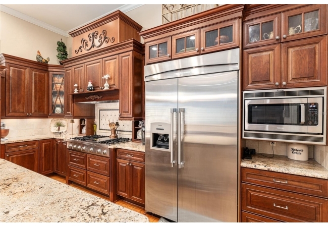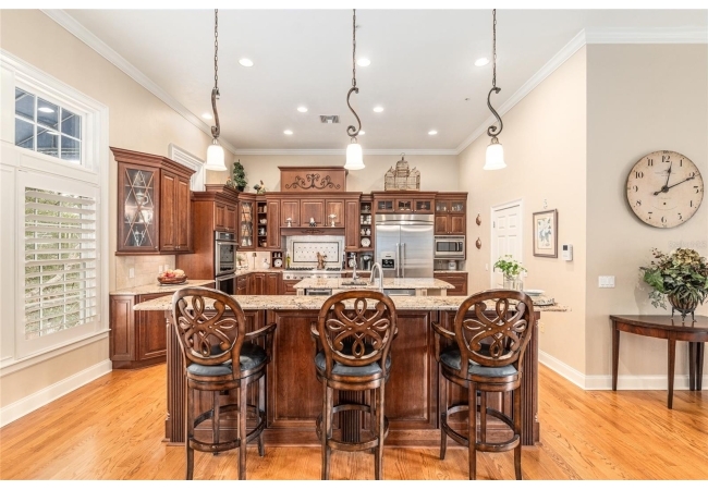 Multiple covered balconies allow for enjoyment of the tranquil Village views and include a private summer kitchen for alfresco dining and grilling.