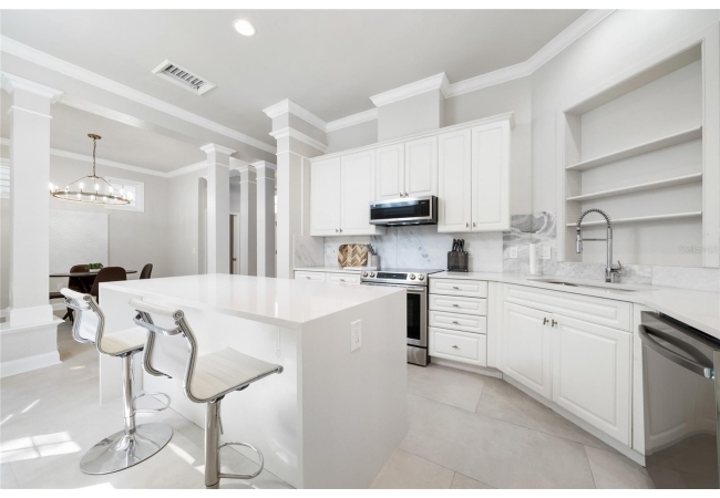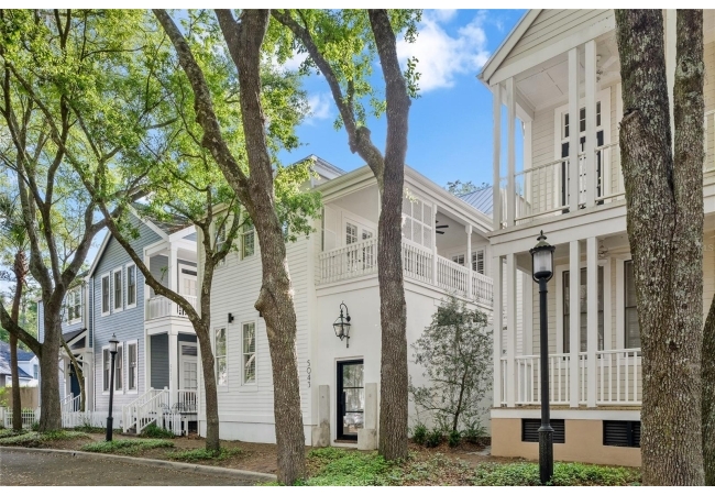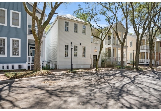 Discover this beautifully updated 2025 Charleston-style home located in the heart of Haile Village Center. The property includes 2 bedrooms and 2.5 bathrooms in the main residence, plus a private 1 bedroom, 1 bathroom carriage-style apartment with a full kitchen and separate entrance—ideal for extended family, guests, or generating additional rental income.