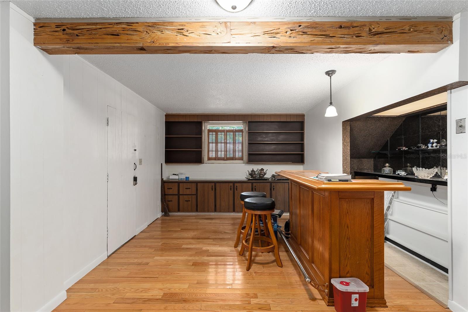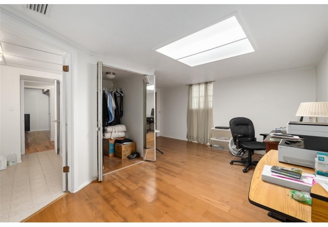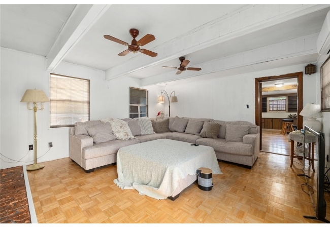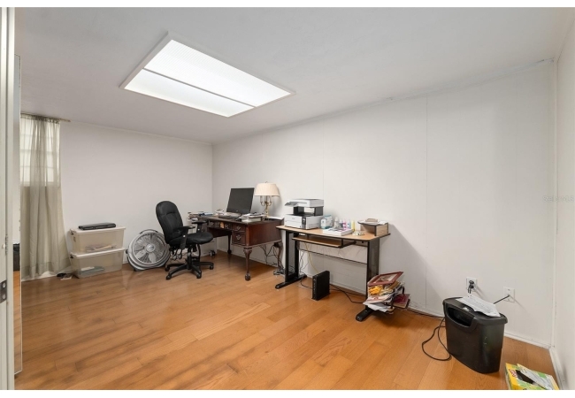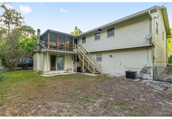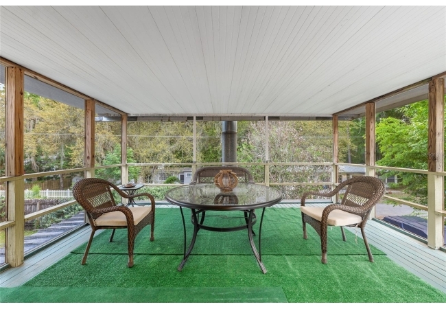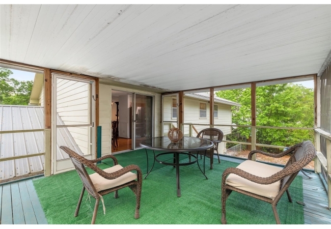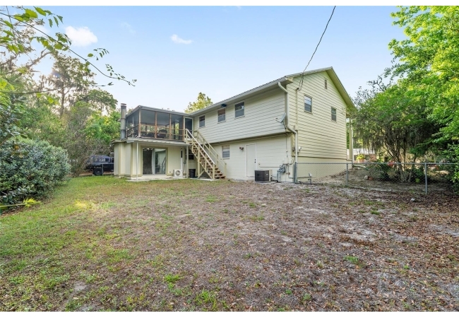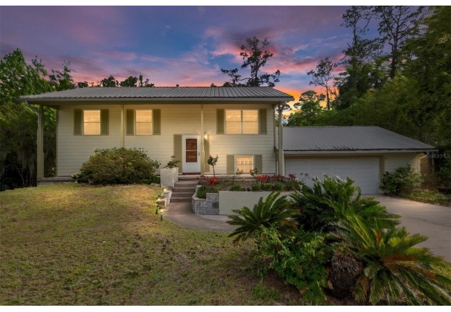 Looking for a solid home with room to spare? This concrete-block home features a metal roof (2019), hardwood floors, and ample living space on 2 floors, making it perfect for multi-generational living. This friendly neighborhood is close to an elementary school, but at the end of a cul-de-sac, so there is no traffic that comes with that close proximity. Upstairs are three bedrooms and a full bath, closets, dining, and a living room. There is a screened-in balcony off the dining room, perfect for morning coffee or sunset dinners. The porch has stairs leading down to a fenced backyard. Downstairs are a full bath, an office, a den, a rec room, and a primary bedroom with a private entrance. This versatile property has been well-maintained, with a large garage featuring automatic doors on both sides, big enough for a shop bench and working area if desired.