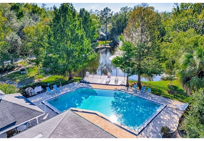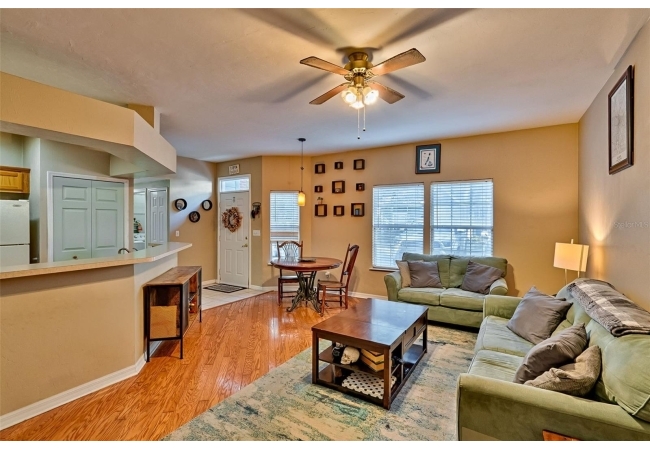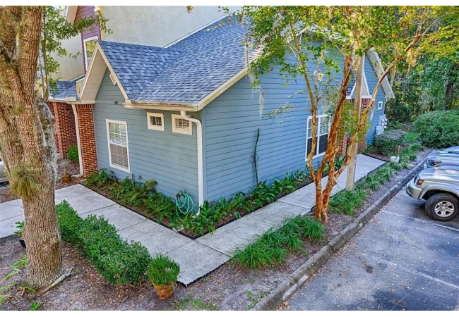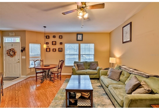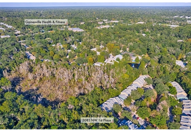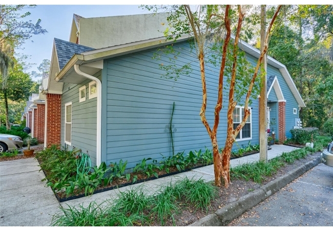Come enjoy living in a very convenient location in this well-maintained end unit home. As you walk in the hard wood floors are beautiful and comfortable that span throughout the living space. The open kitchen with stainless appliances, expansive counter space will allow you to come home to cook great meals for everyone. The living space is large for your furniture and big TV! The split floor plan gives everyone space and privacy. The big main bedroom has walk in closet, nice updated vanity in bathroom with walk in shower with glass style subway tiled walls and glass door. The guest bedroom is good size for friends and family to enjoy. Hall bathroom has updated vanity and tub/shower combo. This home backs to a serene, wooded space that creates privacy along with peace and quiet. Almost as nice as the home, the location is tough to beat being walking distance to Gainesville Health and Fitness Center, a short bike ride to UF and close to North Florida Regional Hospital and I-75. The neighborhood is great for walking with a nice pool to enjoy and a pond to relax by. Great home, great neighborhood and location, what else do you need!