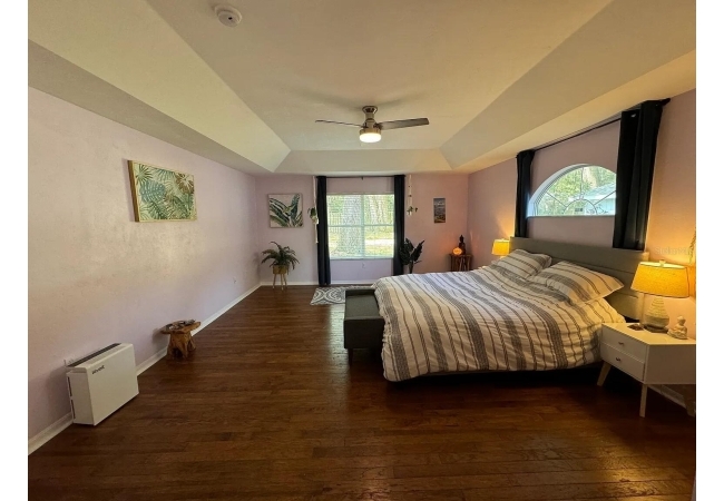 This charming, serene home is tucked away in a peaceful neighborhood in SW Gainesville, ideally located near UF, Shands, North Florida Hospital, and all essential amenities. Surrounded by lush greenery, it provides a tranquil atmosphere with plenty of space to relax. The backyard opens to picturesque Haile Plantation trails, with Haile Village Center and its lively Farmers Market just a short walk away. The property is also within walking distance of Wiles Elementary and Kanapaha Middle School, both zoned for this location. Inside, the home has four spacious bedrooms with an additional room that could be transformed into a fifth bedroom, gym, or home office. The freshly painted interior features a thoughtful split floor plan, for those seeking privacy. The oversized master suite includes a charming bathroom with a shower and soaking tub, as well as a generous walk-in closet. Spanning over 2,800 square feet, the house provides ample space for hosting friends and family, with a formal dining room complementing a large, open living area. Additional conveniences include a new, energy-efficient HVAC system designed to keep utility costs down. A Samsung washer and dryer are included in the sale. The two-car garage is equipped with a 240V outlet for EV charging. This home combines comfort, convenience, and a beautiful setting, for anyone looking to enjoy Gainesville living at its finest. Currently occupied by tenant till 03/31/2026.