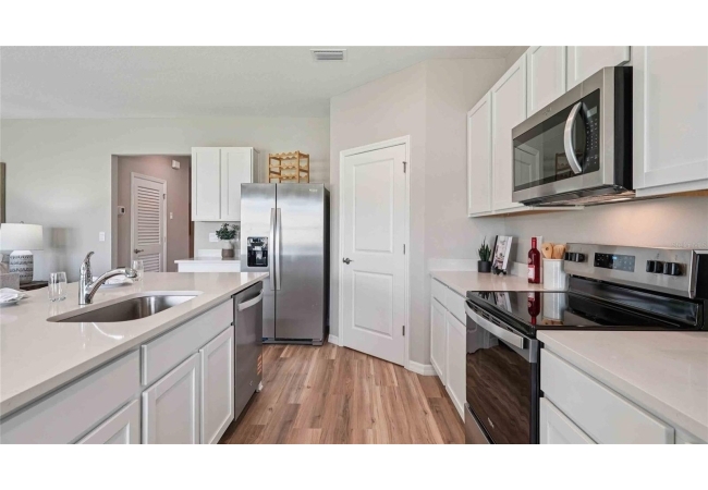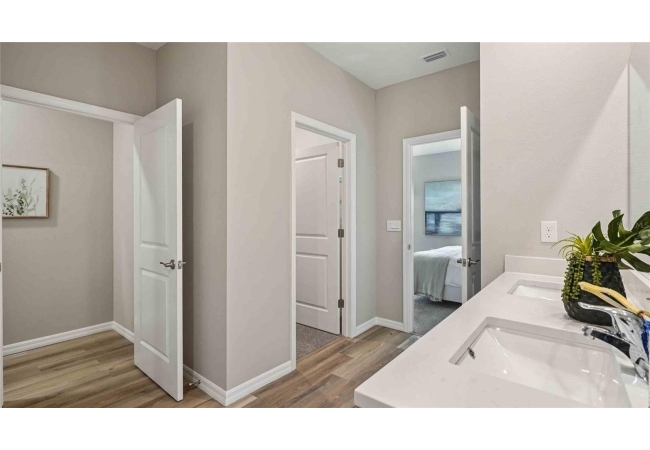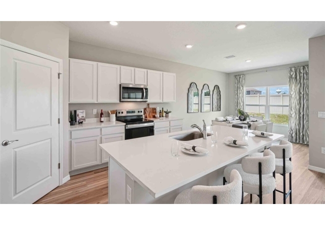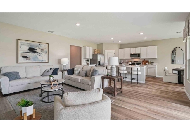 One or more photo(s) has been virtually staged. Under Construction. The Madison is a thoughtfully designed 3-car garage home with an inviting open-concept layout perfect for all families. As you enter the foyer, you're greeted with two guest bedrooms and a shared guest bathroom. Across the hallway you will find the laundry room, linen closet, and a third guest bedroom complete with an ensuite bathroom. Heading into the kitchen, there is a large kitchen island with quartz countertops, stainless-steel appliances, and a spacious walk-in pantry. The kitchen overlooks the great room and dining area flowing into the outdoor covered lanai. Next to the living room is the primary bedroom with a double vanity, quartz countertops, and two closets. Bedroom four has an ensuite bathroom and is located next to the designated laundry room. The Madison is the epitome of modern living and includes a state-of-the-art smart home system. Pictures, photographs, colors, features, and sizes are for illustration purposes only and will vary from the homes as built. Home and community information including pricing, included features, terms, availability and amenities are subject to change and prior sale at any time without notice or obligation. CRC057592.