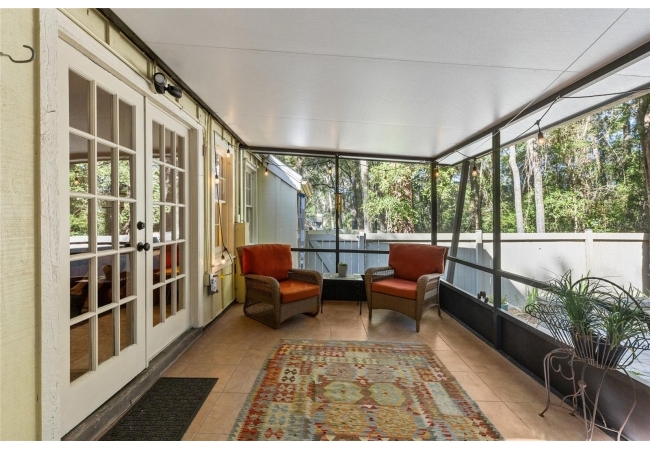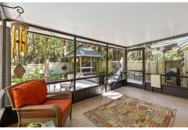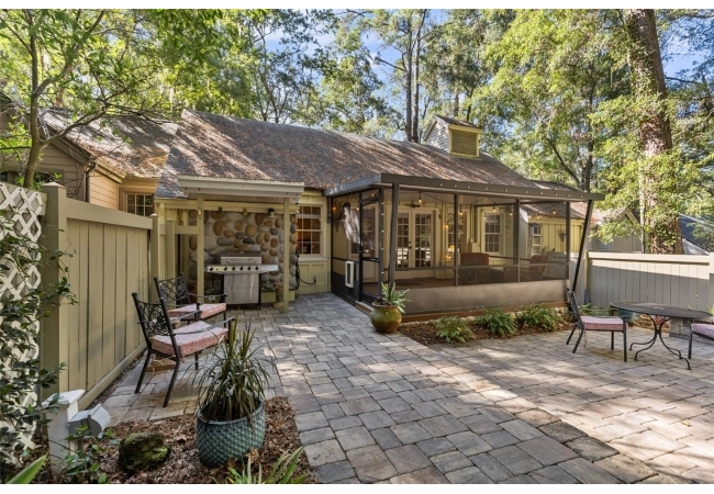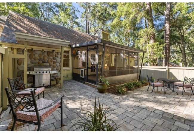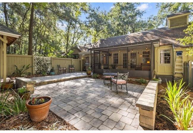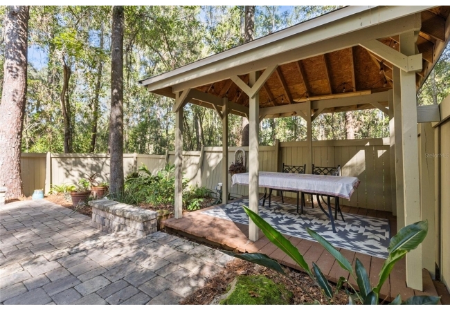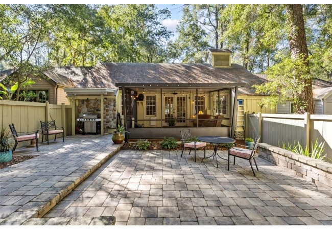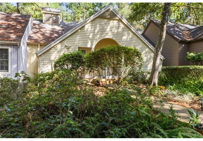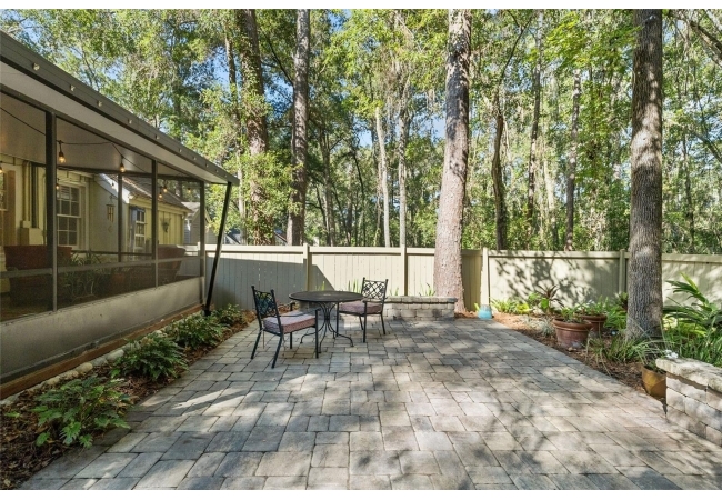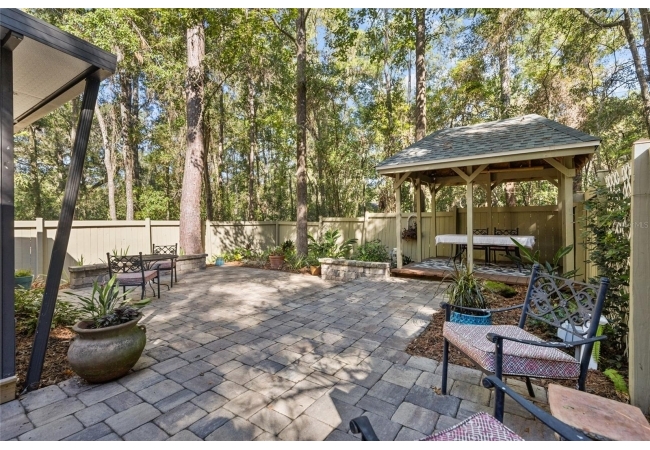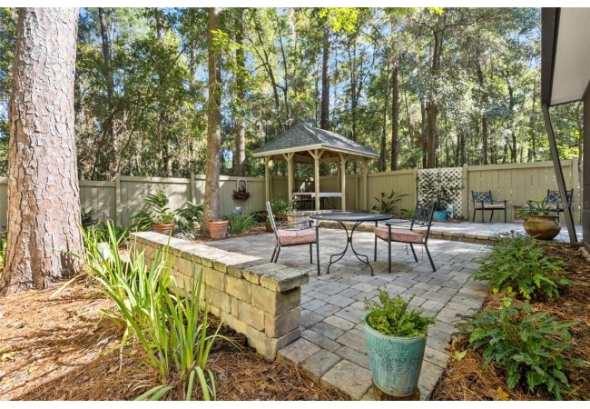 Come fall in love with this charming 2 bed, 2 bathroom split floor plan home located in Quail Court just minutes from Haile Village Center. Quail Court is an adorable cottage style subdivision of single family homes with beautiful mature landscaping, oak trees, and the quintessential comfort of Haile Plantation living. When you arrive you will love the adorable shaker shingle exterior, archway entry with a welcoming front patio, and low maintenance landscaping. Step inside to appreciate a spacious open concept living area with an abundance of natural light streaming through windows both on the front of the home and the back. The kitchen has been updated with modern amenities and offers a cozy dining space that overlooks the front patio with 3 large windows. Just off the kitchen, you'll appreciate a dual pantry and interior laundry room with a newer washer and dryer. The kitchen and dining area open to a warm and inviting living room with cathedral ceiling and French doors leading to the outdoor patios. The split bedroom plan offers privacy for everyone with a well appointed primary suite and a secondary guest bedroom and full guest bath. One of the seller's favorite features awaits you outside: a covered, screened patio and a beautiful paver patio with down lighting perfect for evening get togethers with friends. She also created a lovely garden that is low maintenance and easy to care for! Additional features include: backyard gazebo, outdoor grill, exterior storage closet (w/HVAC & water heater), conveniently located just steps from HOA amenities (must have additional membership to access), and so much more. Call listing agent today for more information!