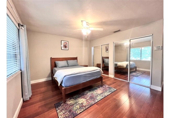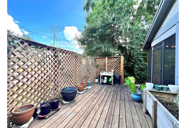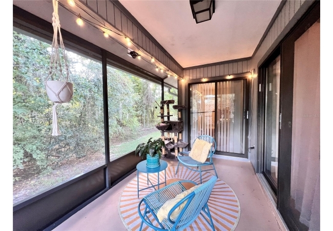 Location, Location, Location! This well-maintained 2-bedroom, 2-bathroom townhome with a one-car garage is tucked away in a quiet neighborhood off NW Newberry Road. where it offers a rare combination of privacy and convenience. Recent upgrades include a new roof with seamless gutters, fresh exterior paint, a 2025 water heater, and recently updated kitchen appliances. The open-concept living space features wood laminate flooring throughout. A sliding glass door leads to a cozy screened porch, which opens to a spacious wooden deck, ideal for relaxing or enjoying the natural, wooded surroundings. The primary bedroom also offers direct access to the porch and overlooks the private backyard—perfect for enjoying morning coffee or quiet reading. Enjoy the monthly Low HOA fee, conveniently located just minutes from major shopping, dining, fitness center, and entertainment. A nearby bus stop provides easy access to the University of Florida, and I-75 is just a short drive away. This hidden oasis combines comfort, updates, and location—schedule your showing today!