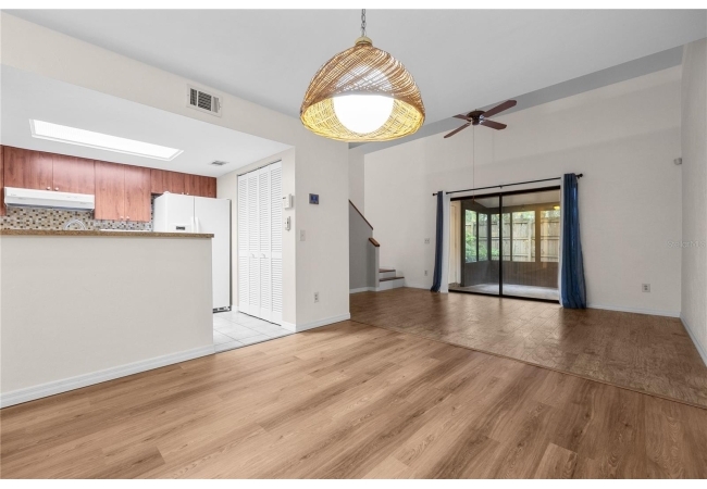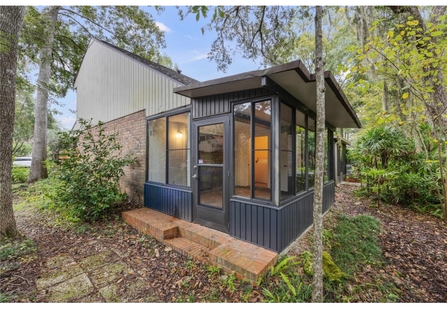 Looking for an end unit townhome in a great location in Gainesville?  This 2-bedroom and 2-bathroom end unit townhome in Timberway is move-in ready and waiting for you!  This home features 1,225 square feet with the primary suite upstairs and a sunporch downstairs overlooking landscaping, trees and privacy.  Downstairs hosts the second bedroom, the kitchen, dining room, living room, and the sunporch.  Upstairs hosts the primary suite with double closets and a newer upgraded full bathroom.  The primary suite also features an additional sitting area or extra space to use for a big closet, plus access to the attic for additional storage place.  This home has no carpet, fresh paint throughout, and newer vinyl flooring in most areas.  The sunporch is a great addition to this home and offers beautiful living space while welcoming the outside.  You can enjoy nature watching, your morning and evening beverages, and relaxing on this sunporch.  The laundry room is also accessed through the sunporch.  This home has 2 designated parking spaced located directly in front of the home for easy access.  The low monthly HOA covers the roof, pest control and grounds maintenance.  Timberway is a peaceful and well-maintained community featuring nature, trees and green spaces, a dog walking area, a swing set and outdoor pavilion for its residents and guests to enjoy and relax while overlooking a grassy area for additional outdoor activity space.  The location of this home in Timberway is perfect and secluded with being an end unit townhome while also being in the back of the community and it backing up to nature and a wooded buffer.  The location of this community in NW Gainesville is ideal as it is just minutes away from some of Gainesville's most loved restaurants, coffee, groceries and shopping, Buchholz High School, and Santa Fe College.  Plus, an easy commute to local hospitals and the University of Florida.  Do not miss this awesome opportunity to own your own home in this great NW community!