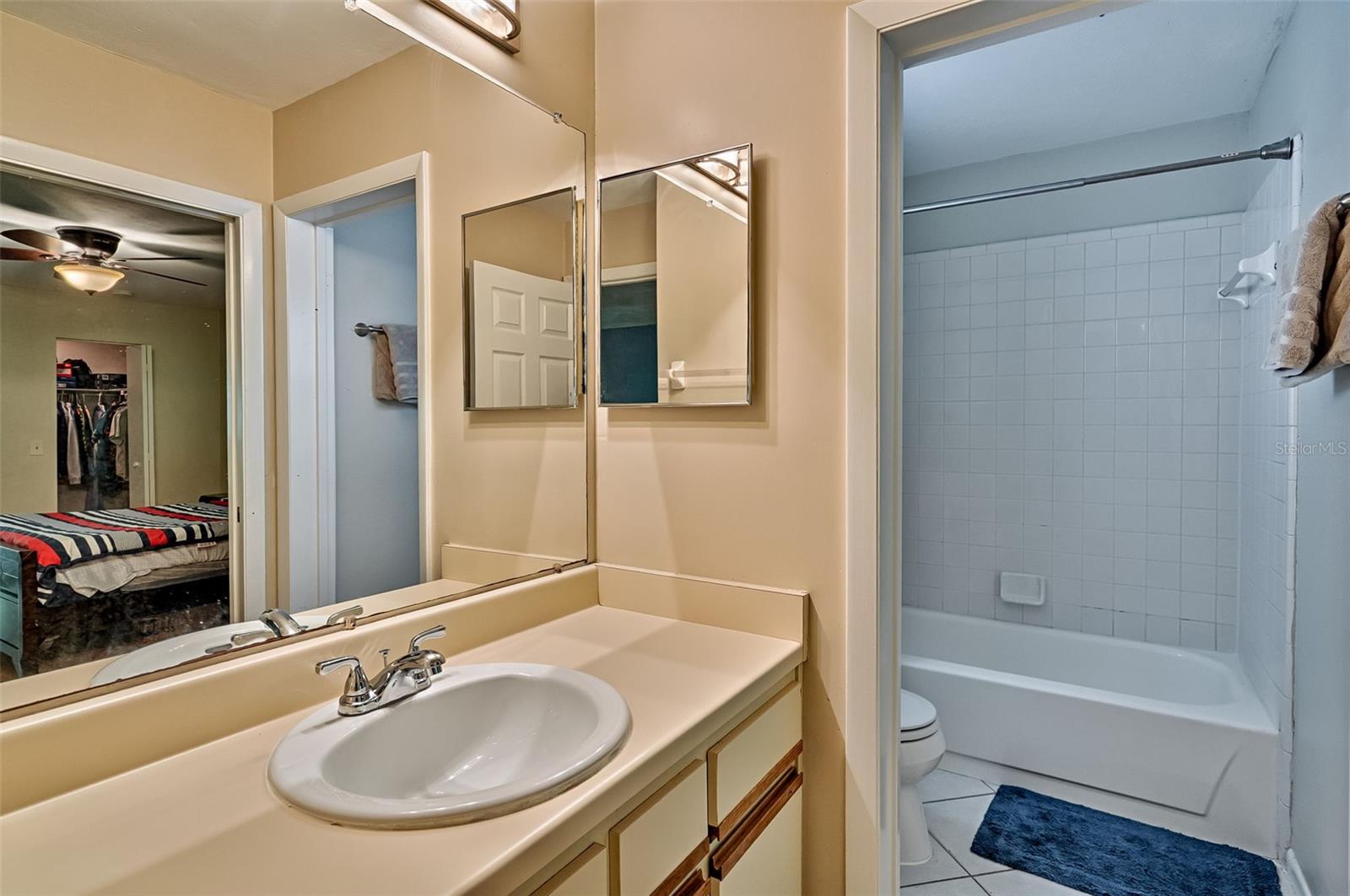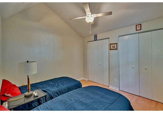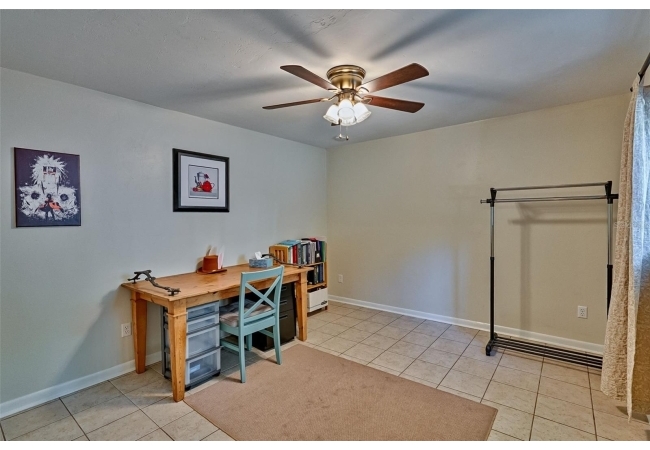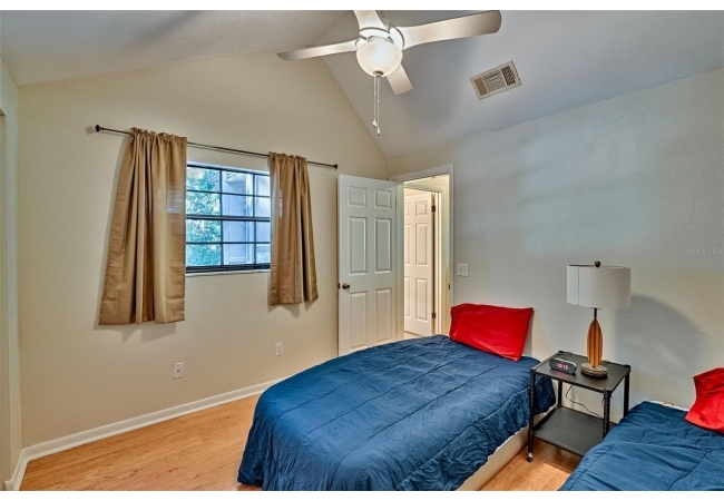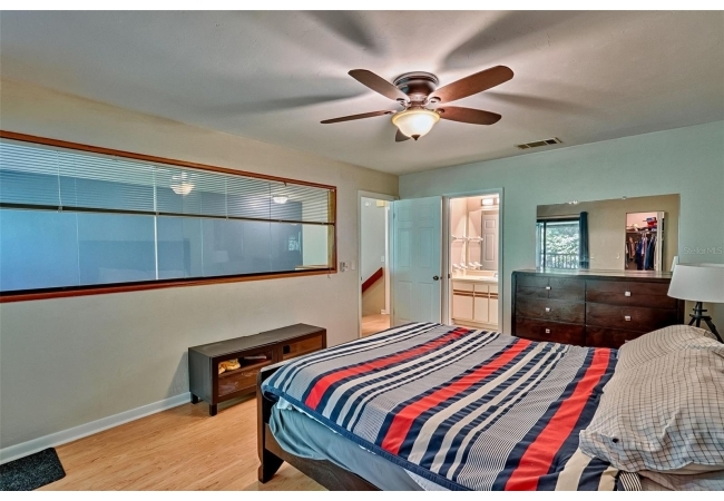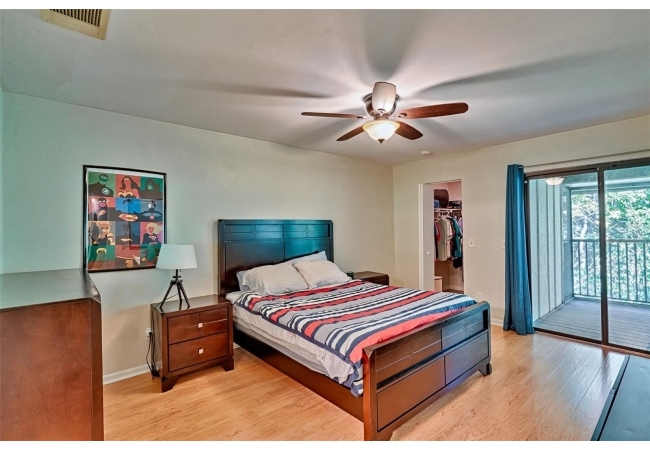 On the first floor you’ll find a guest bedroom and full bath—perfect for visitors or for use as a home office. Upstairs are two additional bedrooms, including the primary suite, which was originally a loft and has since been enclosed to offer privacy while still bathing in natural light via interior windows. The primary suite includes a private balcony—your ideal spot for morning coffee—and a large walk-in closet with a clever laundry chute that leads directly to the laundry room below.