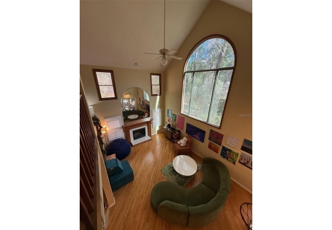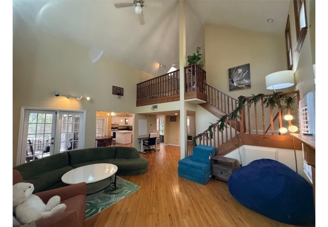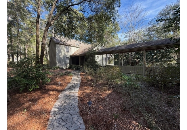 Welcome home to this light-filled Haile residence featuring soaring ceilings and a desirable split floor plan. This charming 2-bedroom, 2-bath home also offers a versatile office or nursery, perfect for working from home or growing needs. Enjoy seamless indoor-outdoor living with a screened porch overlooking a large, private lot, ideal for relaxing or entertaining.