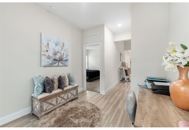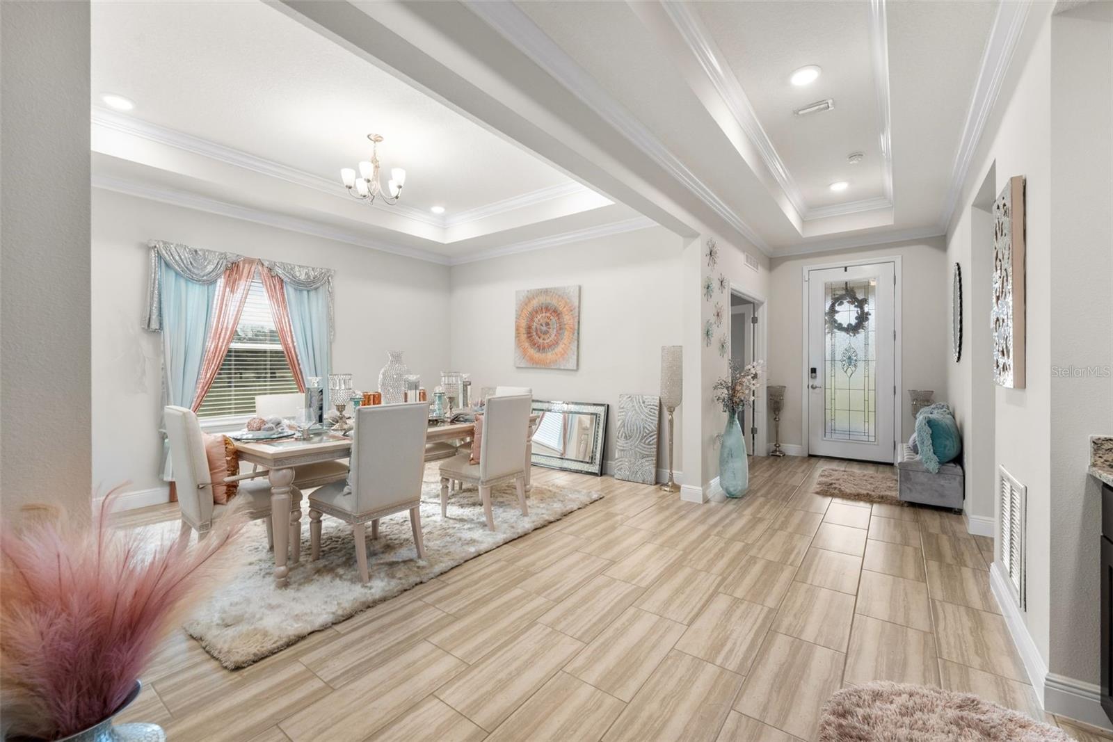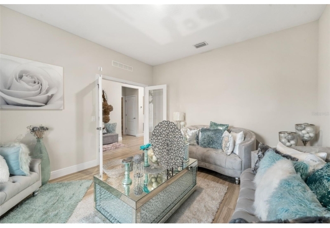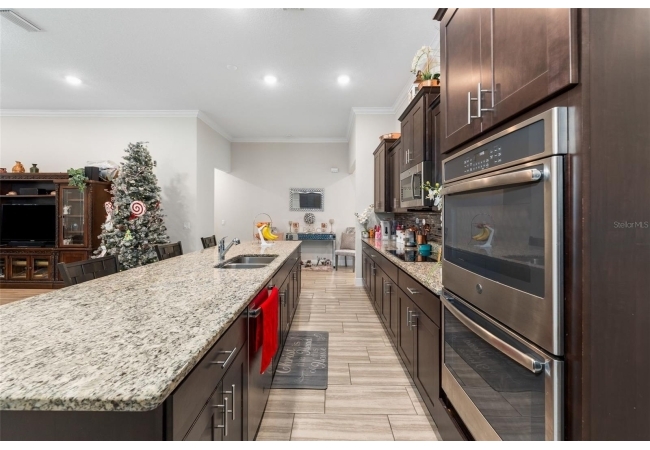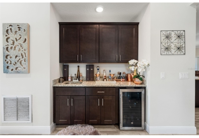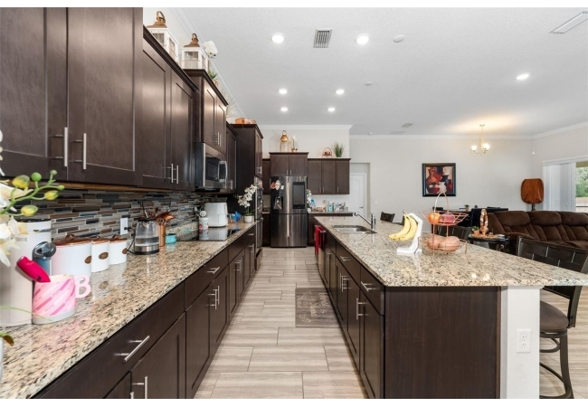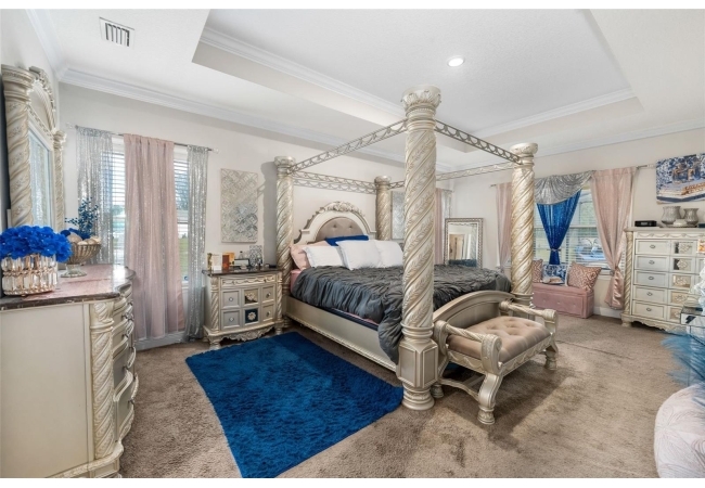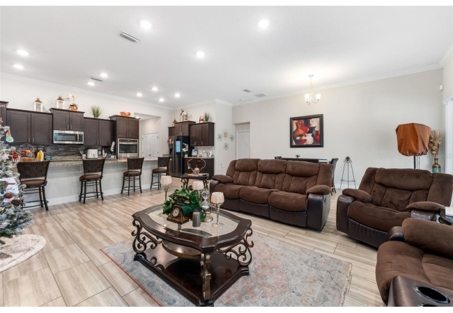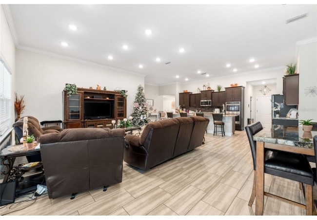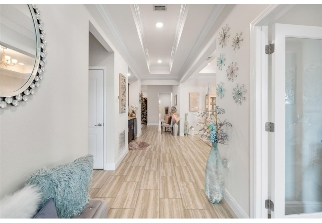 Experience luxury and privacy in this meticulously maintained estate perfectly situated on a sprawling 2.93-acre lot between Archer and Newberry. Upon passing through the covered entry, you are welcomed by a grand foyer featuring elegant tray ceilings and moldings that carry throughout the entire home. The heart of the residence is an expansive open kitchen boasting a massive island, double ovens, and a breakfast nook that overlooks a spacious great room, making it perfect for entertaining. For more formal needs, the home includes a dedicated flex or office space behind classic French doors, along with a thoughtfully designed built-in bar complete with a sink and wine fridge. The retreat-like primary suite offers a sanctuary of comfort with enough space for a private sitting area, two large walk-in closets, and a deluxe bathroom featuring dual sinks and an oversized shower with a bench and multiple shower-heads, including a rain head. Three additional bedrooms provide large footprints for a growing family, each equipped with its own walk-in closet. The functional layout is completed by a large laundry room packed with storage cabinets and a utility sink. Outside, the property is a true oasis, featuring a newer fully screened-in pool and spa with premium pavers, a three-car garage, and a stucco exterior accented by beautiful stonework. With nearly 3 acres of land, a storage shed, and zoning for schools with highly regarded magnet programs, this home offers the perfect balance of elegance and country living.