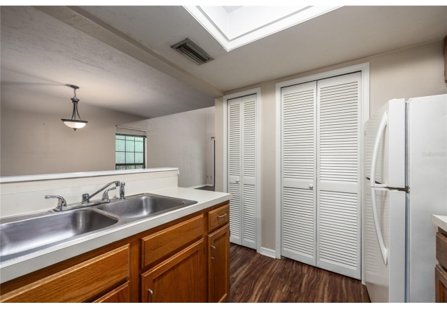 Welcome to this bright and well-maintained 2-bedroom, 2-bath end-unit townhome in the highly sought-after Rockwood Villas community. This split-floor plan offers maximum flexibility with one bedroom and a full bath on the main level, perfect for guests or roommates, and a spacious upstairs owner’s suite featuring dual closets, an en-suite bath, and a versatile bonus loft that can be used as a home office or reading nook. The kitchen has an open floorplan and spacious pantry and ample cabinet space. The open living and dining area flows seamlessly to the screened-in back porch, private fenced in backyard area, ideal for enjoying your morning coffee or unwinding in the evening. Additional features include an laundry room and extra natural light and windows thanks to the end-unit location. Rockwood Villas offers low-maintenance living with fantastic amenities, including two community pools, tennis and volleyball courts, and plenty of green space. The HOA covers exterior maintenance, pest control, and trash. Conveniently located on a direct bus route to the University of Florida and Santa Fe College, and just minutes from I-75, Butler Plaza, Oaks Mall, and North Florida Regional Medical Center, this townhome is a great fit for students, professionals, or investors.