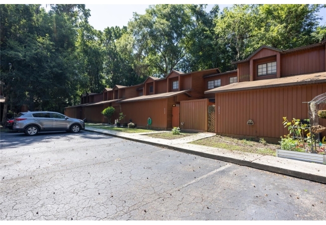 One or more photo(s) has been virtually staged. Welcome to this bright and well-maintained 2-bedroom, 2-bath end-unit townhome in the highly sought-after Rockwood Villas community. This split-floor plan offers maximum flexibility with one bedroom and a full bath on the main level, perfect for guests or roommates, and a spacious upstairs owner’s suite featuring dual closets, an en-suite bath, and a versatile bonus loft that can be used as a home office or reading nook. The kitchen has an open floorplan and spacious pantry and ample cabinet space. The open living and dining area flows seamlessly to the screened-in back porch, private fenced in backyard area, ideal for enjoying your morning coffee or unwinding in the evening. Additional features include an laundry room and extra natural light and windows thanks to the end-unit location. Rockwood Villas offers low-maintenance living with fantastic amenities, including two community pools, tennis and volleyball courts, and plenty of green space. The HOA covers exterior maintenance, pest control, and trash. Conveniently located on a direct bus route to the University of Florida and Santa Fe College, and just minutes from I-75, Butler Plaza, Oaks Mall, and North Florida Regional Medical Center, this townhome is a great fit for students, professionals, or investors.