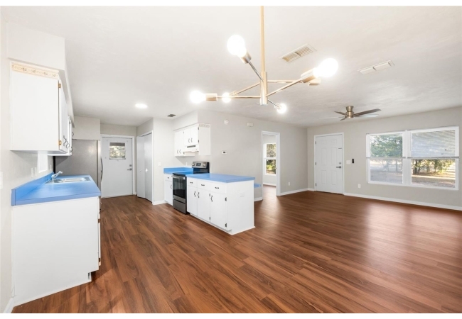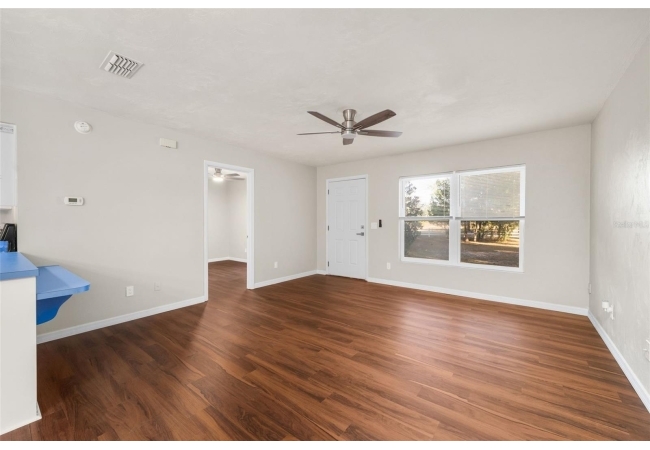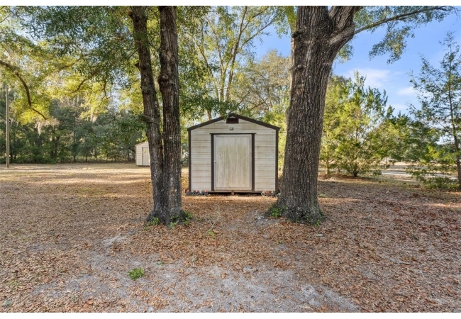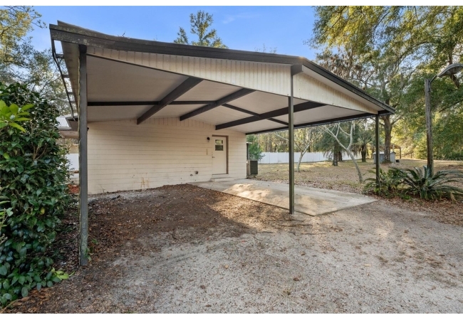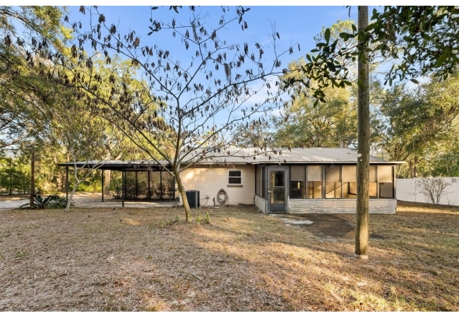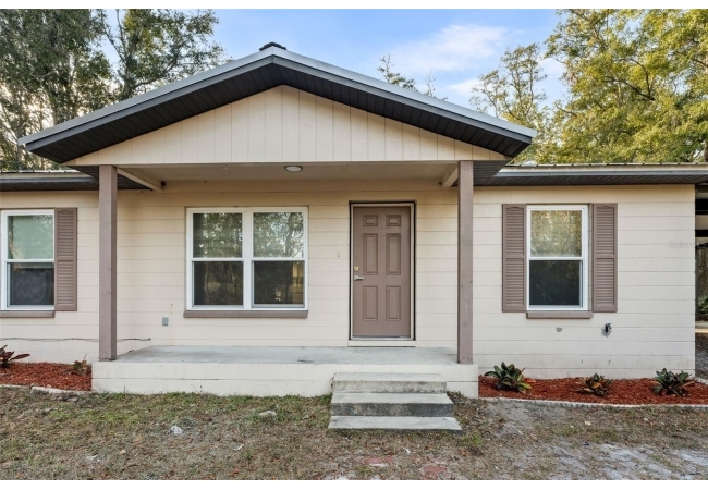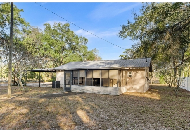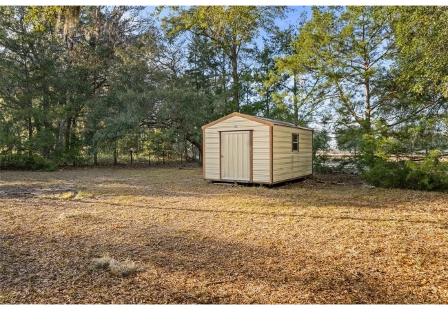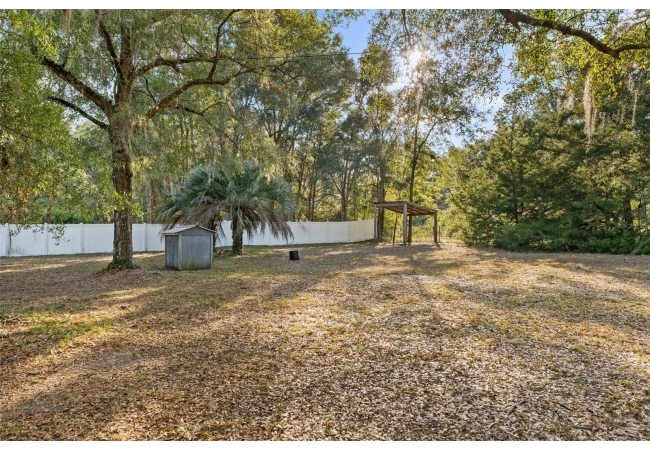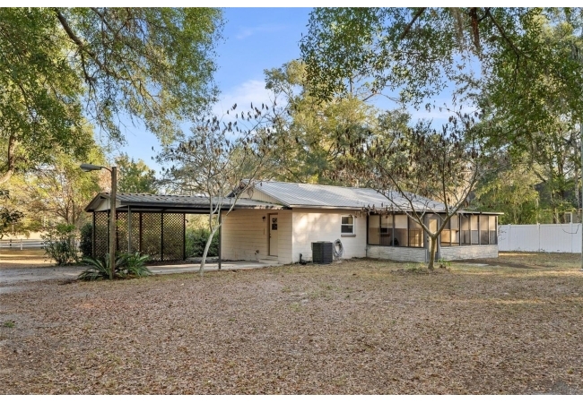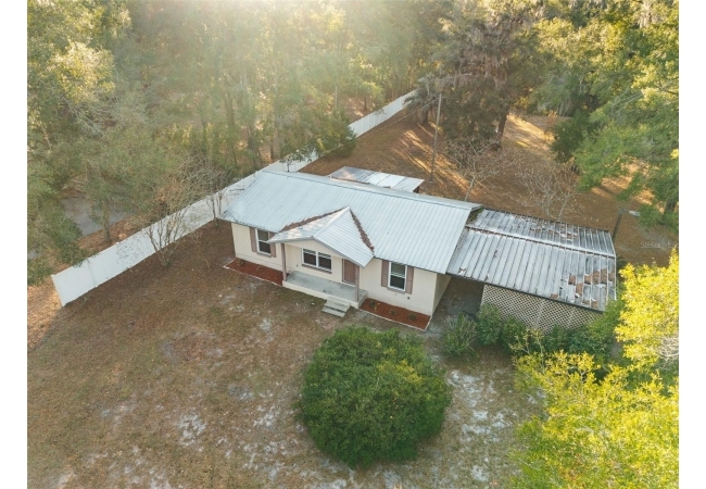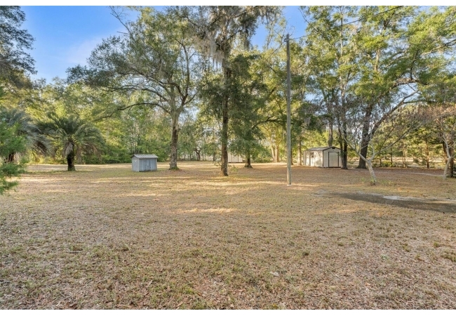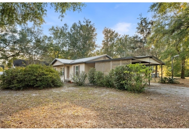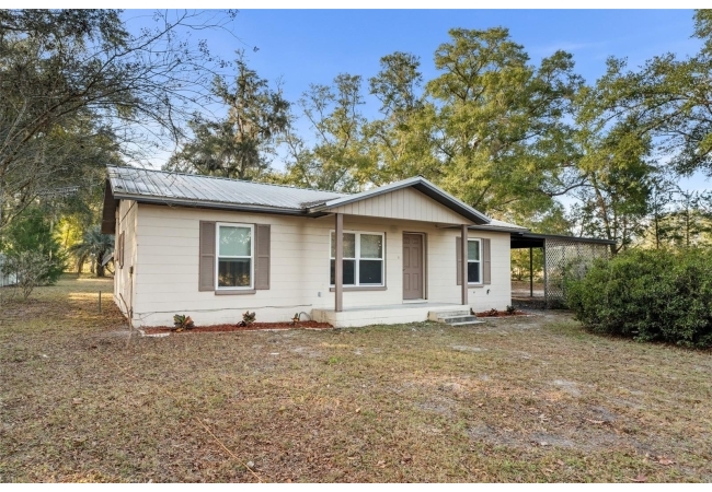 CHARMING HOME ON ACREAGE NEAR NATURAL SPRINGS! This little gem offers a perfect blend of convenience and affordability, nicely situated on over an acre of land. This delightful 2 Bedroom, 2 Bath concrete block home features a durable metal roof and a beautifully updated interior. The home is light and bright with new LVP flooring throughout, freshly painted walls, and new ceiling fans and recessed lighting in all rooms. The kitchen is appointed with crisp white cabinets, stainless steel appliances, and lots of cabinet and counter space. Once you step through the glass-paneled French doors, you will love the spacious all-weather lanai with sliding glass windows, providing fantastic additional living space overlooking the extra-large backyard. The home also includes an indoor laundry area, an attached carport, and two sheds for additional storage. Located just minutes from renowned natural springs such as Ginnie Springs, Gilchrist Blue Springs, and Poe Springs, you'll enjoy small-town charm and the convenience of nearby shopping, restaurants, and outdoor adventure. Let's schedule a showing for your private viewing!