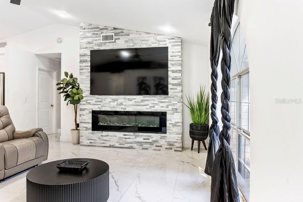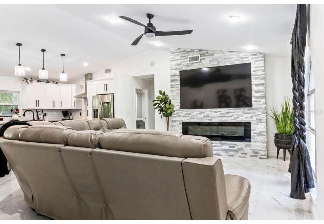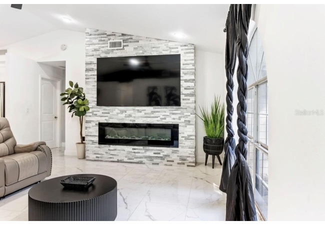 Step inside to discover an inviting living room with cathedral ceilings and a cozy electric fireplace, creating a warm and open atmosphere ideal for relaxing or entertaining. The thoughtfully designed floor plan offers spacious bedrooms, a functional kitchen, and plenty of natural light throughout.