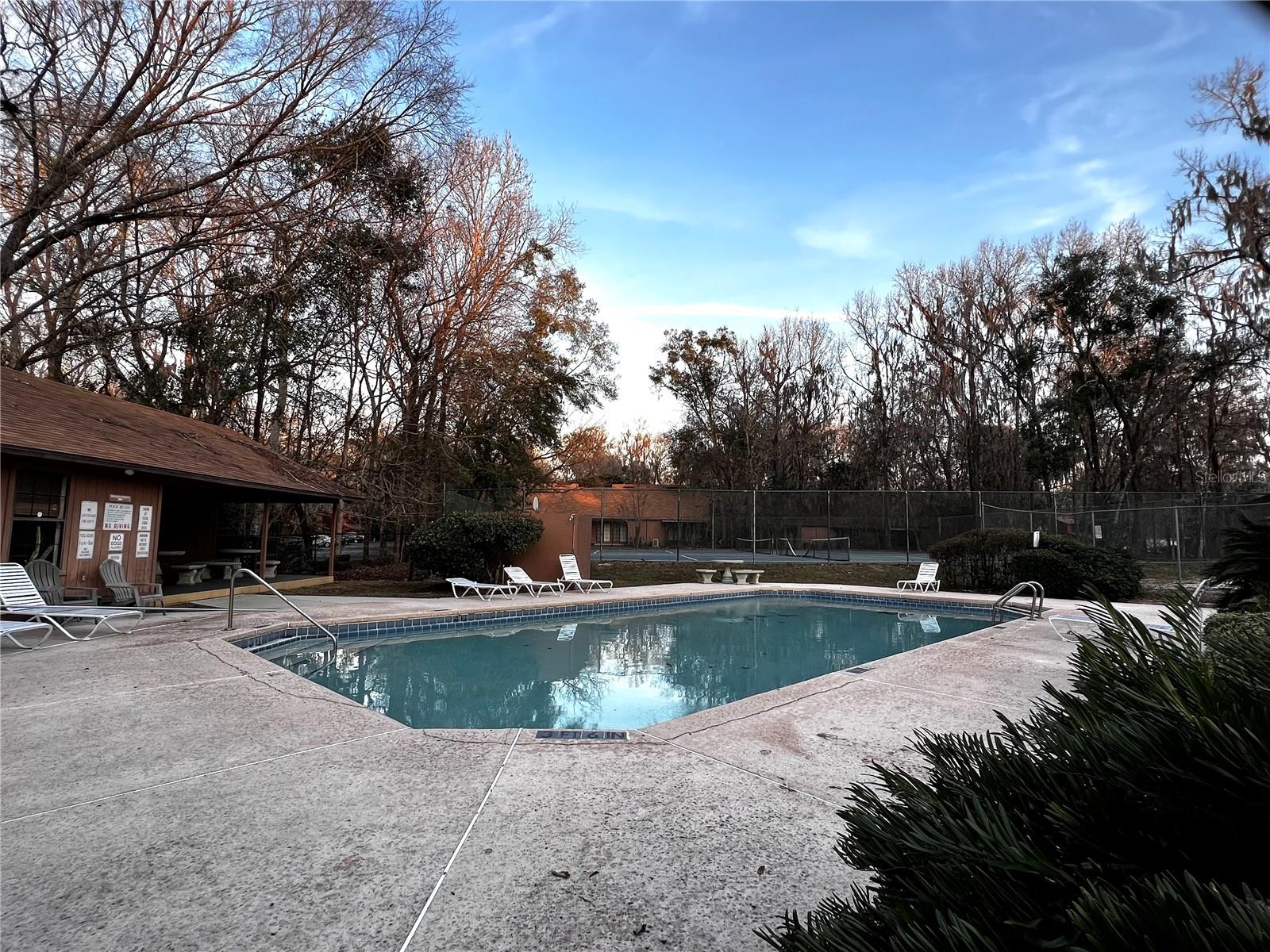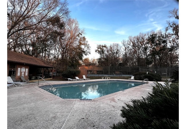 This clean, spacious, and move-in-ready townhome is ideally located on SW 62nd Blvd, offering both privacy and convenience with 3 bedrooms and 3 bathrooms. A welcoming courtyard that leads to a large living room with laminate flooring. The kitchen features newer, upgraded cabinets and a granite countertop. The home has carpeted bedrooms. One bedroom and its bathroom are located downstairs, and two additional bedrooms, each with its own bathroom upstairs. Large screened porch w/ washer and dryer in a convenient laundry/storage room on the back. The community offers great amenities, including a pool, sports courts, and easy access to bus routes right at the neighborhood entrance, making it convenient for commuting to UF, shopping, and dining options, as well as being close to I-75.