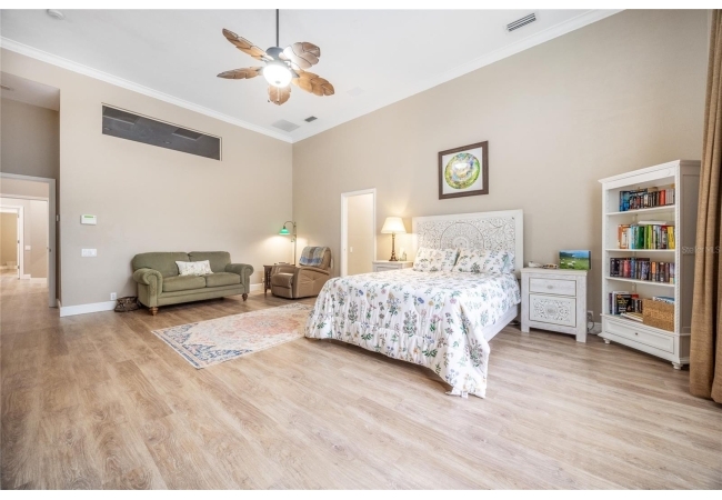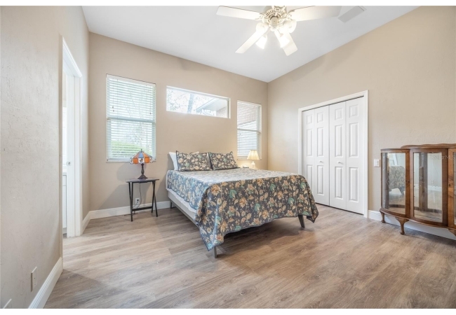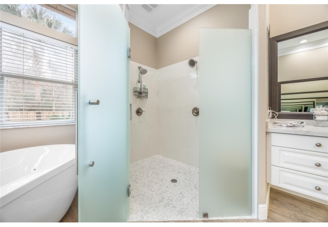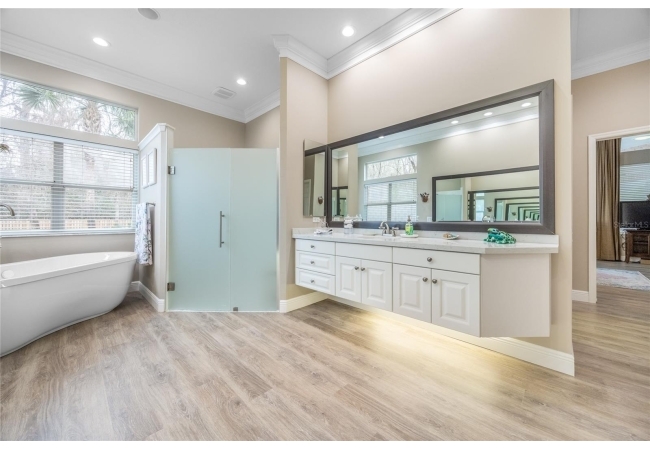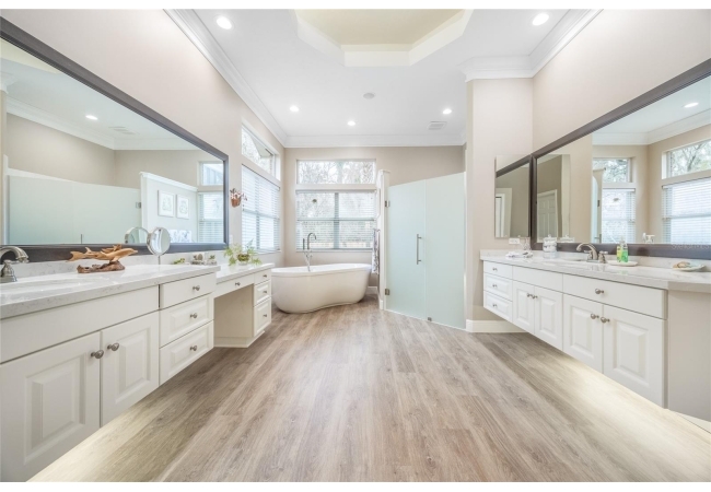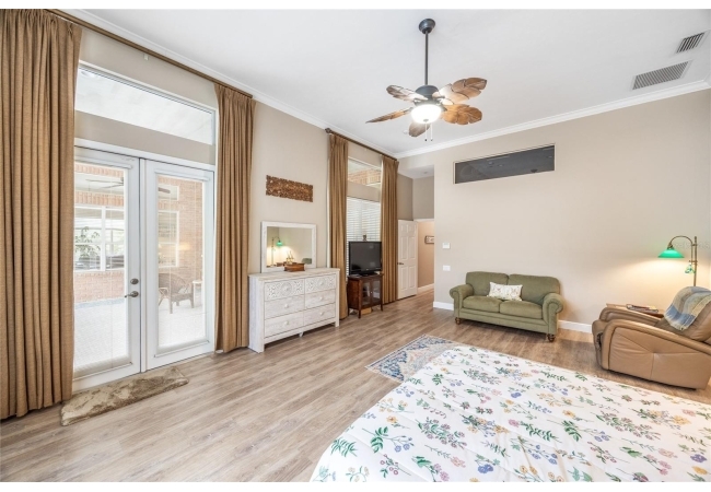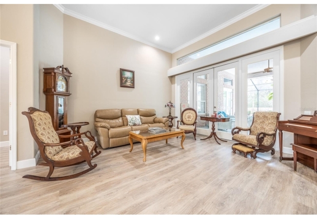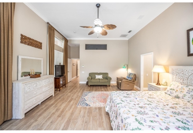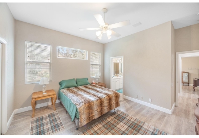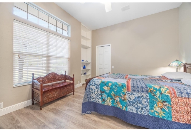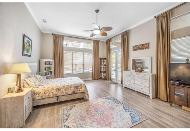 This home has been extensively updated, including all bathrooms, flooring, and the kitchen. The expansive primary suite features a spa-like en suite with French doors leading directly to the pool, a walk-in shower, and a freestanding soaking tub. Soaring 12-foot ceilings throughout enhance the open, airy feel. All appliances and window coverings are included. This pristine, special property is truly move-in ready.
