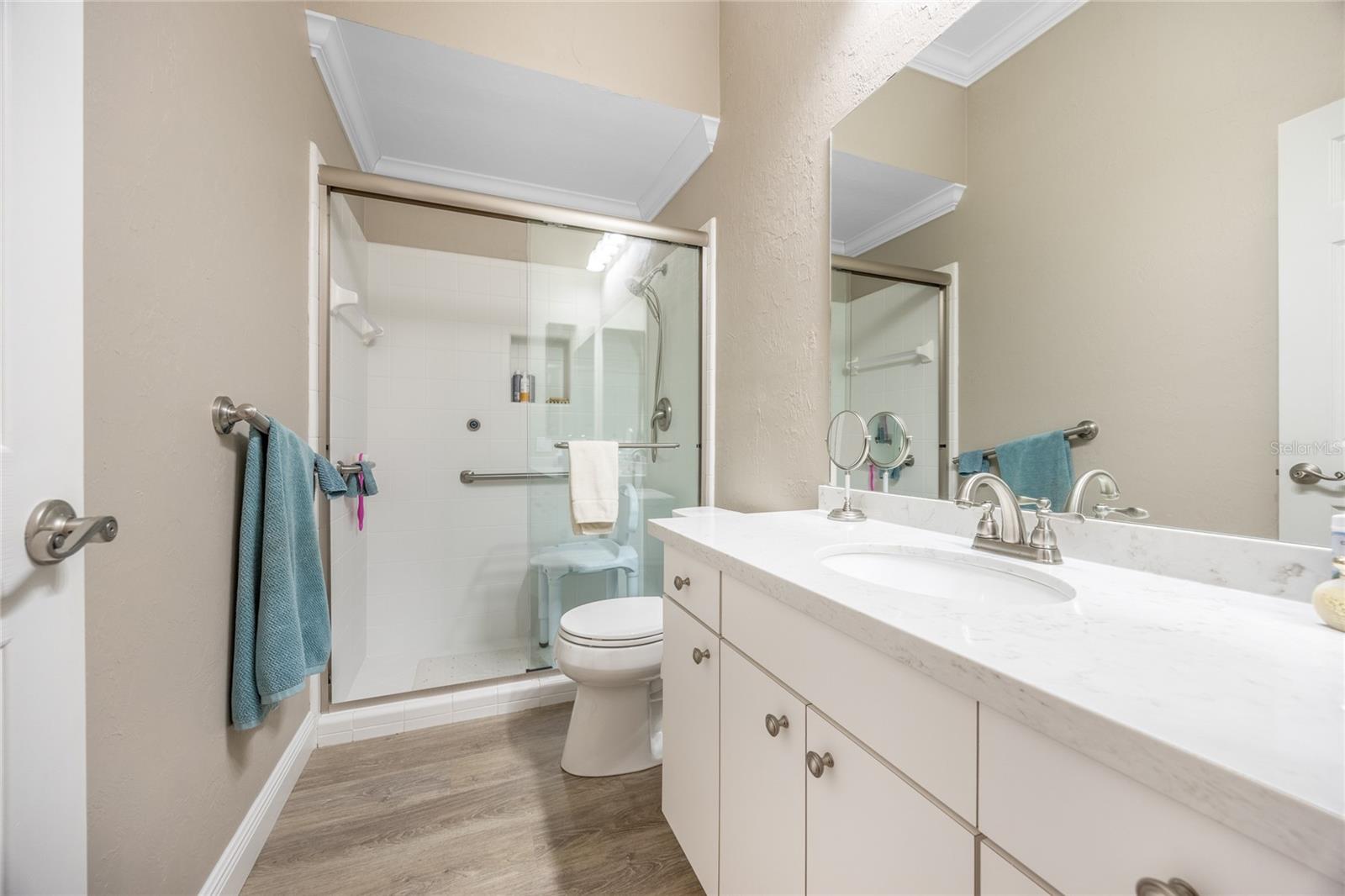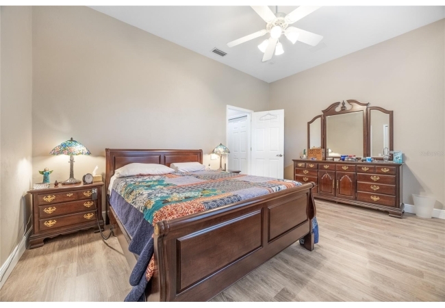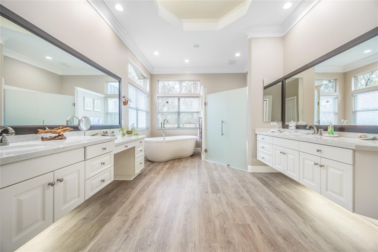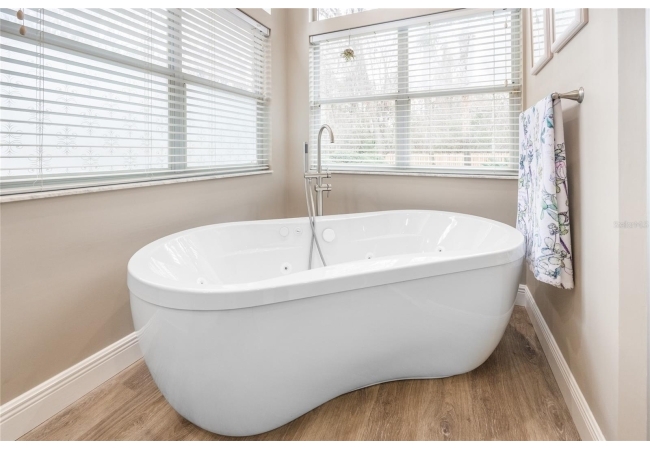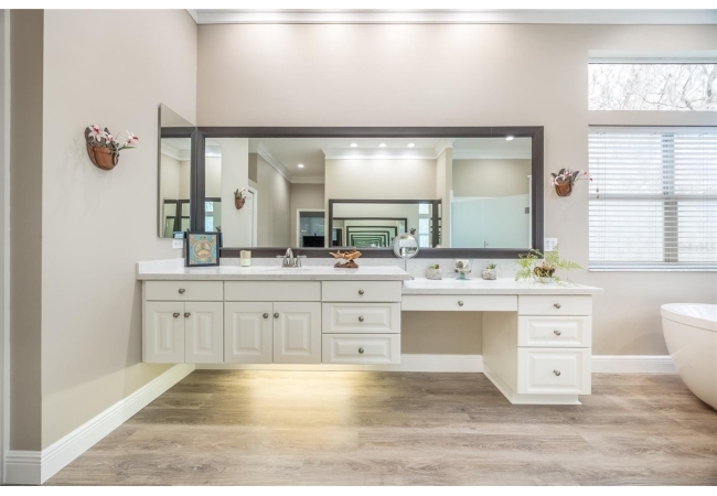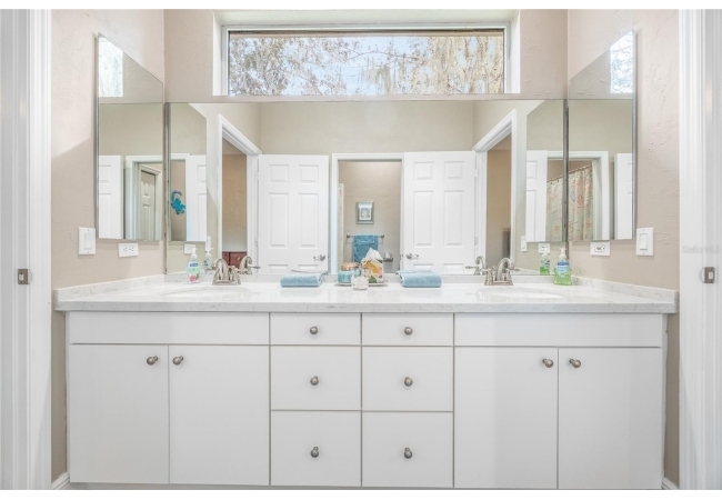This home has been extensively updated, including all bathrooms, flooring, and the kitchen. The expansive primary suite features a spa-like en suite with French doors leading directly to the pool, a walk-in shower, and a freestanding soaking tub. Soaring 12-foot ceilings throughout enhance the open, airy feel. All appliances and window coverings are included. This pristine, special property is truly move-in ready.