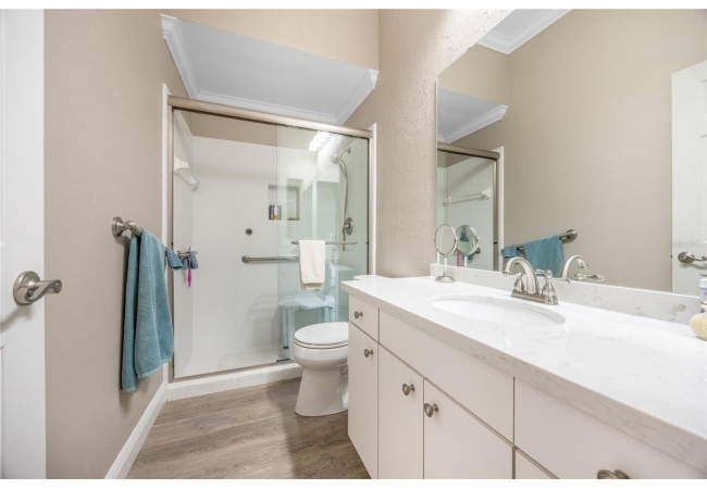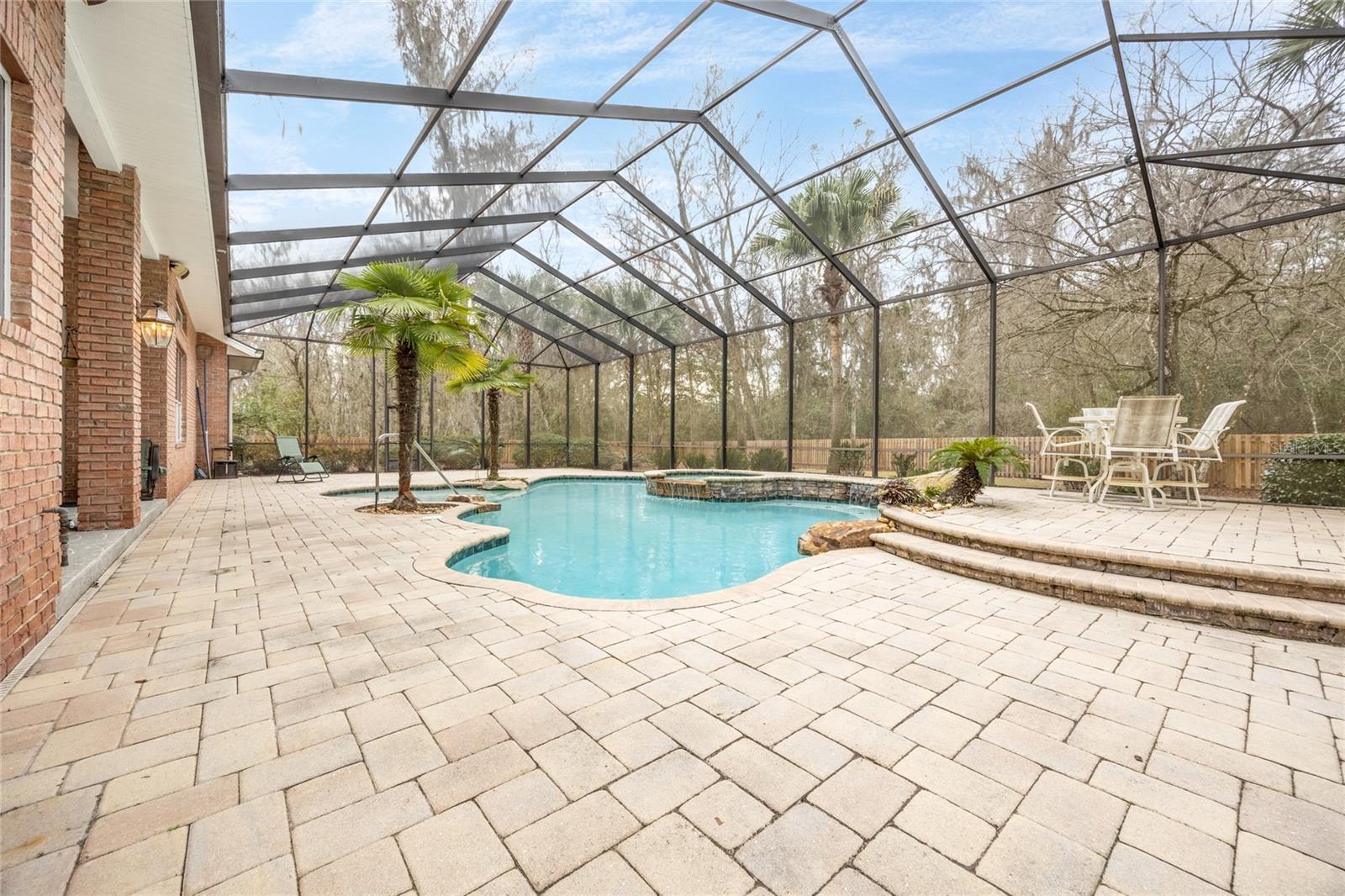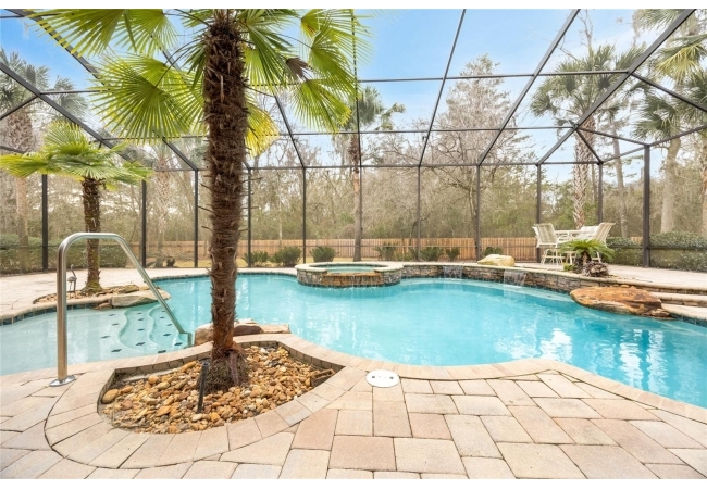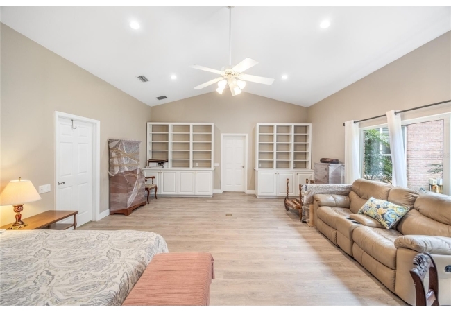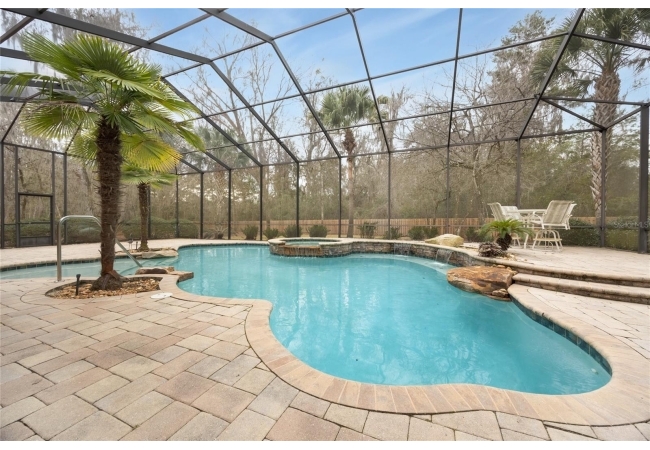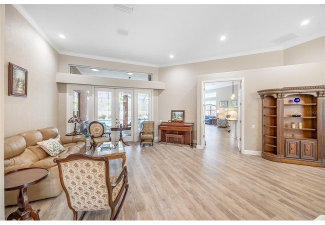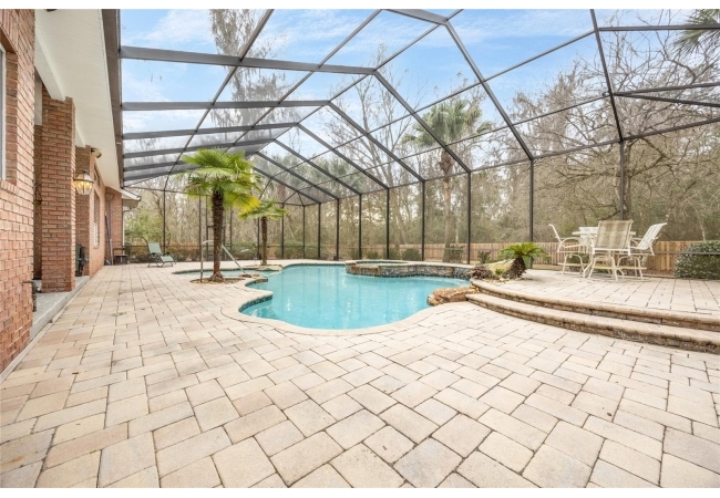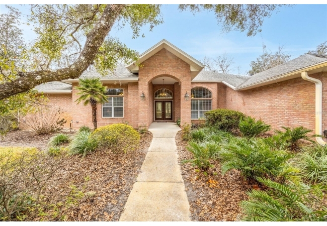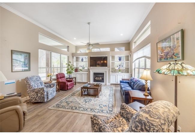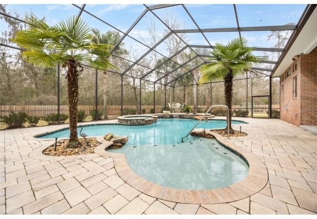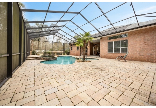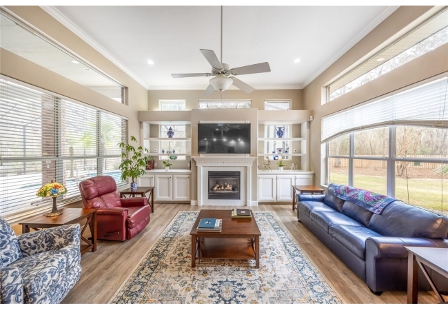 Enjoy effortless luxury in this one-story all-brick home featuring a spectacular pool, spa-like primary suite, and beautifully updated interiors in a sought-after gated community. Elegant one-story all-brick home in the gated community of Woodfield, nestled on a park-like 1.03-acre setting. The private, fenced backyard offers an ideal outdoor retreat. This spacious home features 4 bedrooms, 4 bathrooms, and a large flex space off the expansive family room, complete with a gas fireplace and custom built-in shelving.
